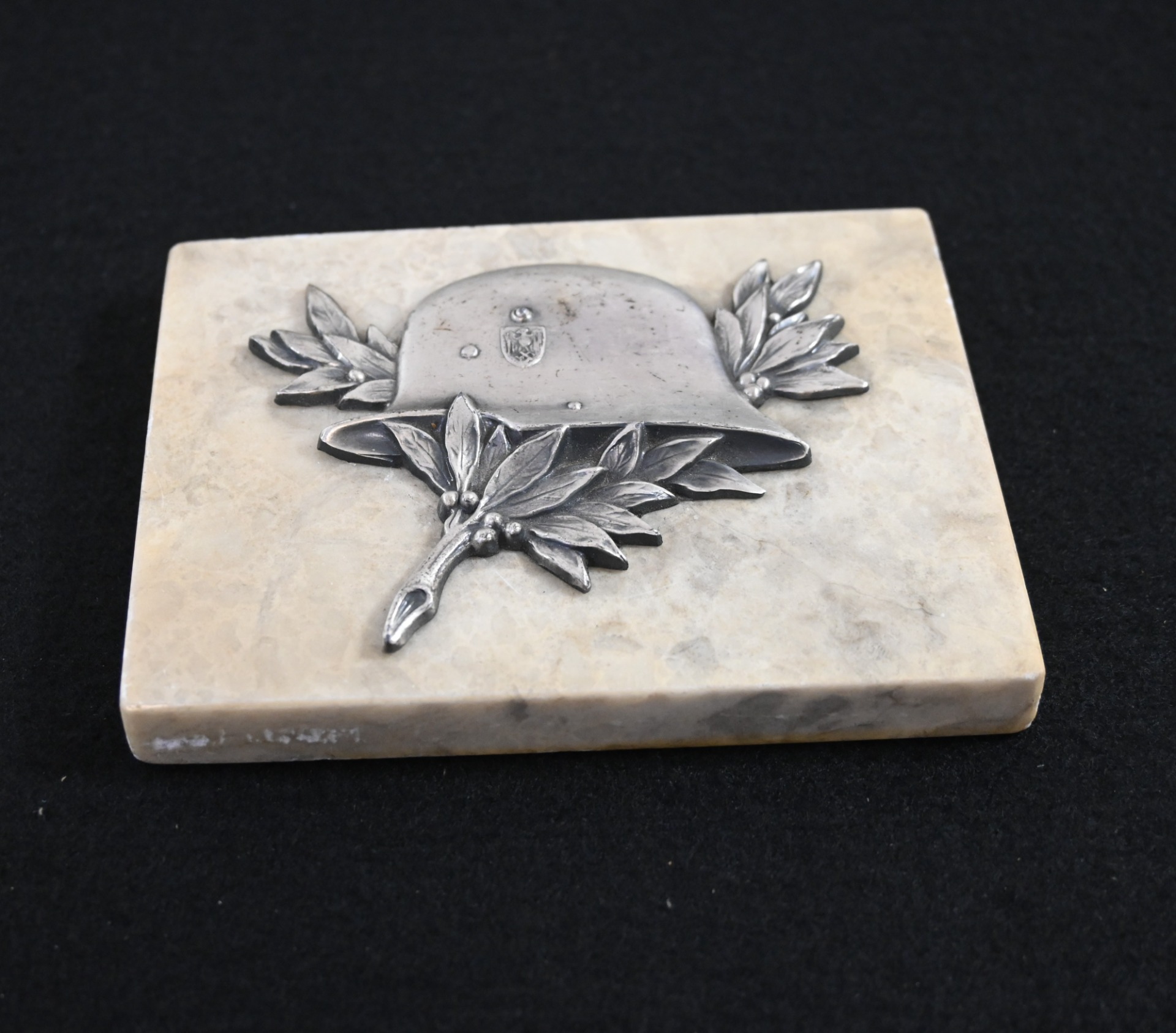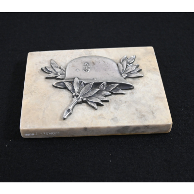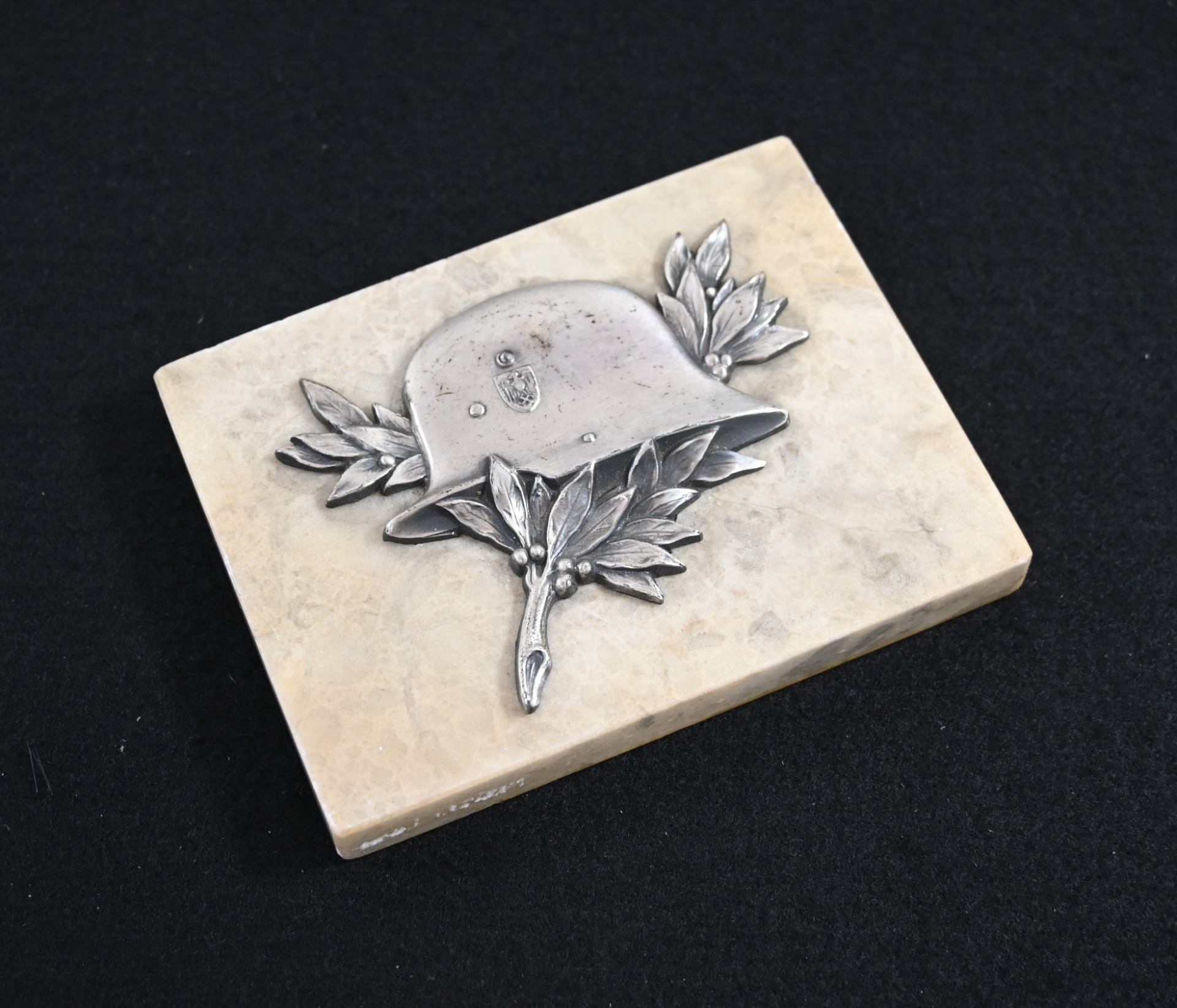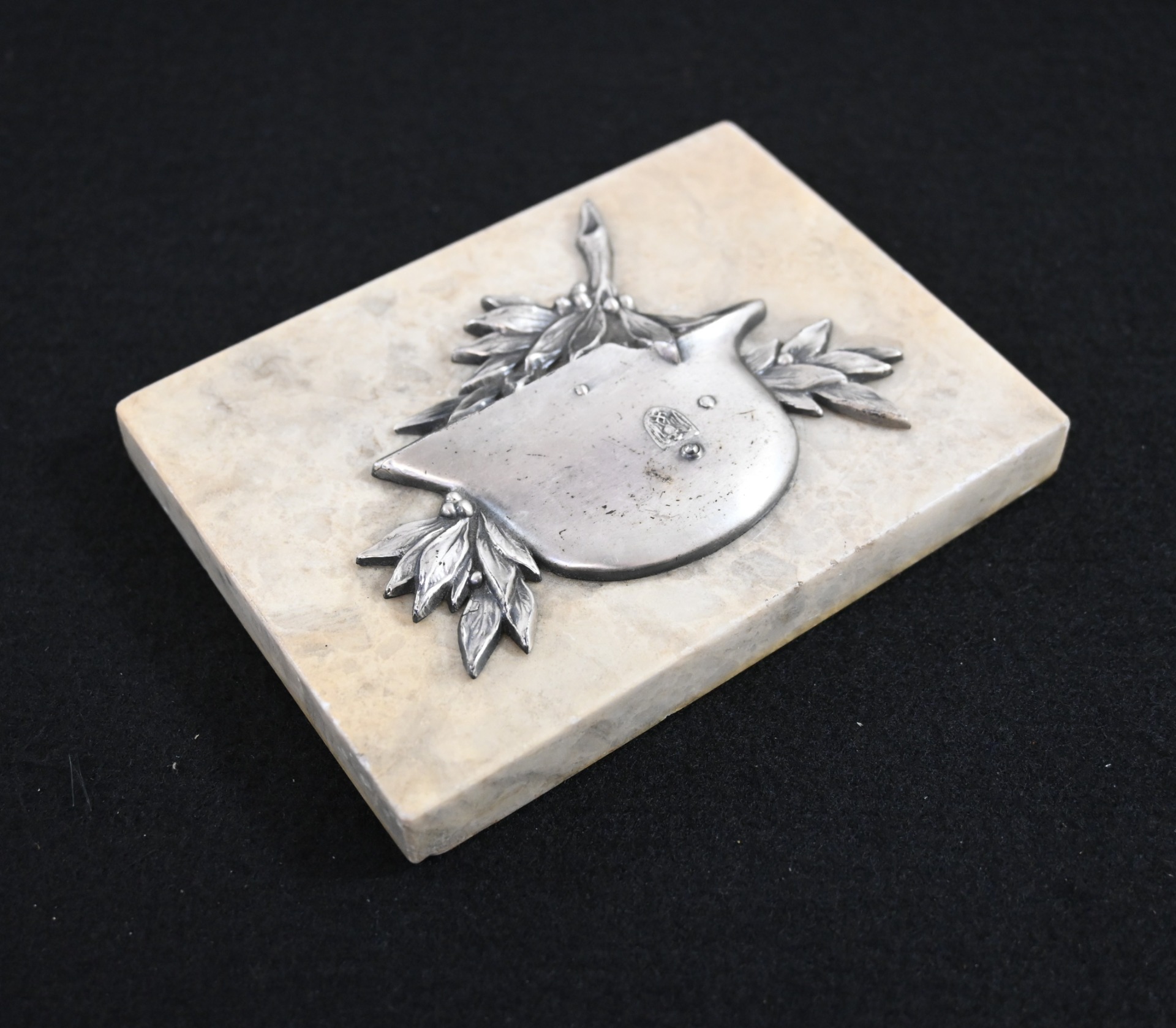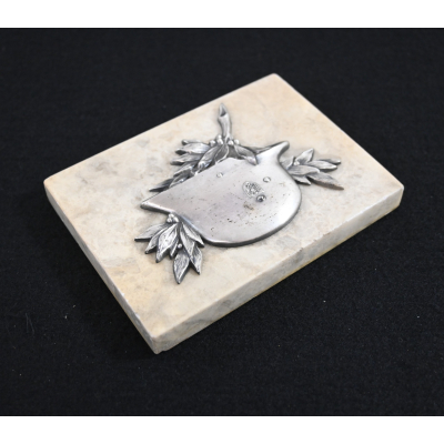 It shows overall normal signs of wear. It's mounted on a piece of marble which measures 13cms*9,5cms.