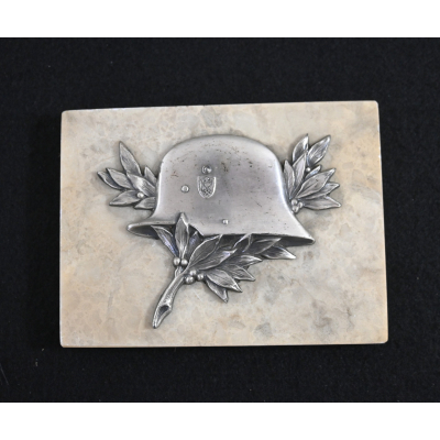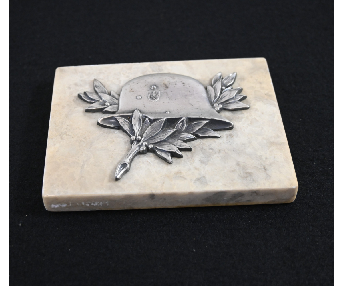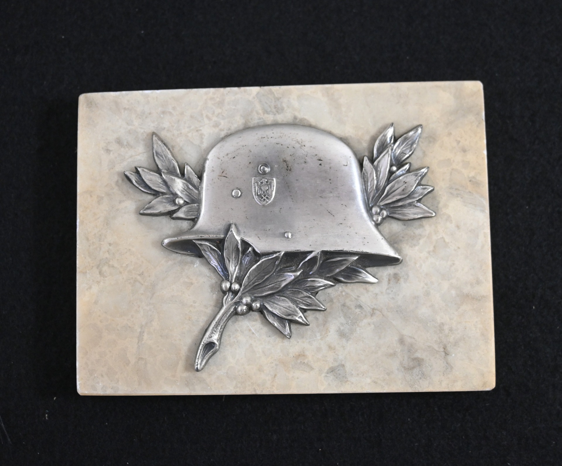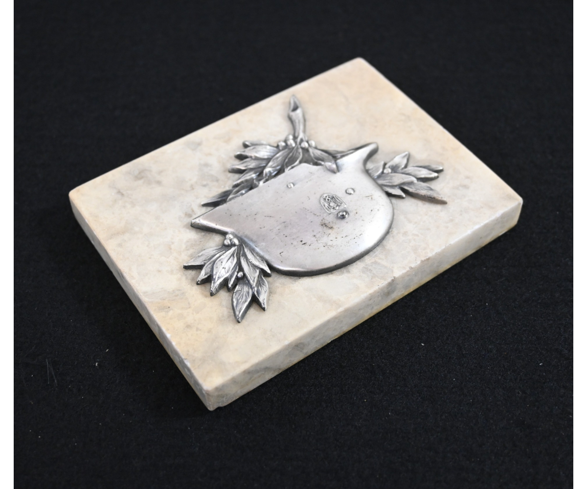 It shows overall normal signs of wear. It's mounted on a piece of marble which measures 13cms*9,5cms.