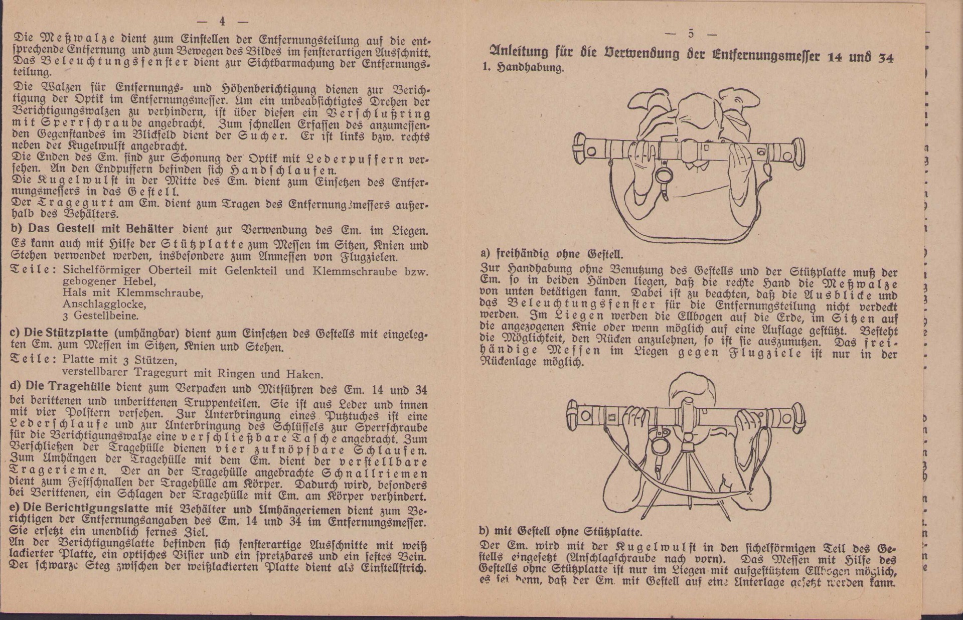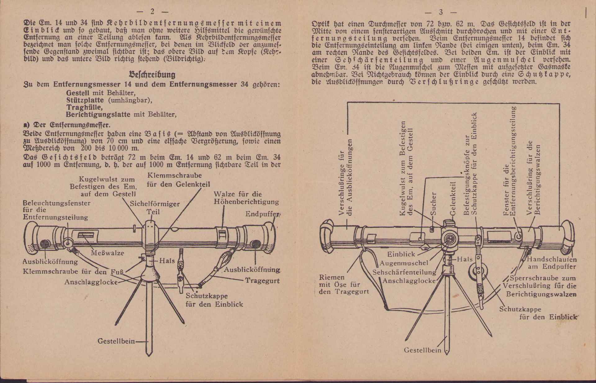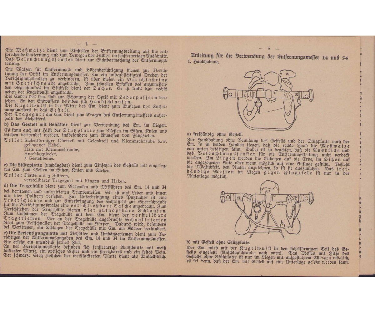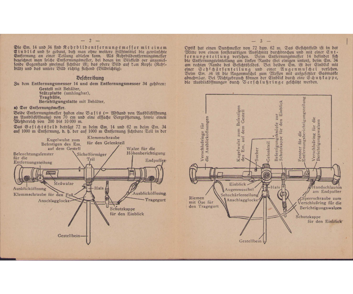 Very nice Entfernungsmesser instruction flyer or 'Waffentafeln' in excellent condition.