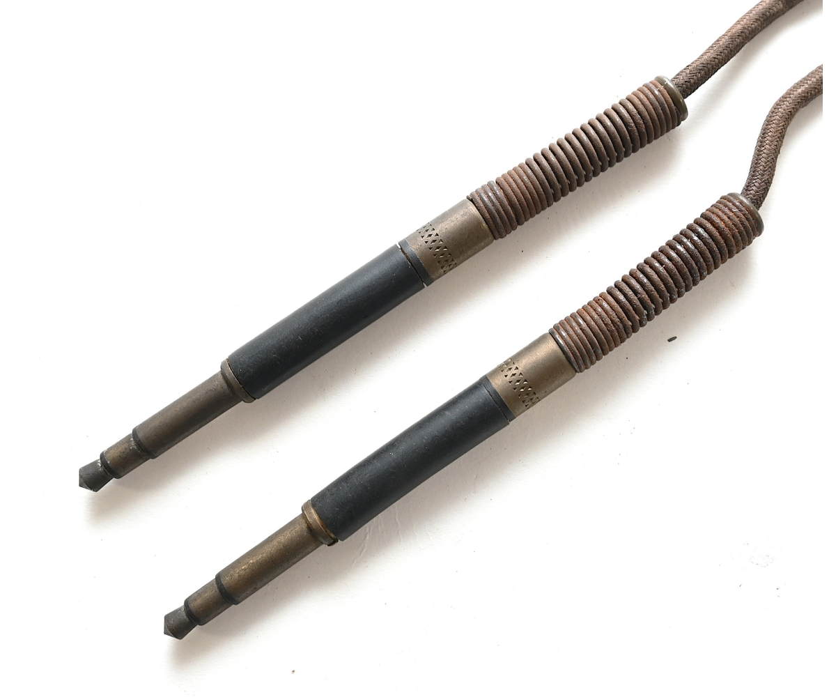 The piece shows overall normal signs of wear. Complete with both plugs. The wire is solid and supple.