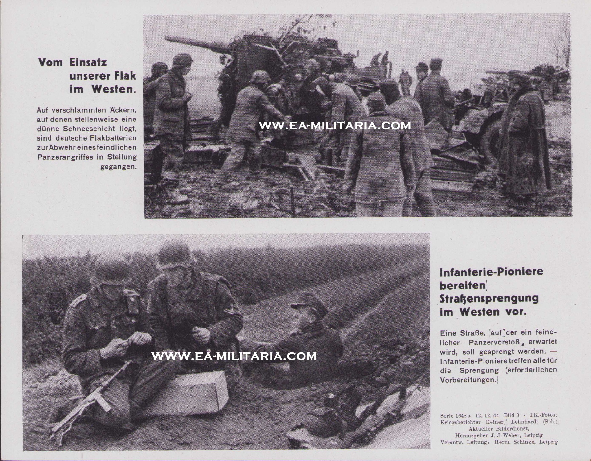 The photo shows overall normal signs of storage wear. Photo is probably taken during fighting in the battle of Hürtgen Forest. It shows a Luftwaffe Feld-Division 8,8cm Flak crew operating their canon and the lower photo shows Wehrmacht pioniere laying mines?