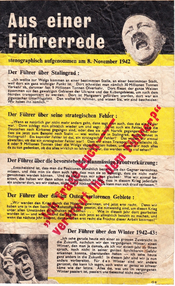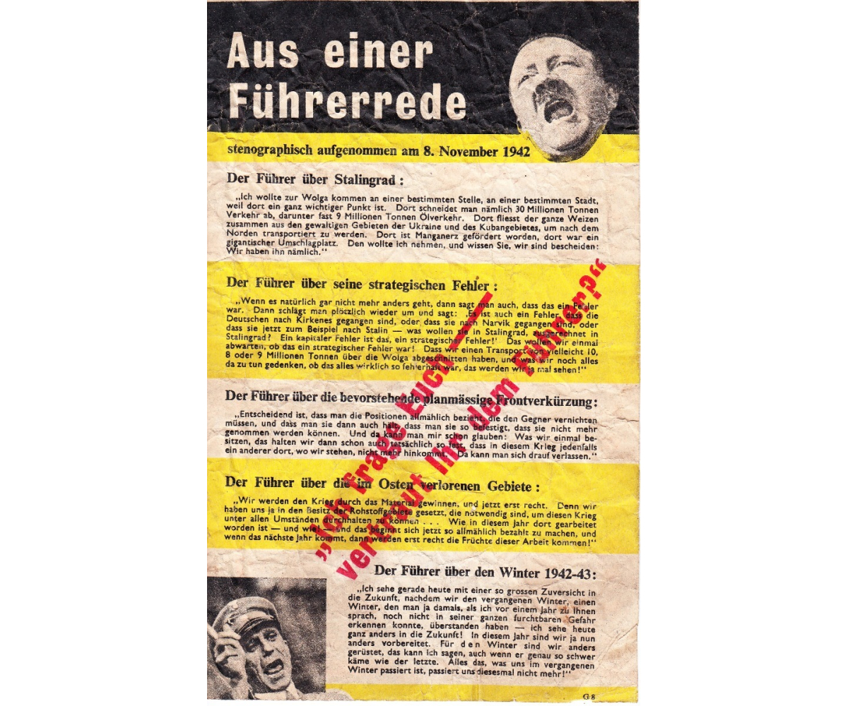 Very nice propaganda flyer or 'Flugblätter' in German language printed by the Allies.