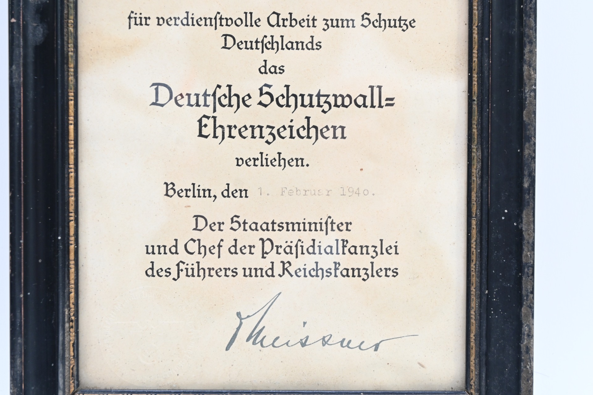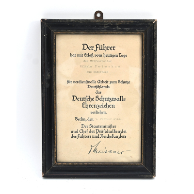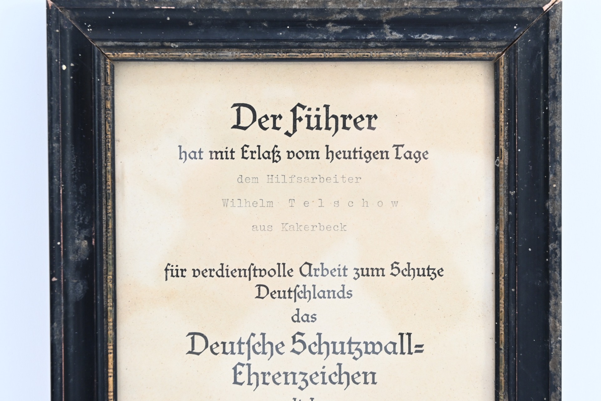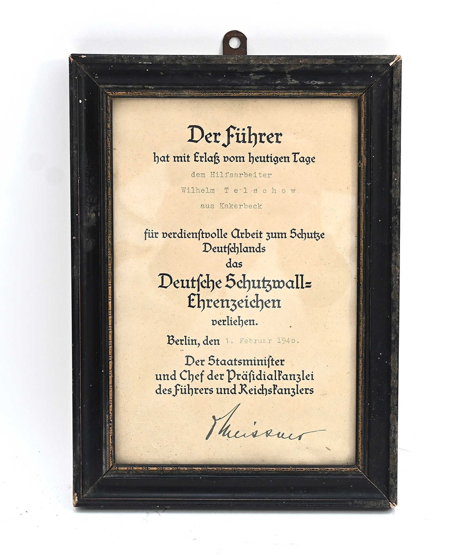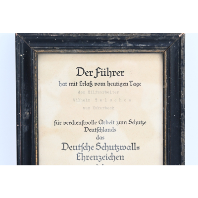 The piece shows overall normal signs of storage wear. The document was issued to the Hilfsarbeiter Wilhelm Telschow from Kakerbeck on the 1st of February 1940. It's still sealed on the back.