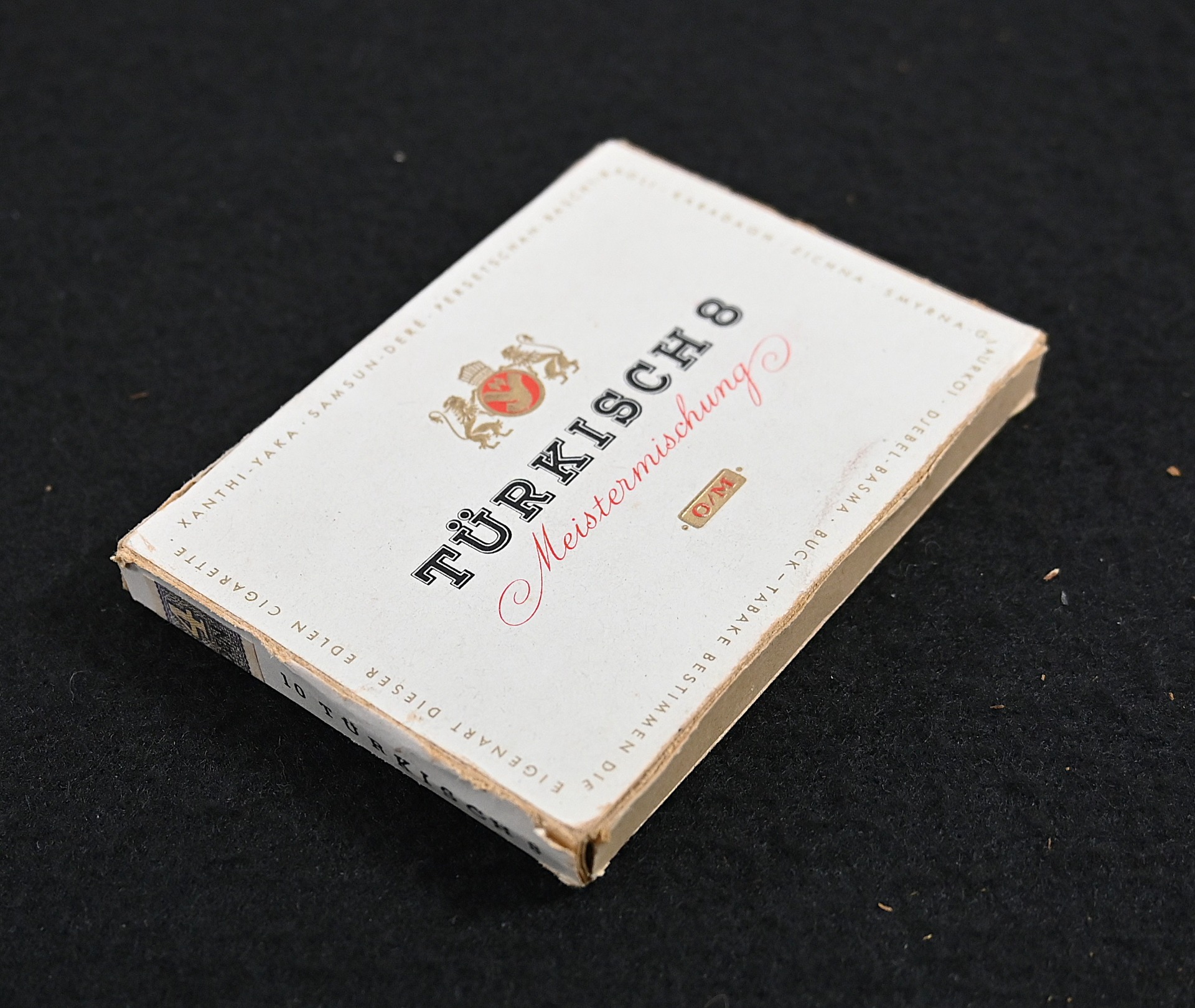 The pack shows overall signs of wear. It's not sealed anymore, but complete with all 10 cigarettes.