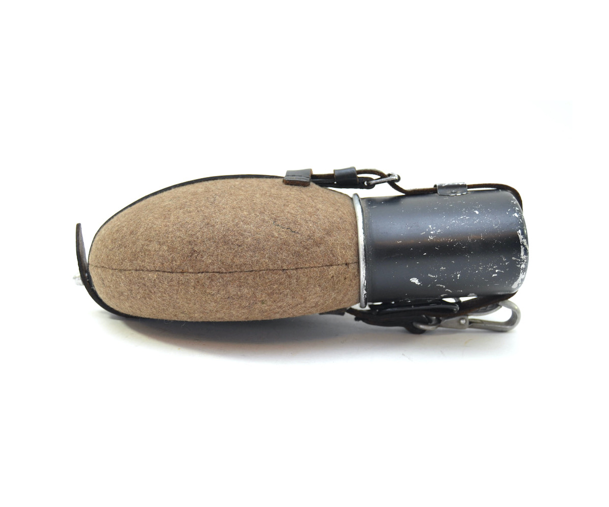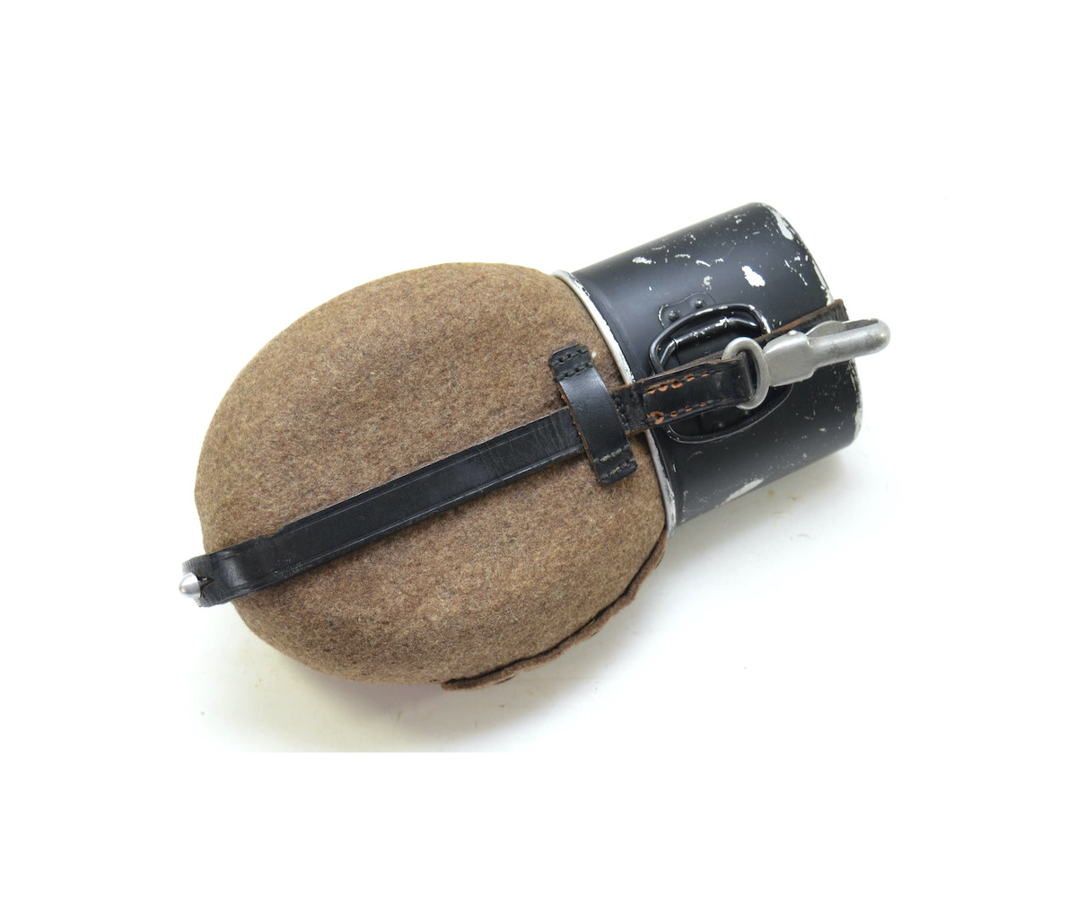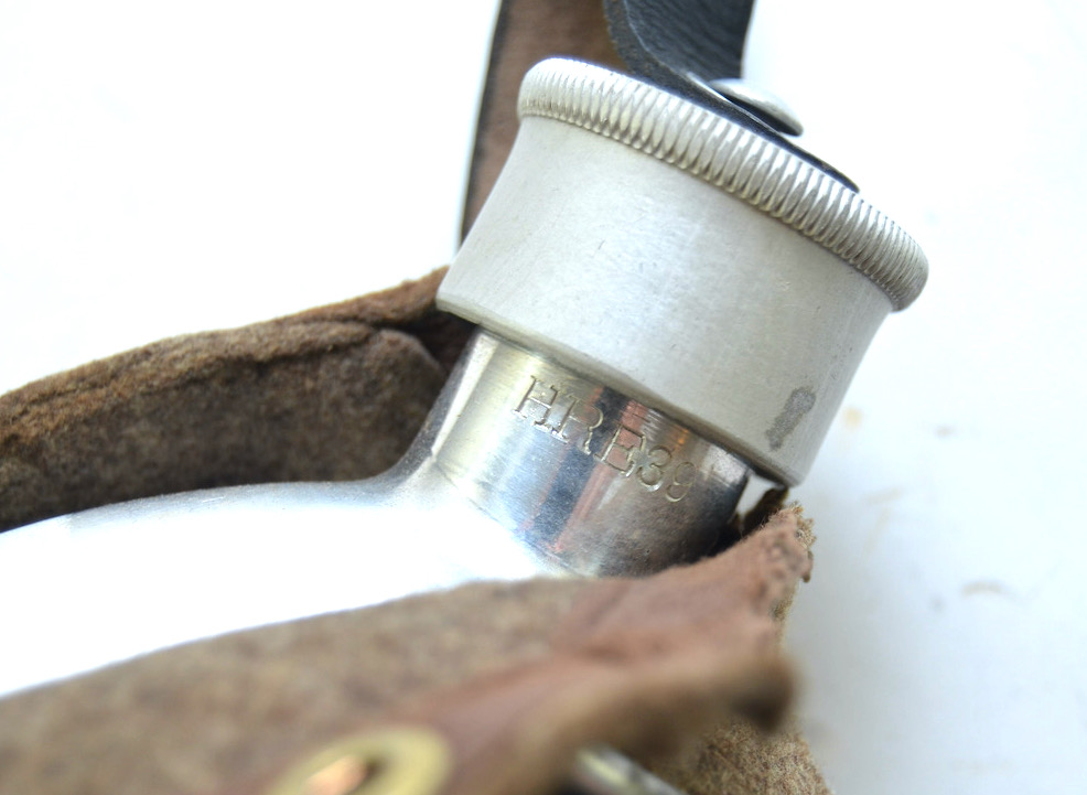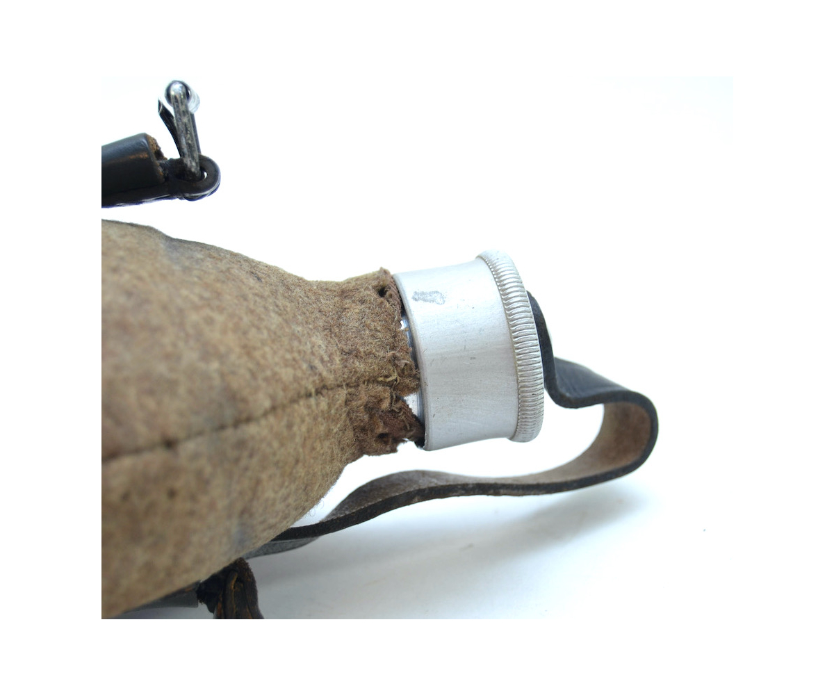 The overall condition of the canteen is good. The leather straps and felt cover are supple and in good condition. The felt cover, screw lid, canteen and canteen cup are all marked by the same maker 'HRE39', Which means it's produce by 'Heinrich Ritter' from 'Esslingen' in '1939'.