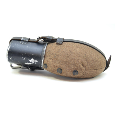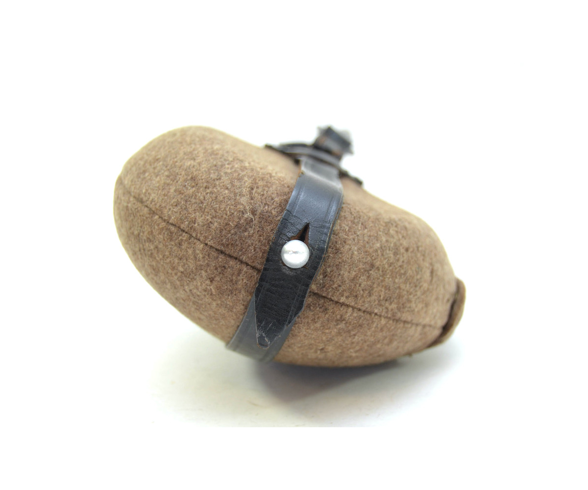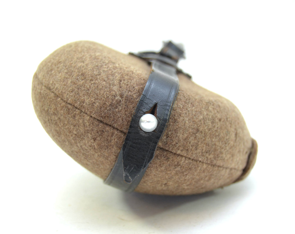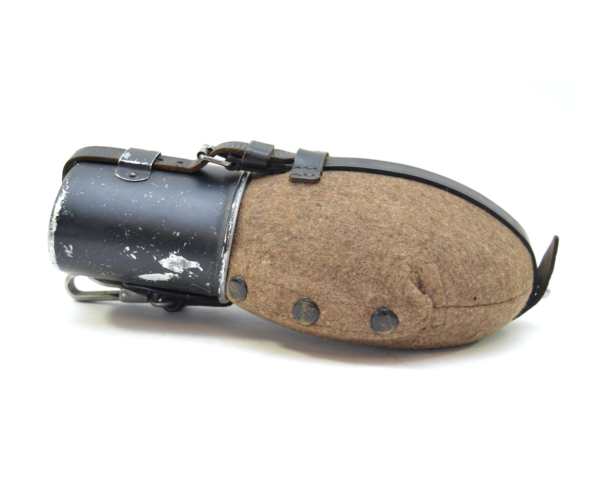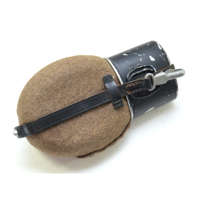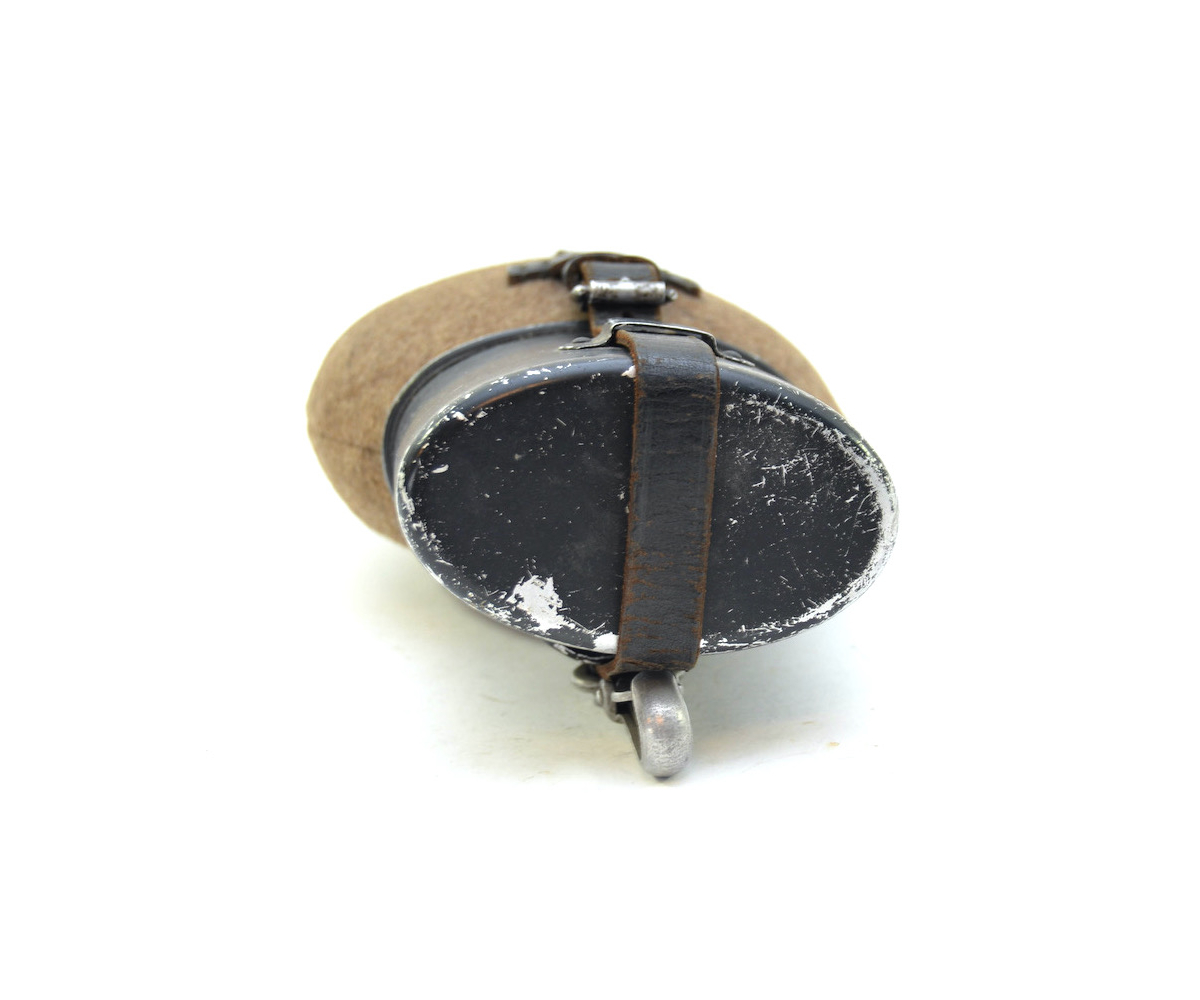 The overall condition of the canteen is good. The leather straps and felt cover are supple and in good condition. The felt cover, screw lid, canteen and canteen cup are all marked by the same maker 'HRE39', Which means it's produce by 'Heinrich Ritter' from 'Esslingen' in '1939'.