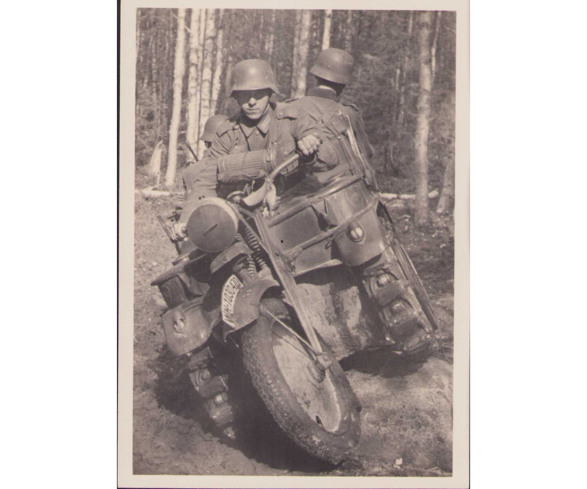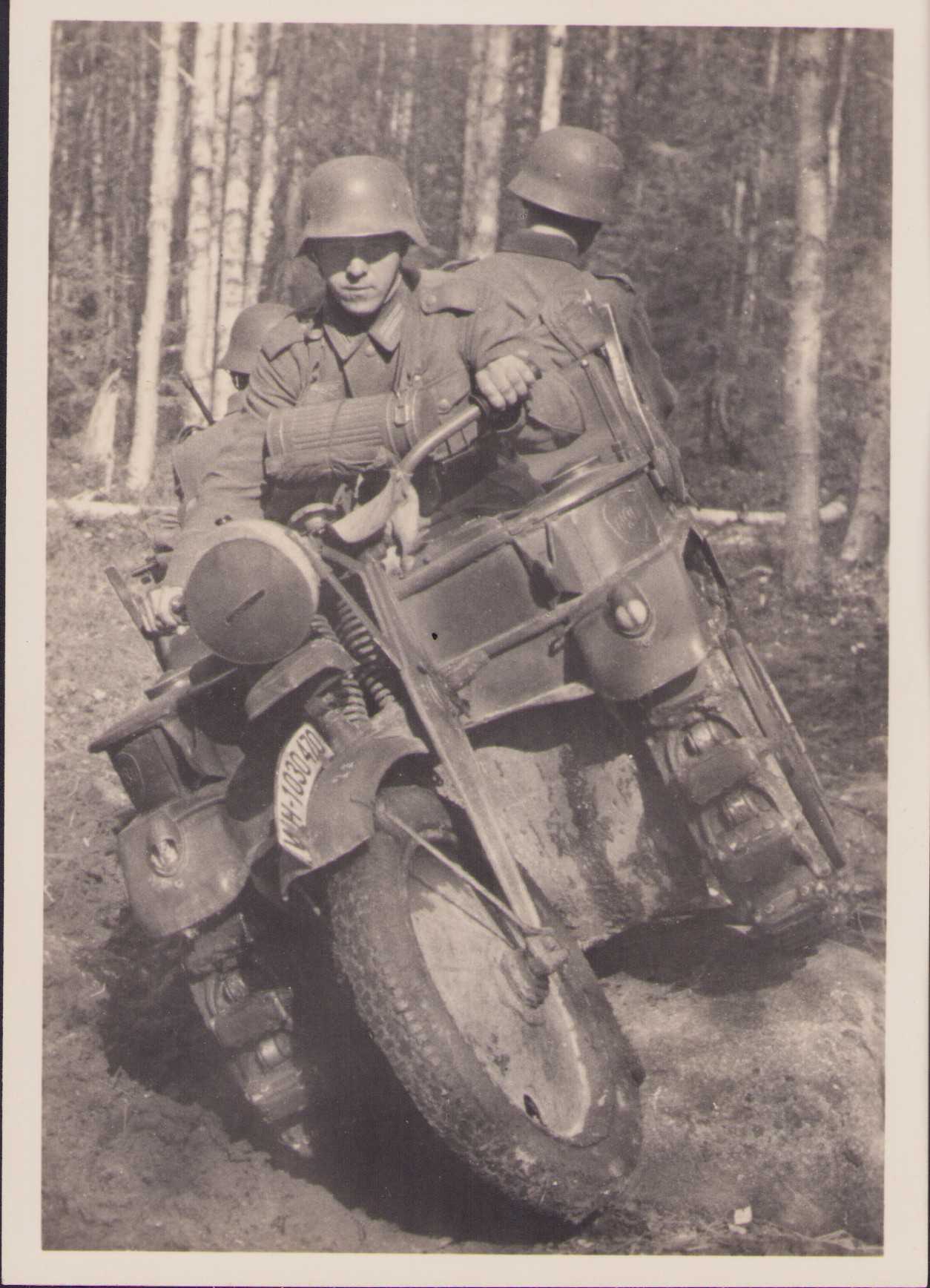 The postcard shows overall normal signs of storage wear. The subject of the postcard is 'Kettenkrad im Urwald.