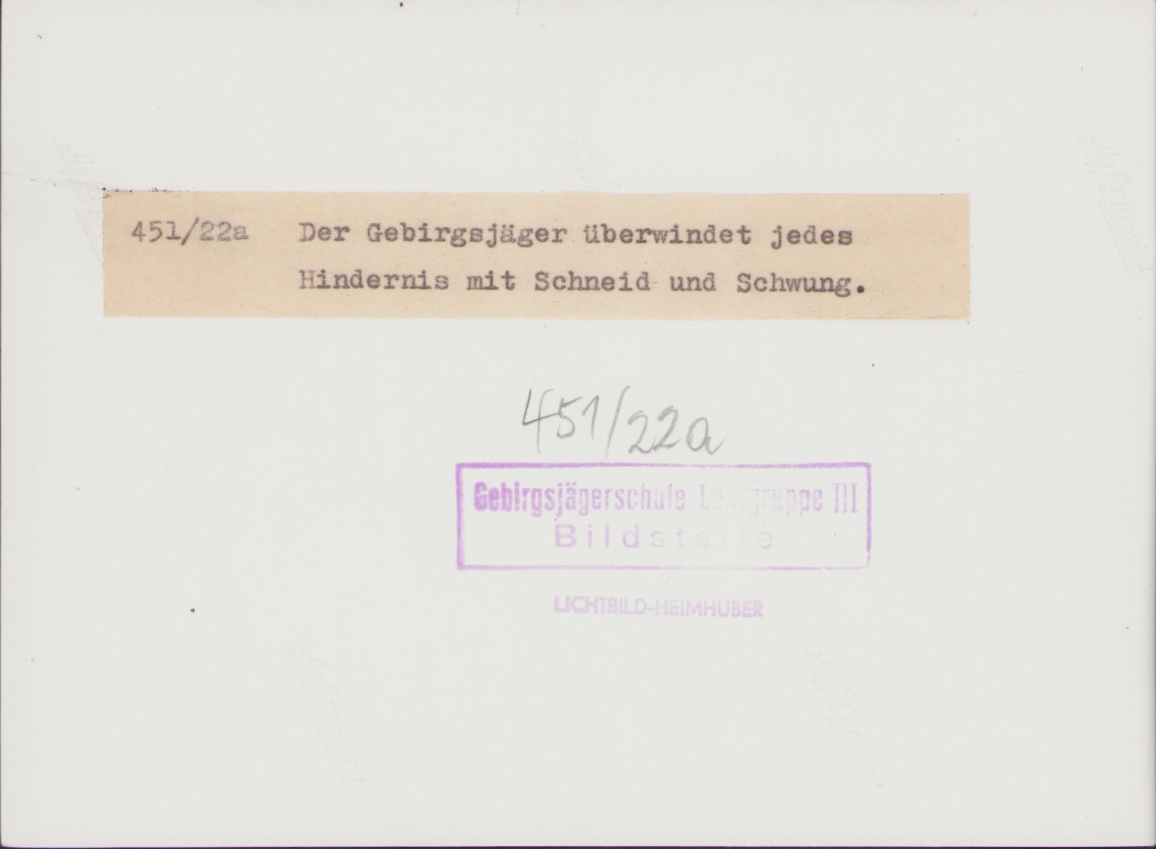 The size of the photograph is 13cm *18cm. Stamped on the back 'Gebirgsjägerschule Lehrgruppe III Bildstelle'.