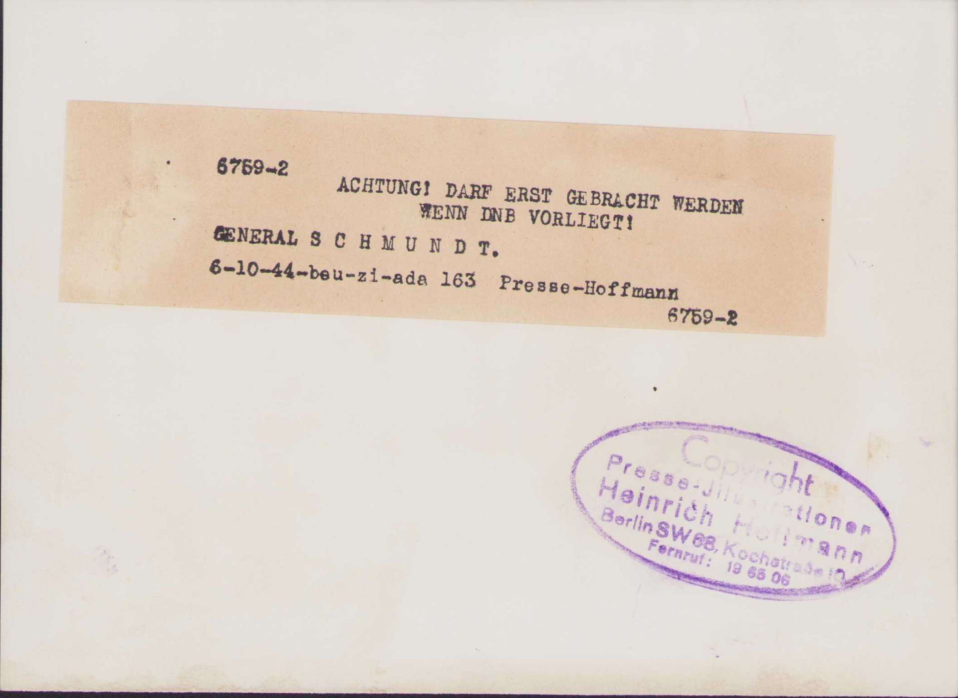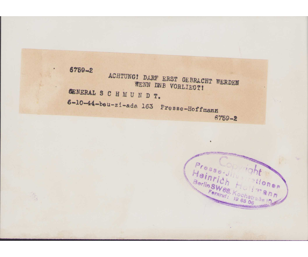 Very nice Wehrmacht General Rudolf Schmundt press photo in excellent condition.