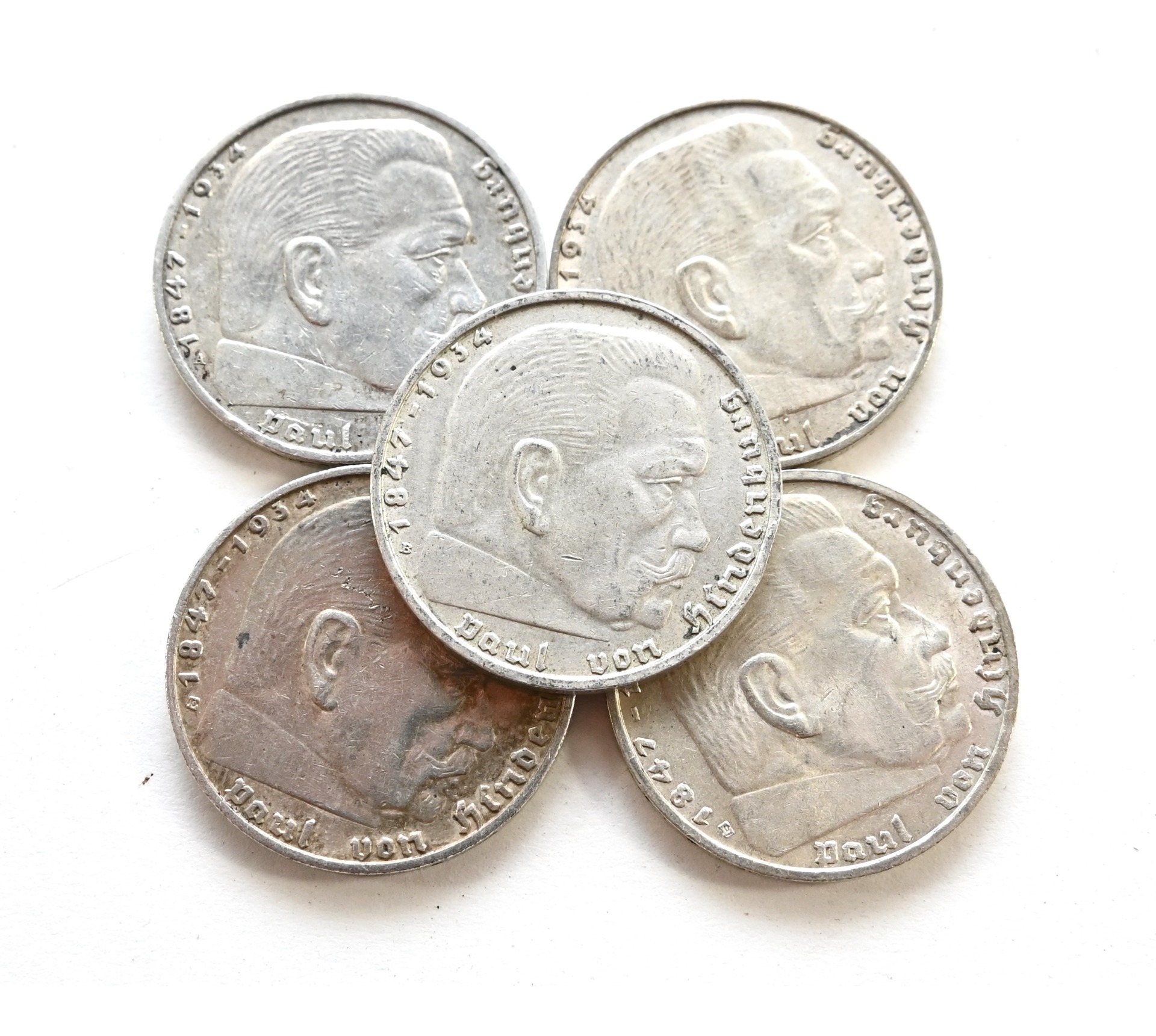All 5 coins are dated 1938 and in excellent (similar) condition.