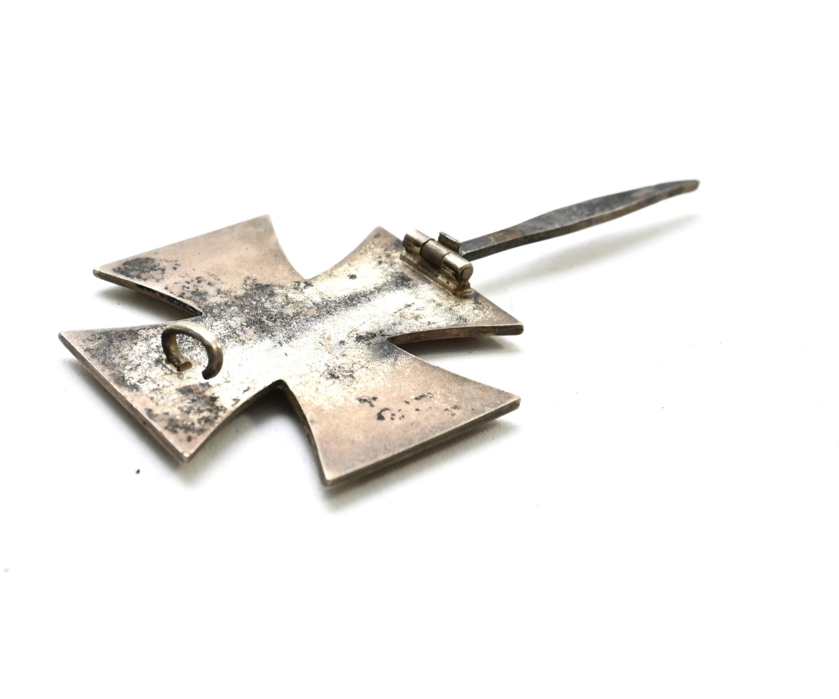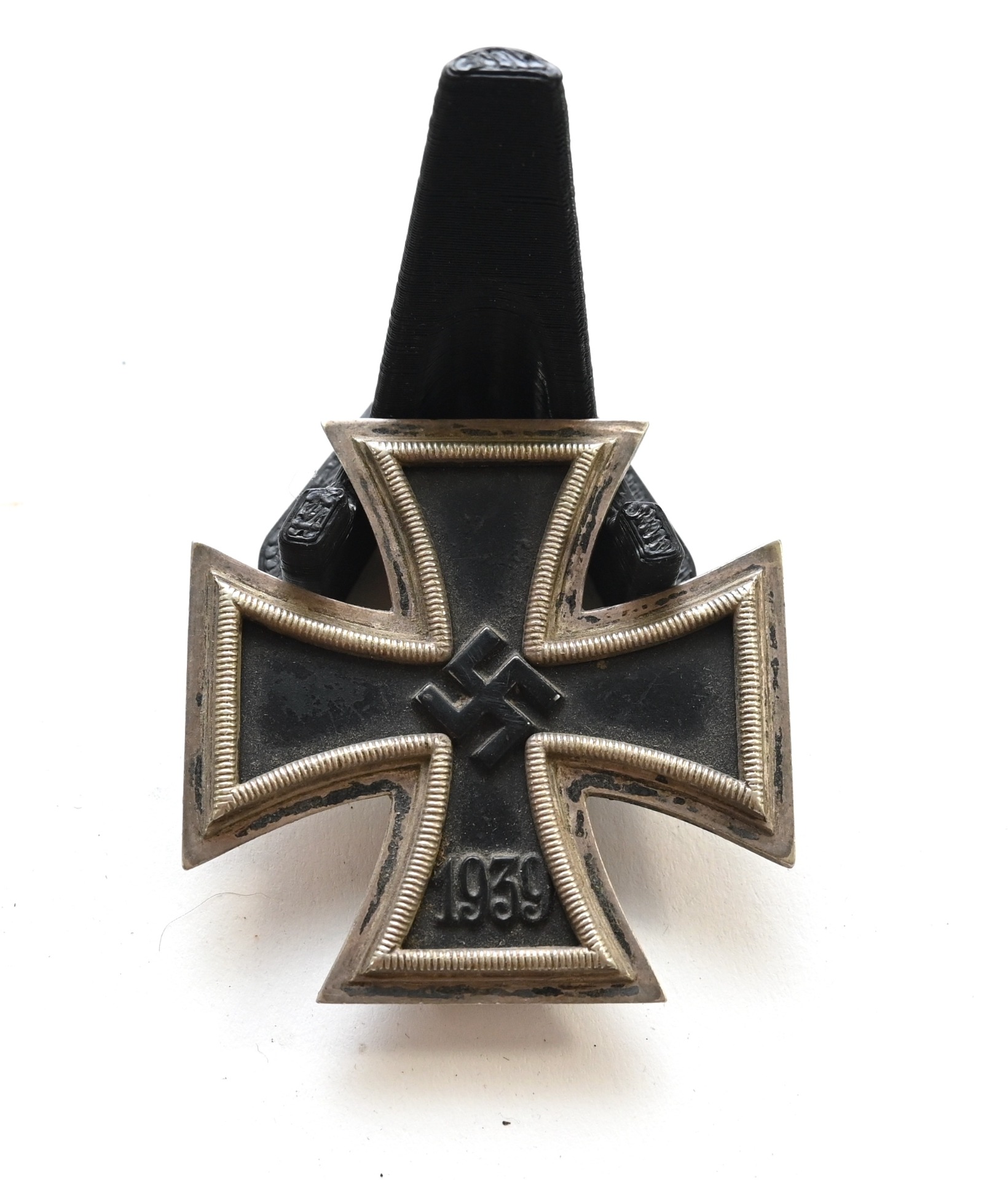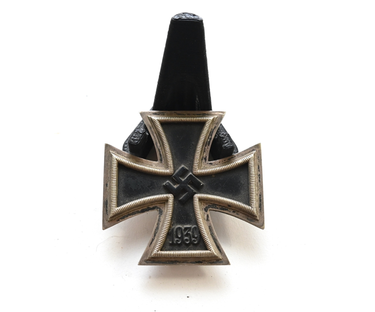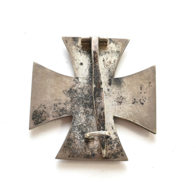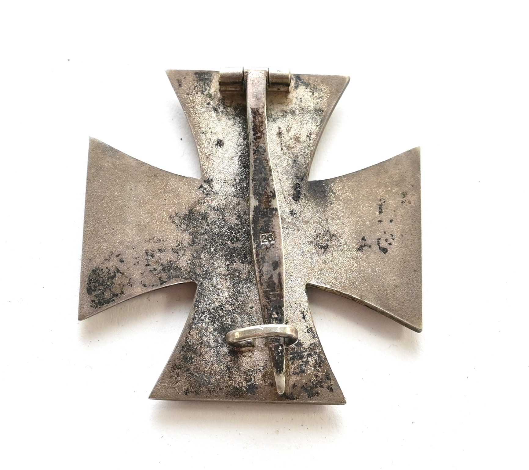 The overall condition of this 3-part EK1 with magnetic core is used but very good. The medal is complete with working pin and catch. The pin is nicely marked '26' which means the EK1 is made by 'B.H.Mayer' from 'Pforzheim'.