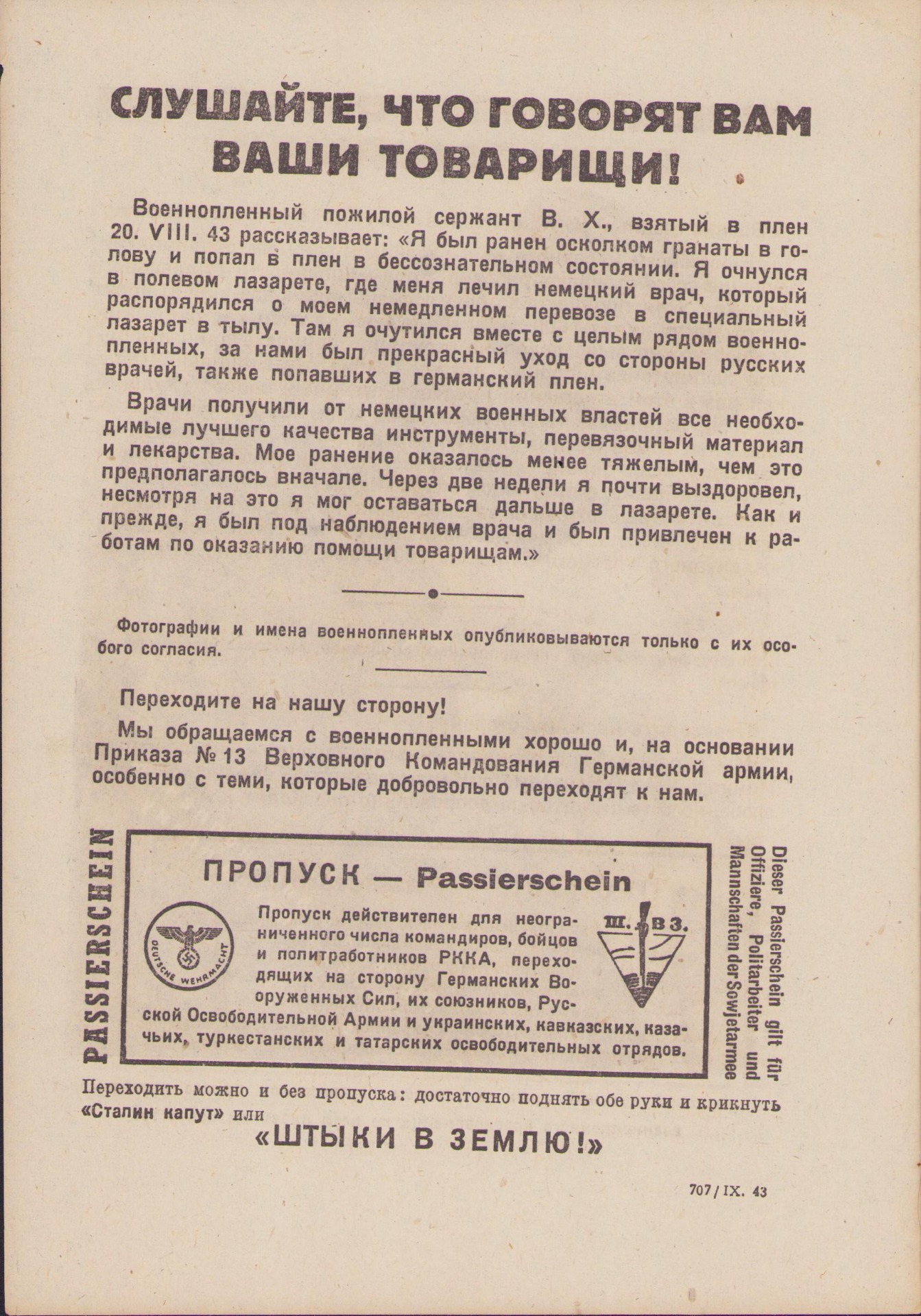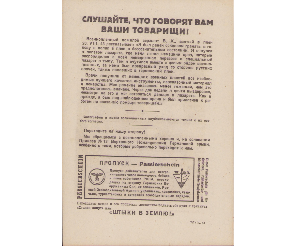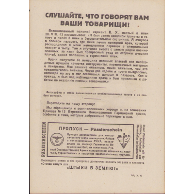 Very nice Wehrmacht issued anti-Russian propaganda leaflet or 'Flugblätter' in excellent condition.