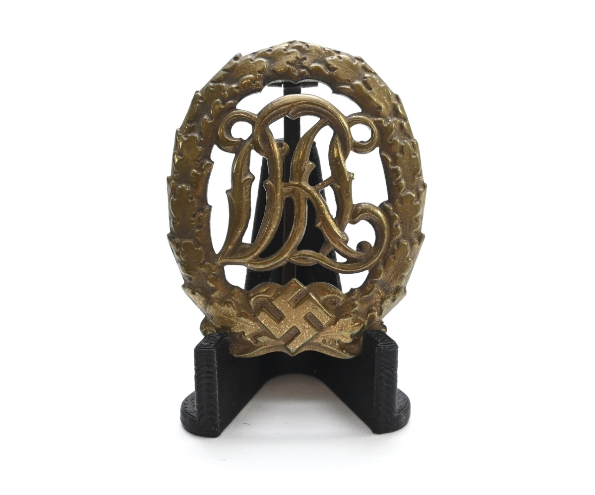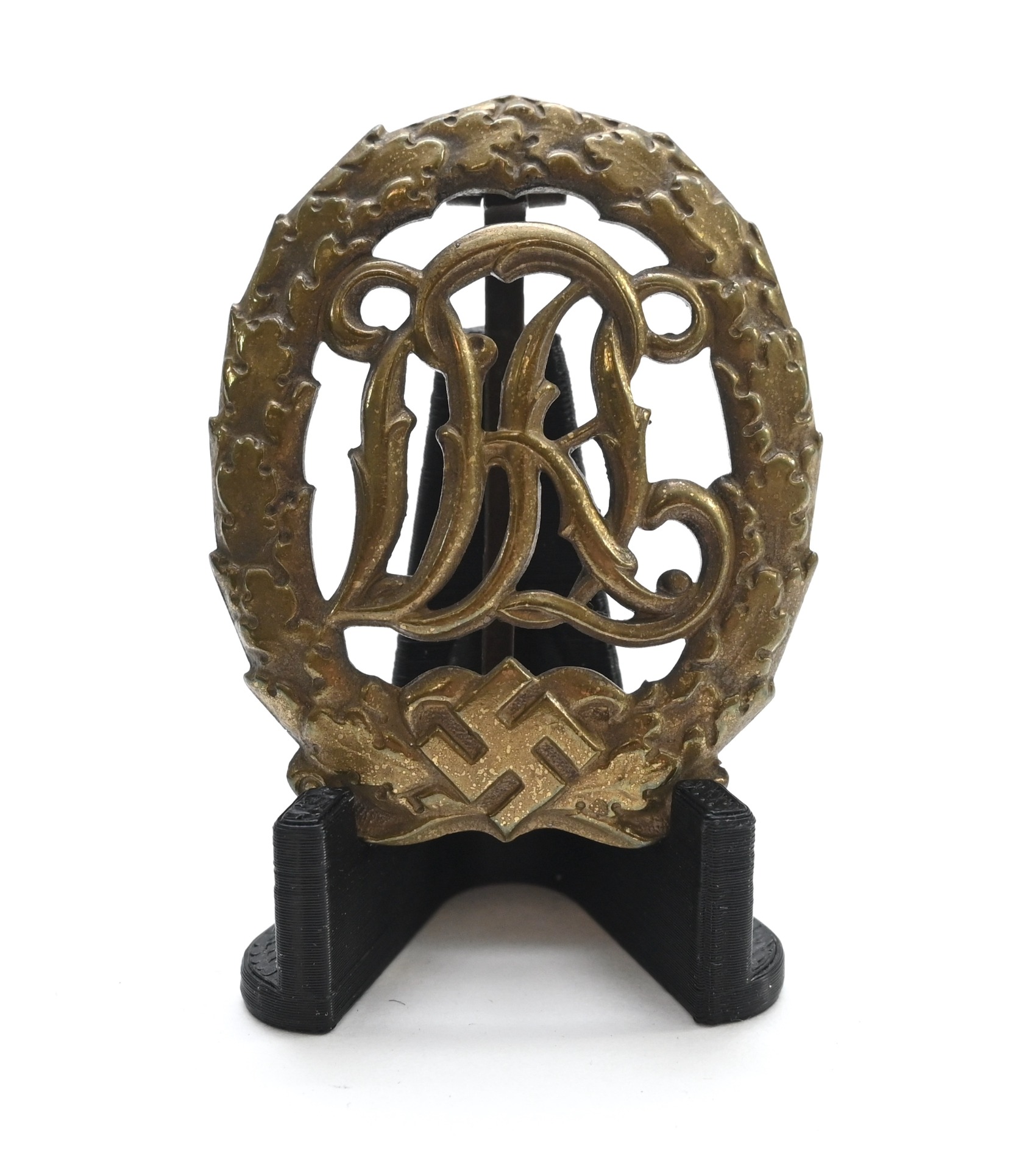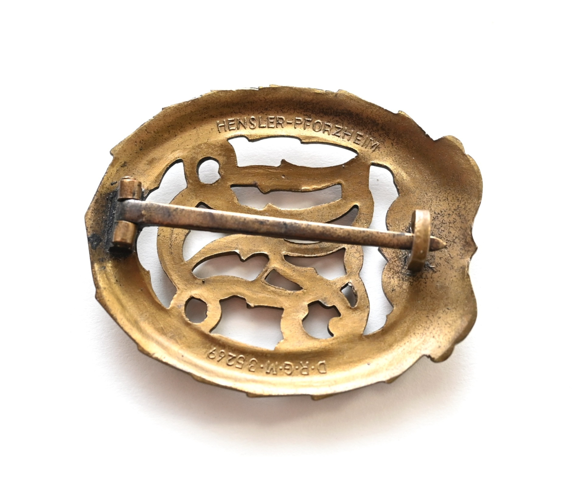 The badge is in used but very good condition. Complete with working pin and catch. Marked on the back with 'Hensler' from 'Pforzheim'. Also marked 'D.R.G.M.' & Number '35269' near the catch. Hard to find example as most of the DRL's that can be found are from 'W.Jena'.