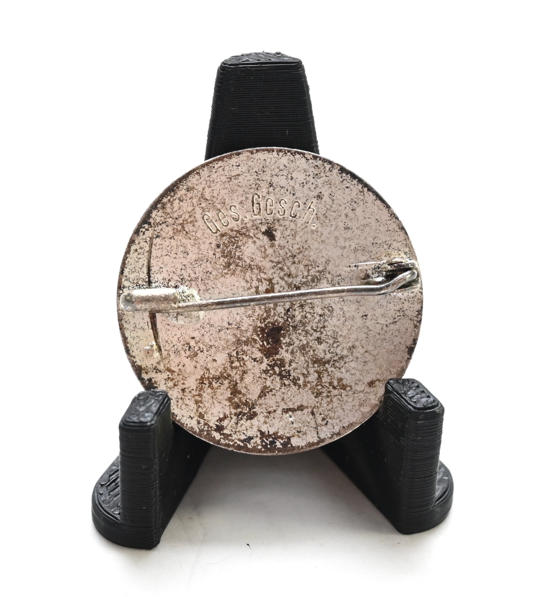 The brooch shows overall normal signs of wear. It's complete with working pin on the back. Nicely marked 'Ges.Gesch.'