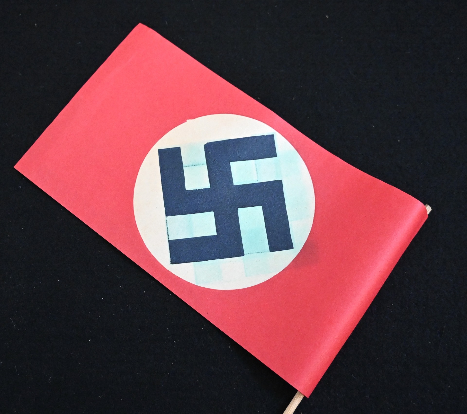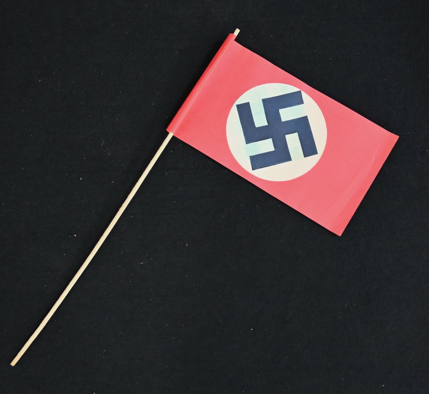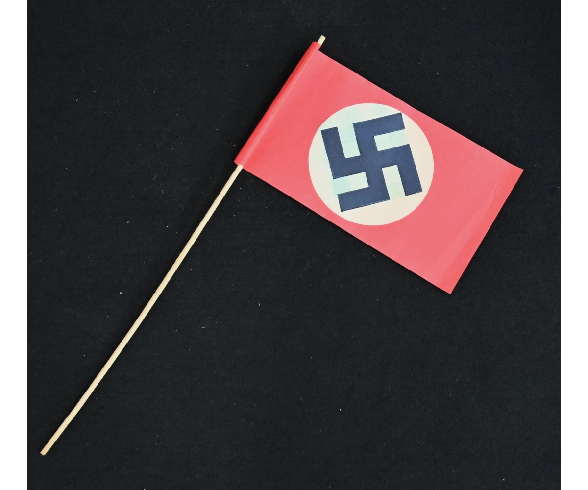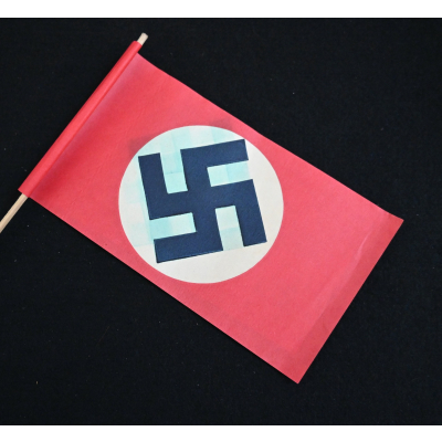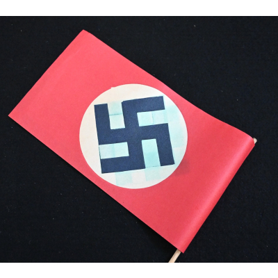 Complete on its wooden stick. Length of the stick is 40cms. The size of the flag is approx. 12cms * 22cms.