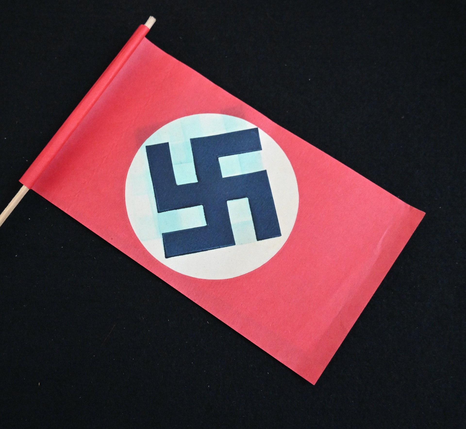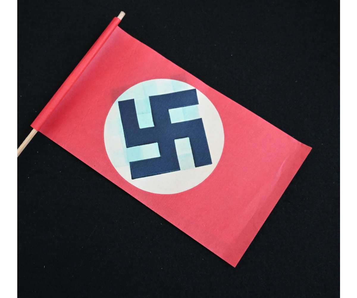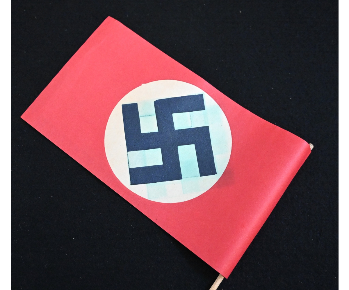 Complete on its wooden stick. Length of the stick is 40cms. The size of the flag is approx. 12cms * 22cms.