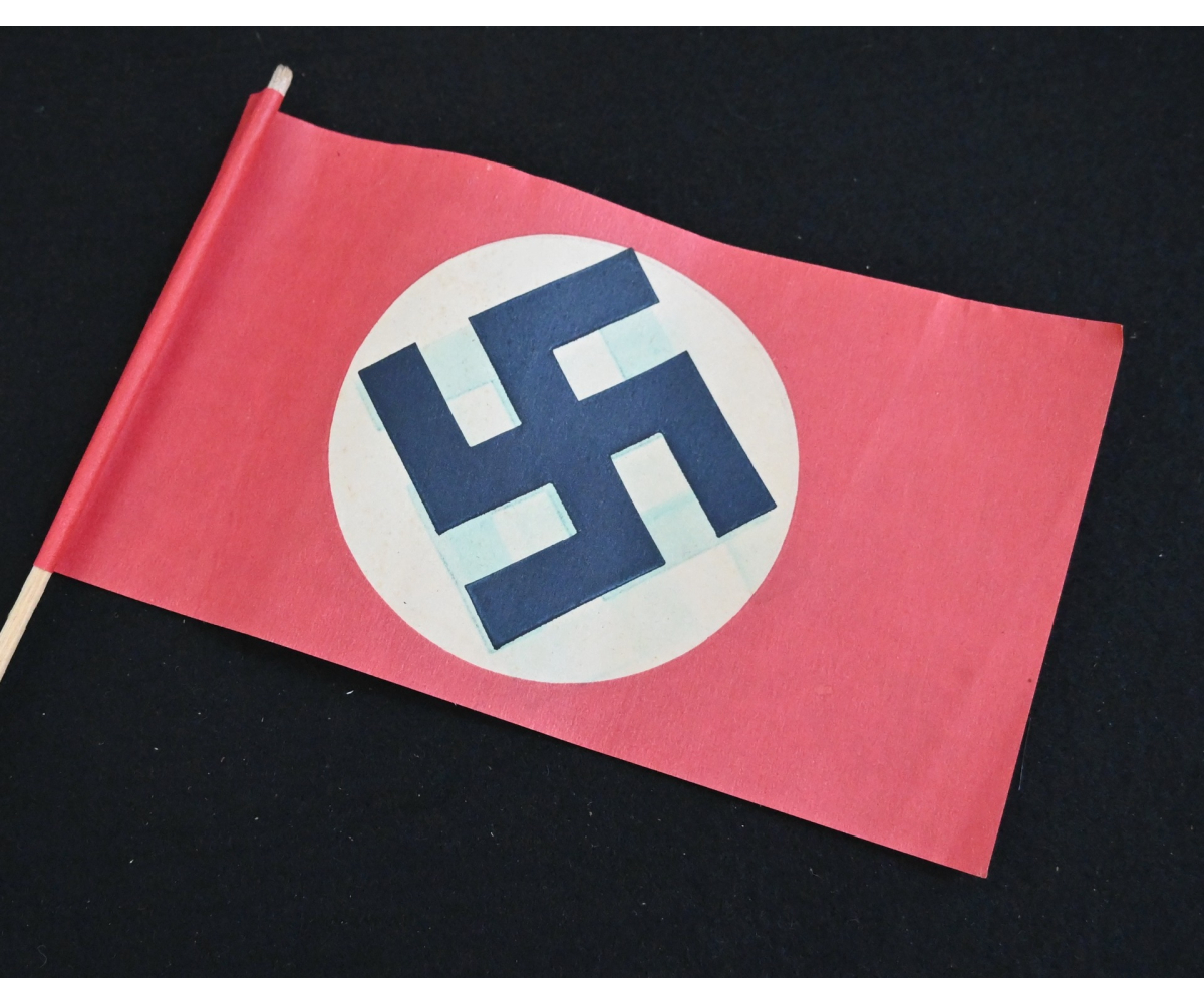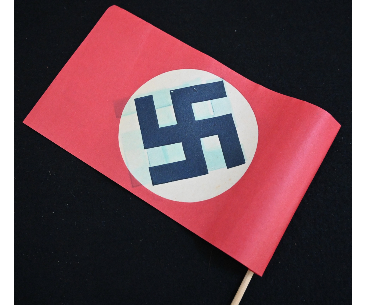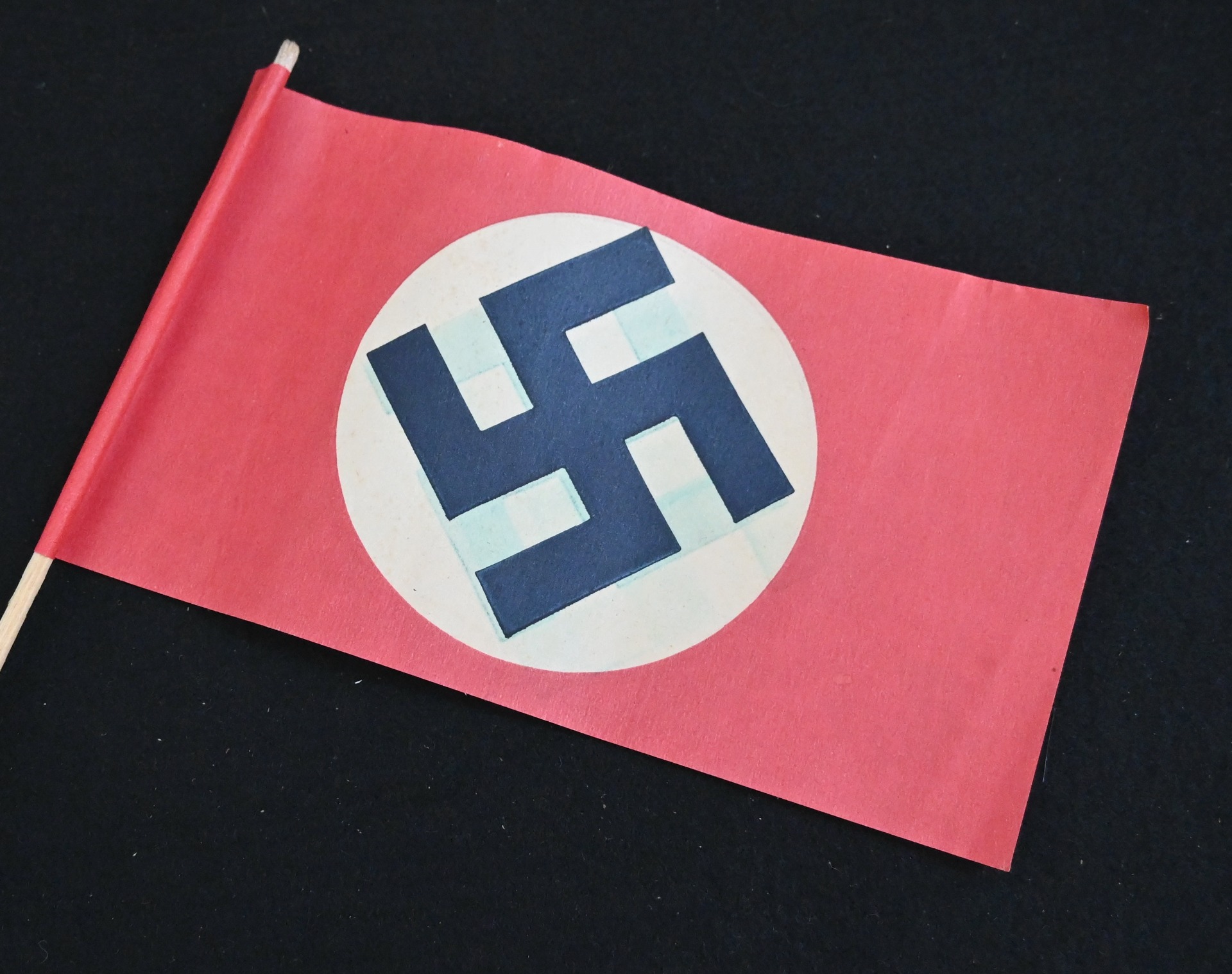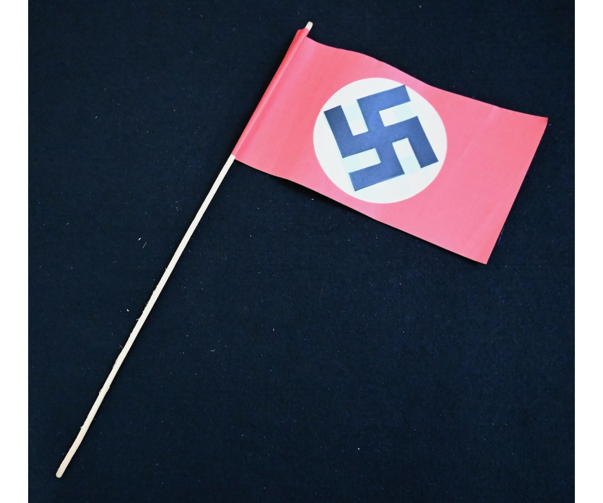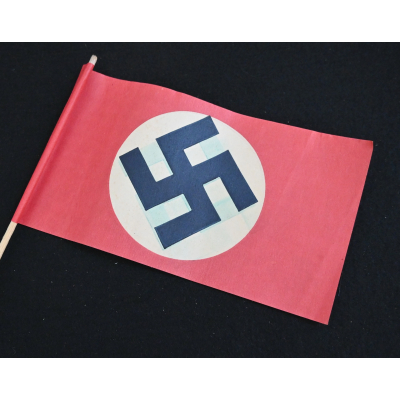 Complete on its wooden stick. Length of the stick is 40cms. The size of the flag is approx. 12cms * 22cms.