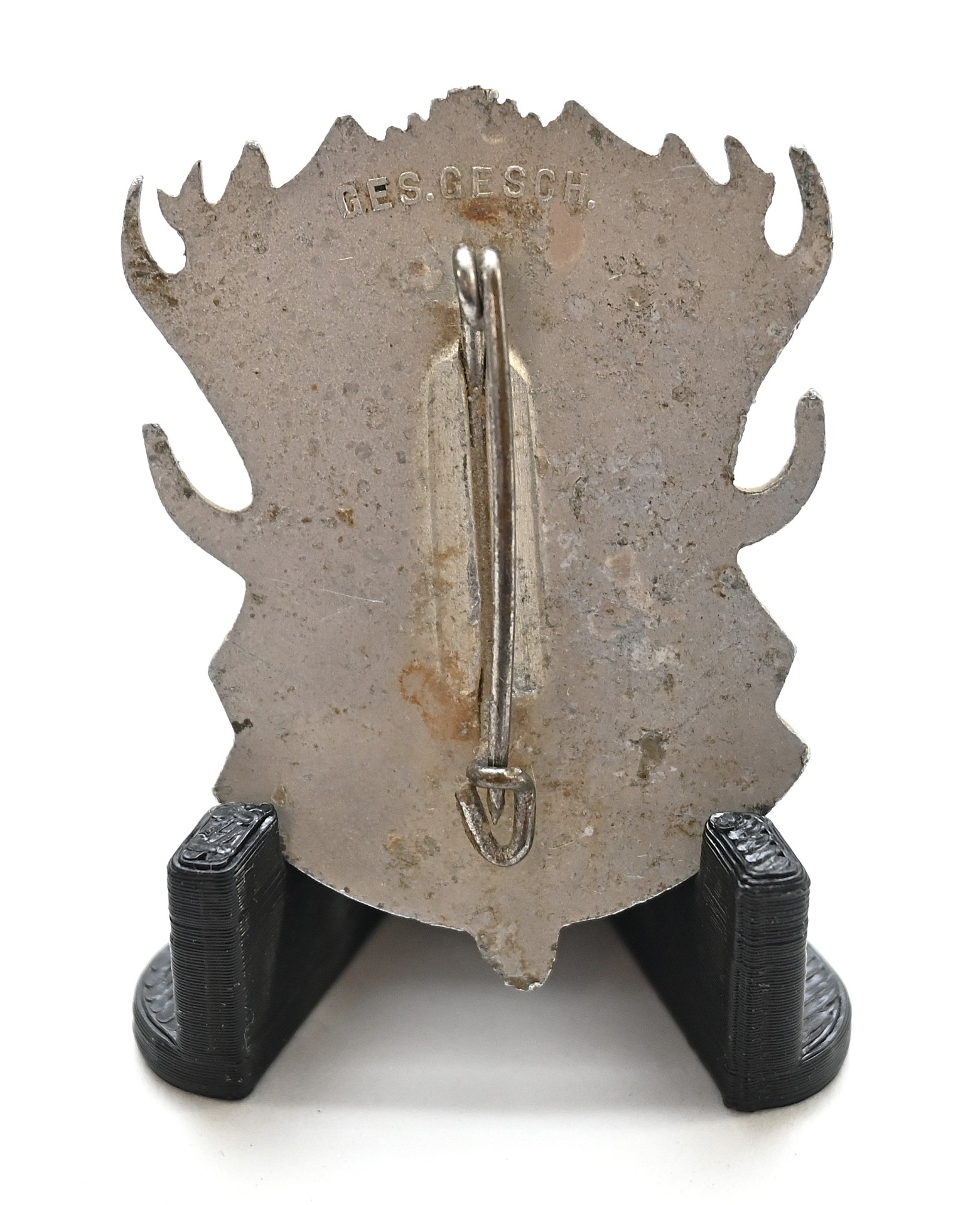 The abzeichen or badge shows overall normal signs of wear. Its complete with needle on the back and marked 'Ges.Gesch.'.