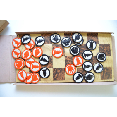 The set shows overall normal signs of wear. The game board as well as all the parts (to play all 3 games) are present.