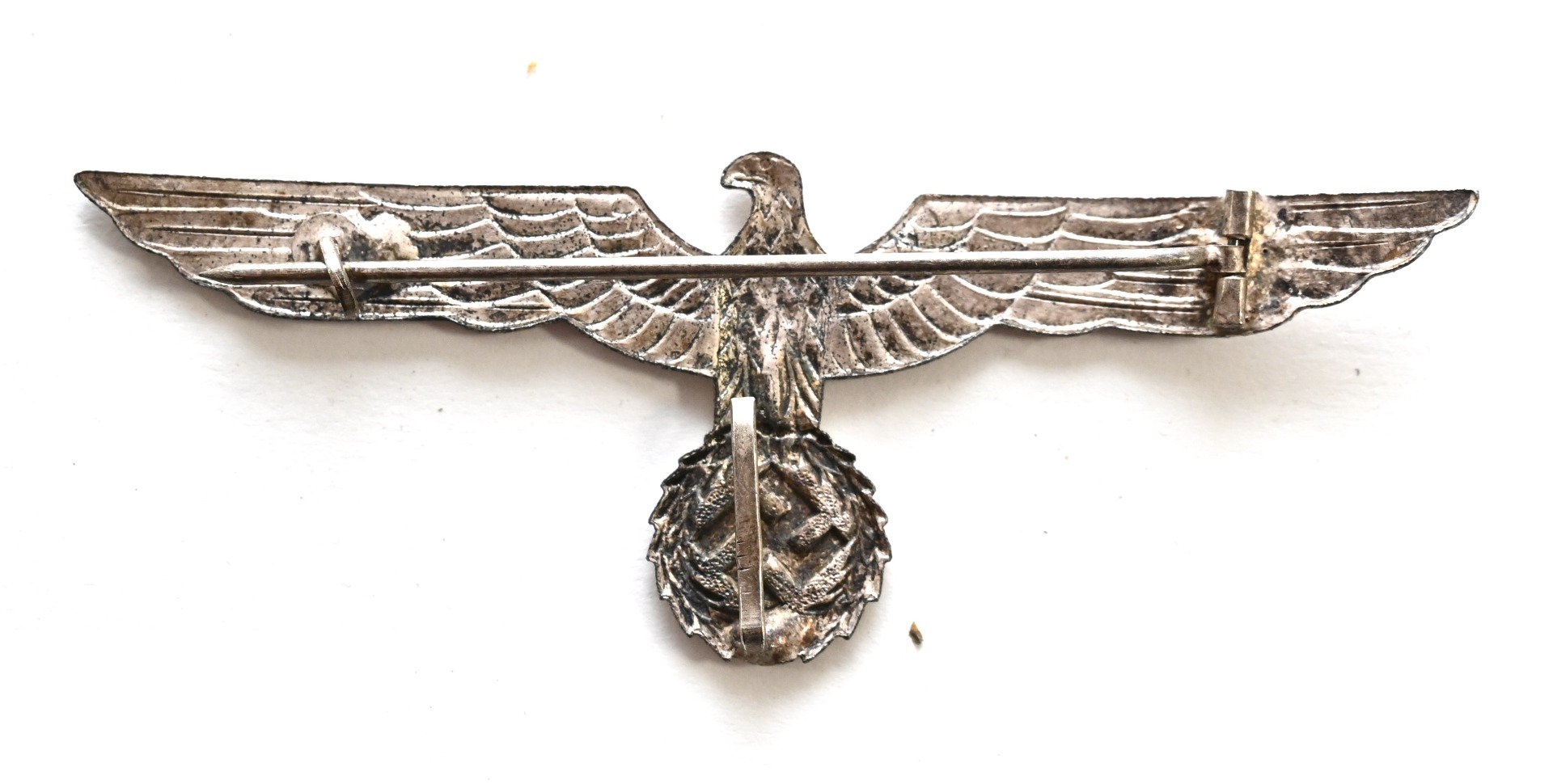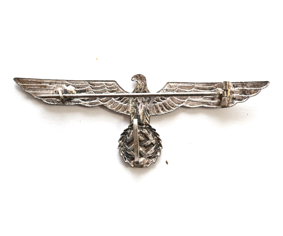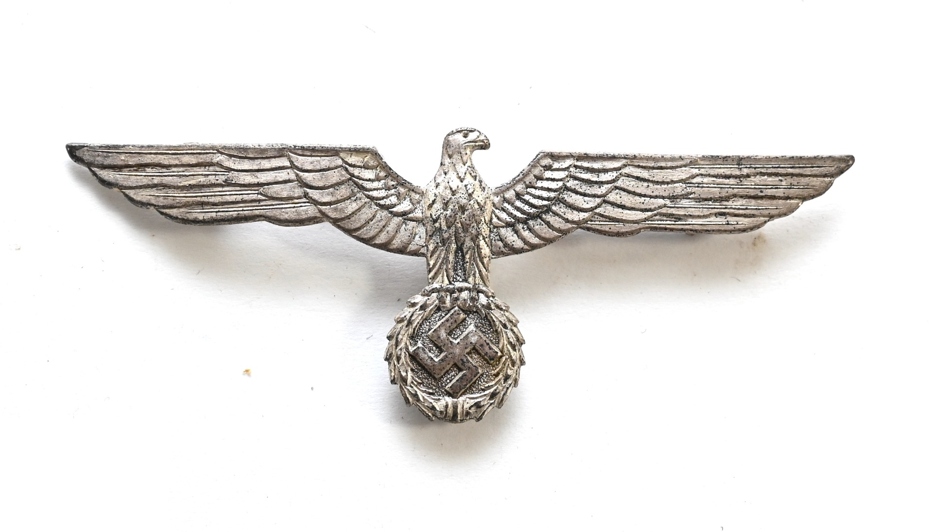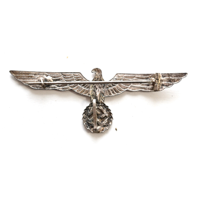 The eagle shows normal signs of wear. It has an overall very nice patina. It still contains almost all of its frosty finish. Complete with working pin and catch on the back. These eagle were used by multiple branches of the Wehrmacht like the Heer, Artillerie etc, but also for Kriegsmarine Beamten personnel.