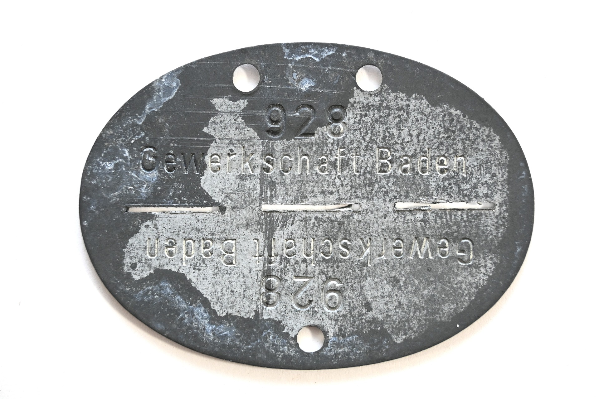 Very nice and hard to find Gewerkschaft Baden related tag in excellent condition.