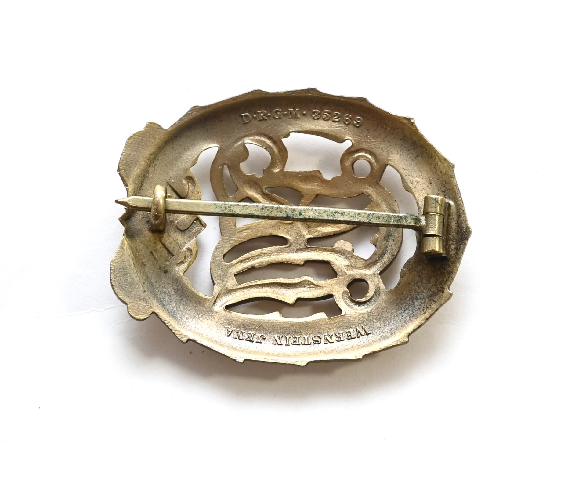 Excellent example. Complete with working pin and catch. Marked on the back with 'Wernstein Jena', 'D.R.G.M.' & Number '35269'.