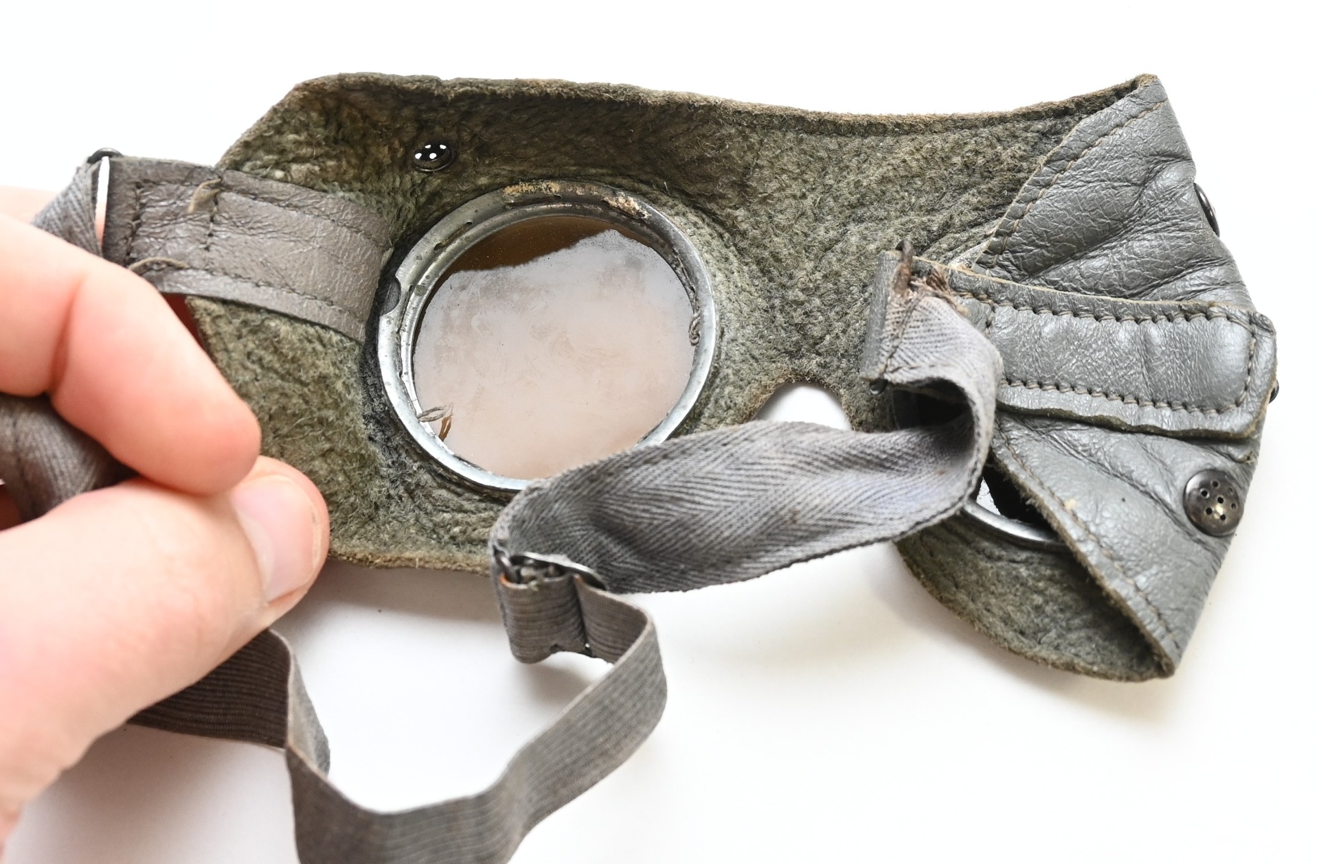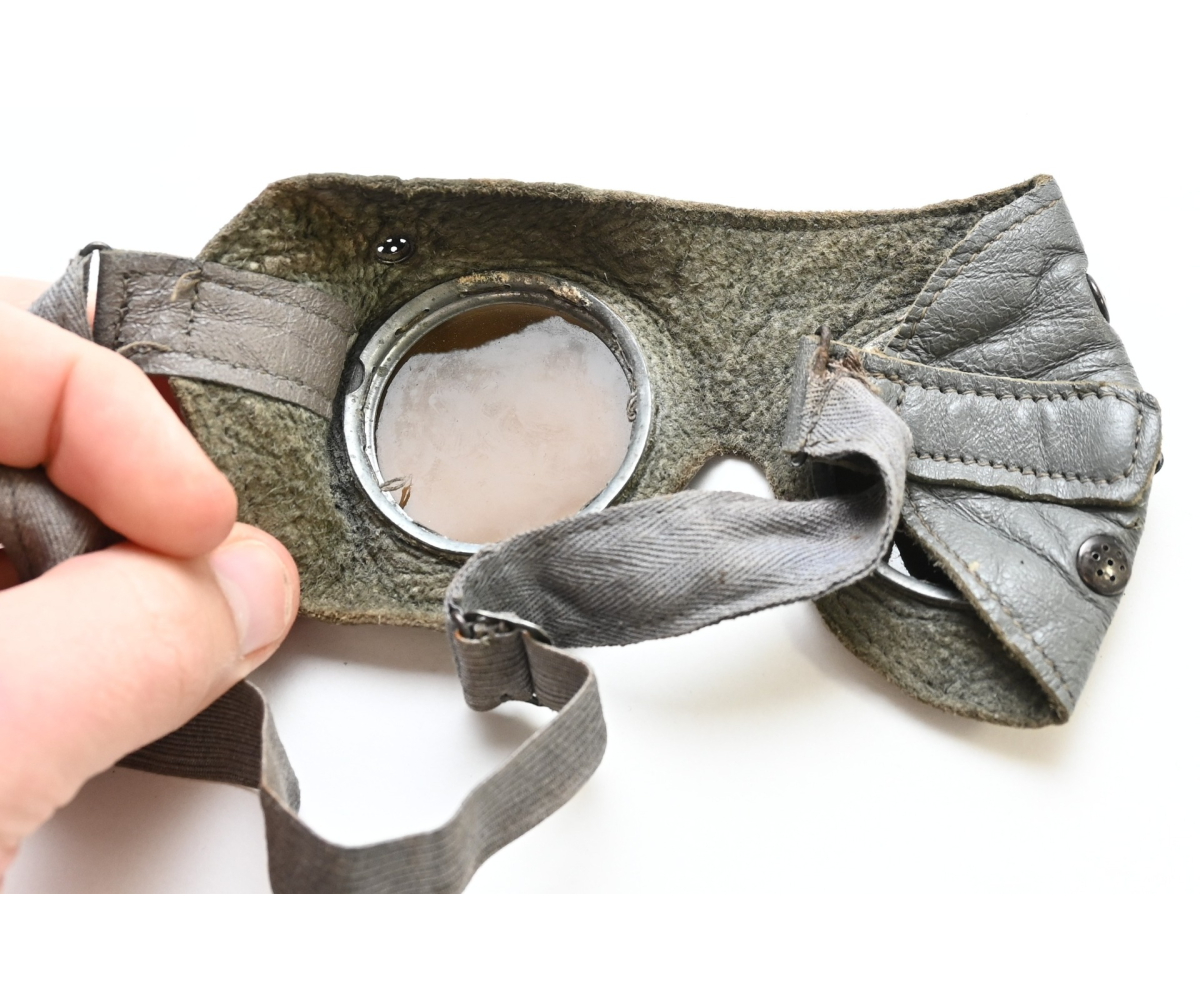 Very nice grey leather wehrmacht issued schutzbrille in used, but very good condition.