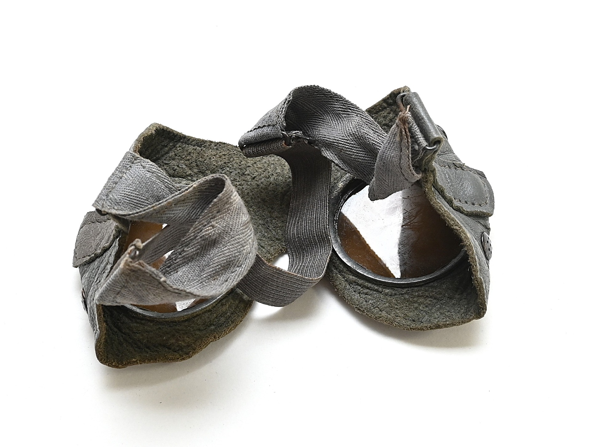 The goggles show overall normal signs of wear. The headband is still elastic. These where one of the many dust/sun goggles which where provided by the Wehrmacht.