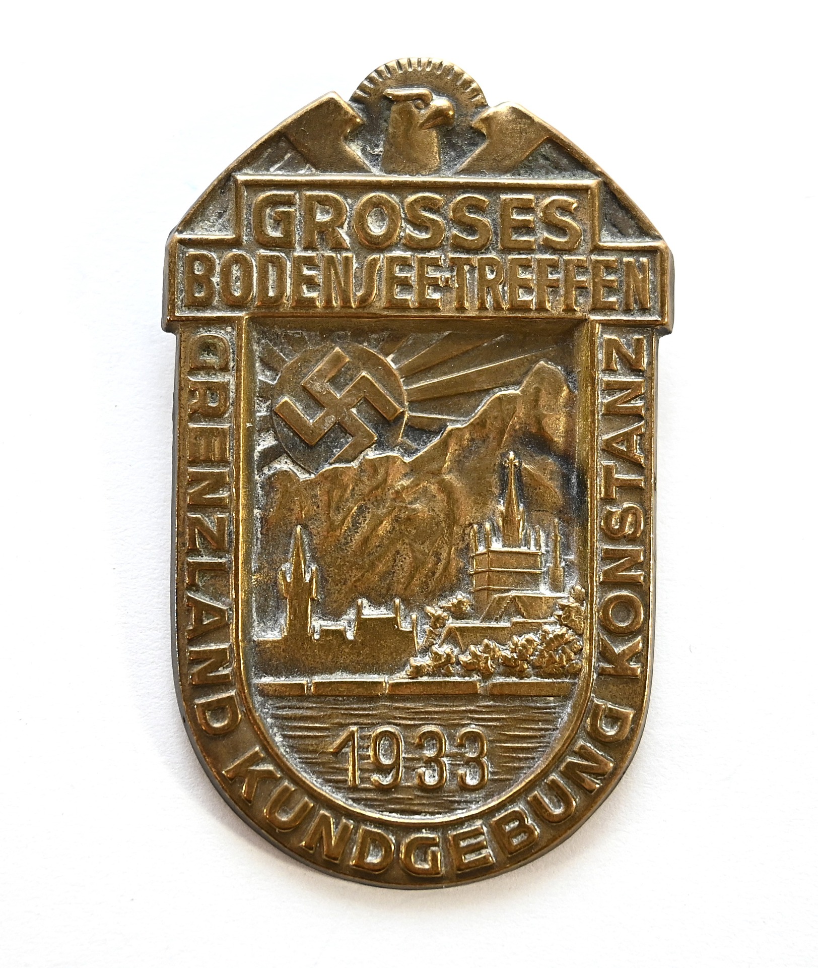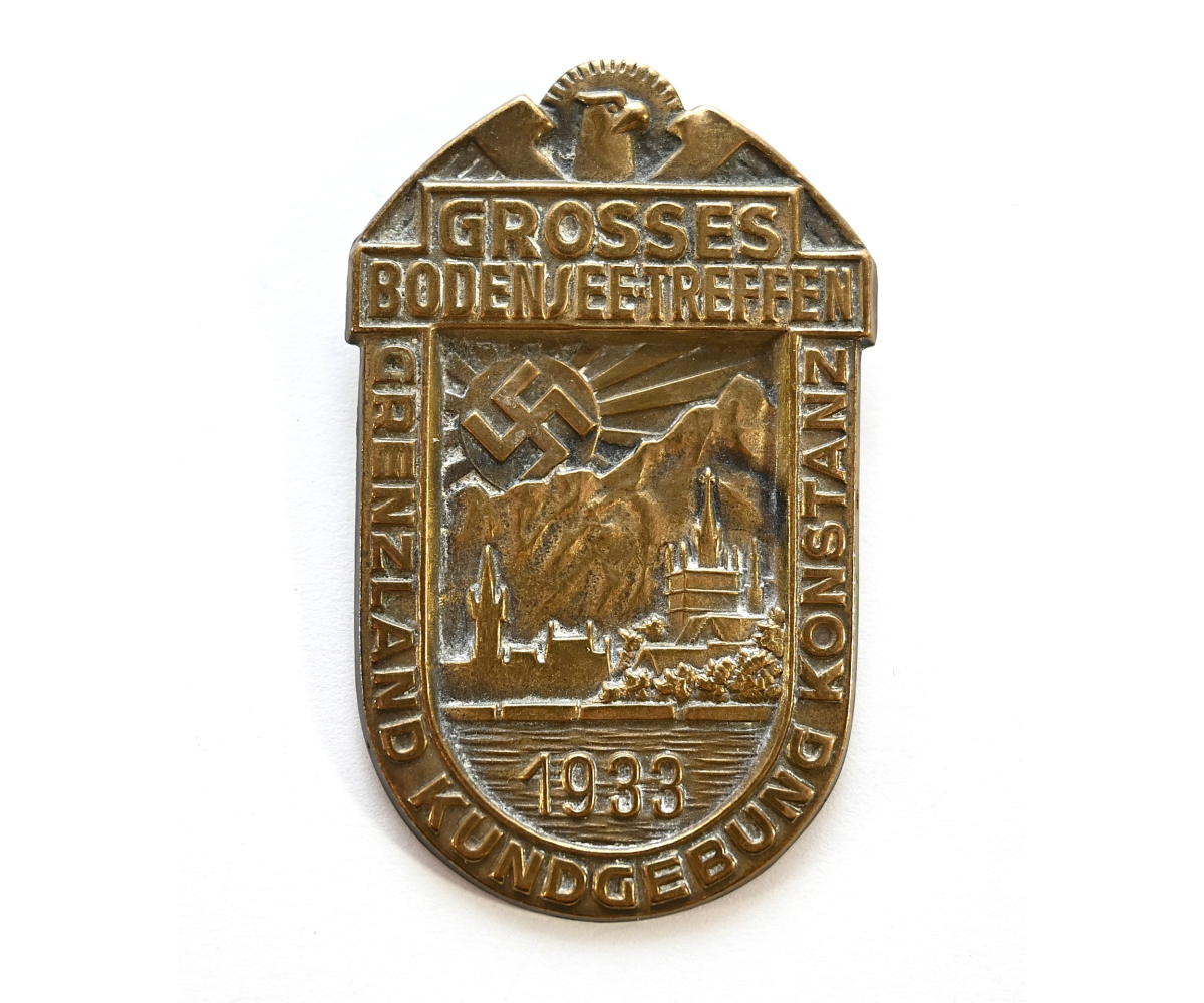 The badge or 'Abzeichen' shows overall minor signs of wear, It's complete with working needle on the back. Issued in 1933 during the Grosses Bodenseetreffen Grenzland Kundgbung Konstanz.