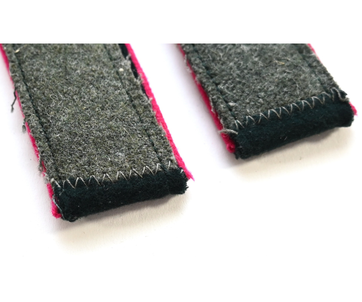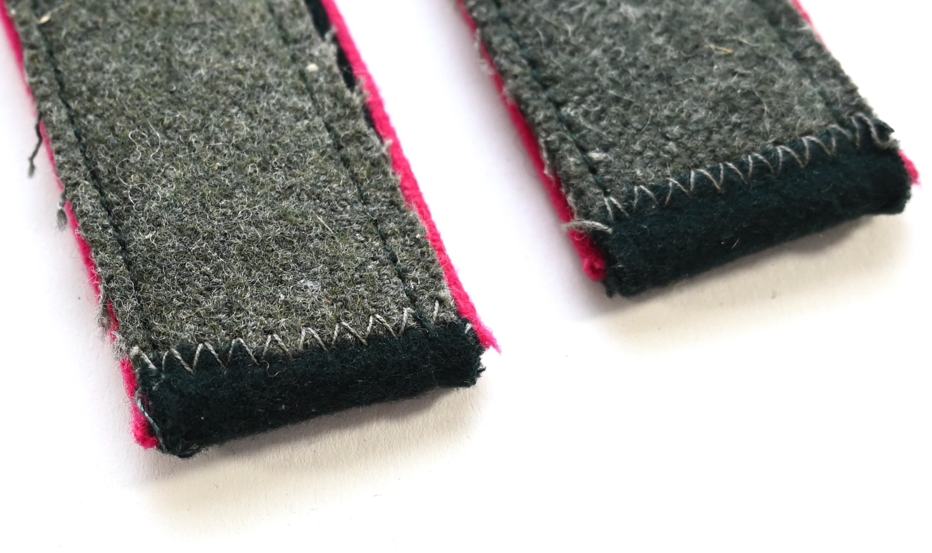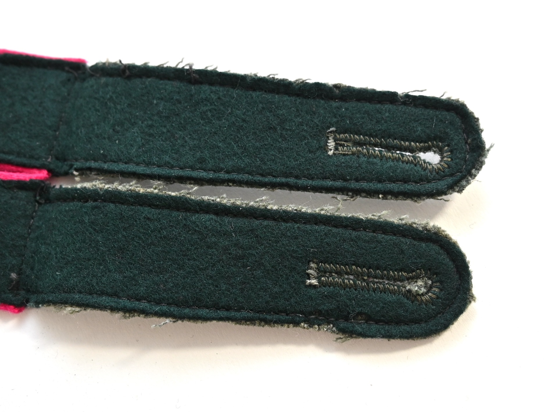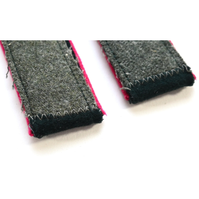 Both straps are in used but very good condition. Some very small mothing is visible but only on the back. The letter 'A' on both straps stands for 'Akademie'. The Crimson ('Karmesinrot') Branch Color (Waffenfarben) means that the straps belonged to a veterinarian. Both straps match in color and are approximately 11 cm long and 3.3 cm wide.