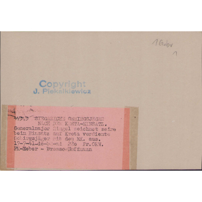 The photograph shows overall normal signs of (storage) wear. Complete with caption on the back. It was attached on a piece of thicker paper at some point. It was taken during a Eisernes Kreuz 1.Klasse awarded ceremony on the island of Crete.