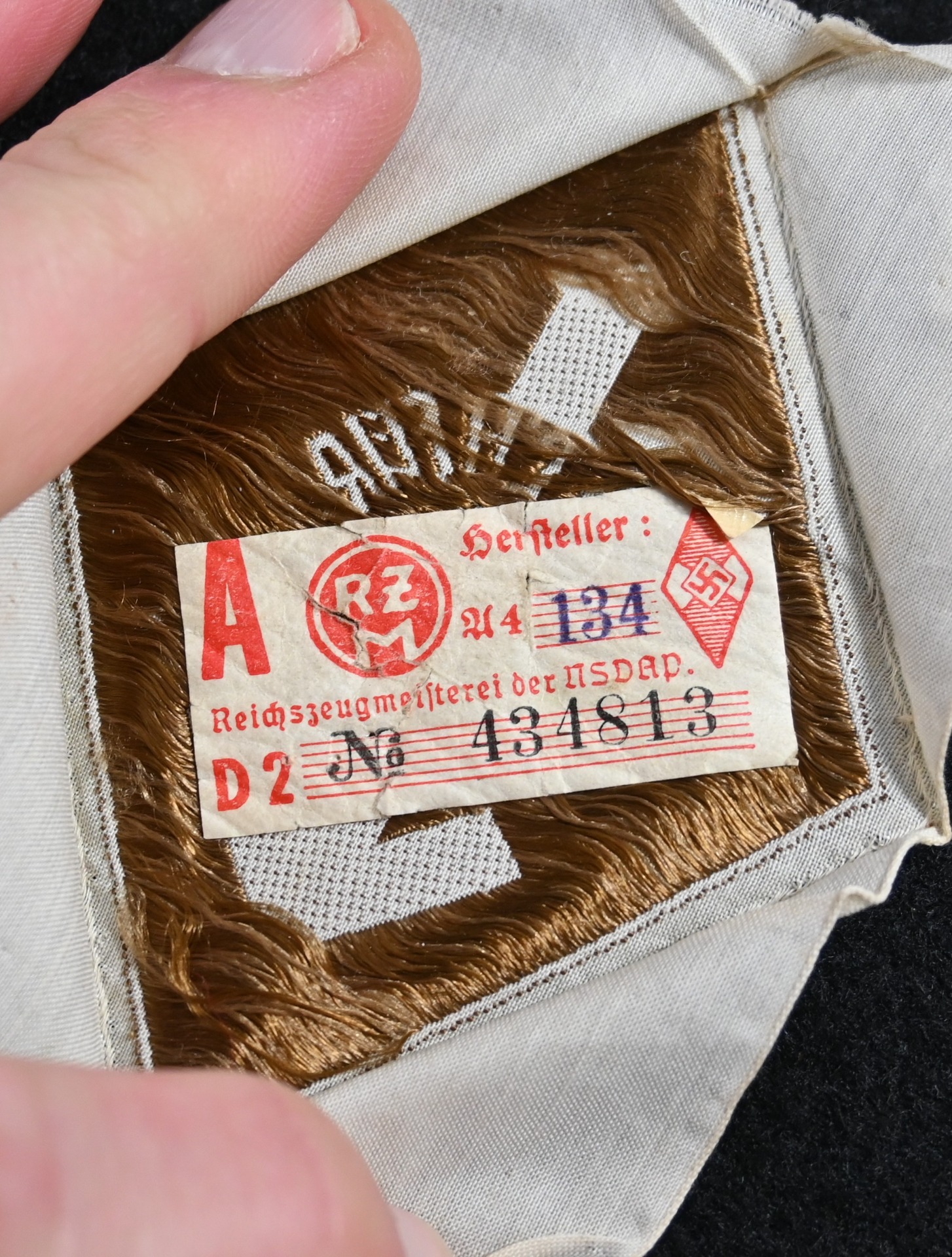 Nice and less common cloth version of the Bronze Hitler Jugend Leistungsabzeichen in near mint condition.