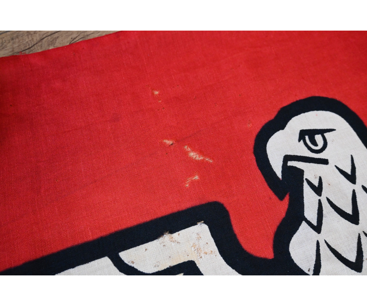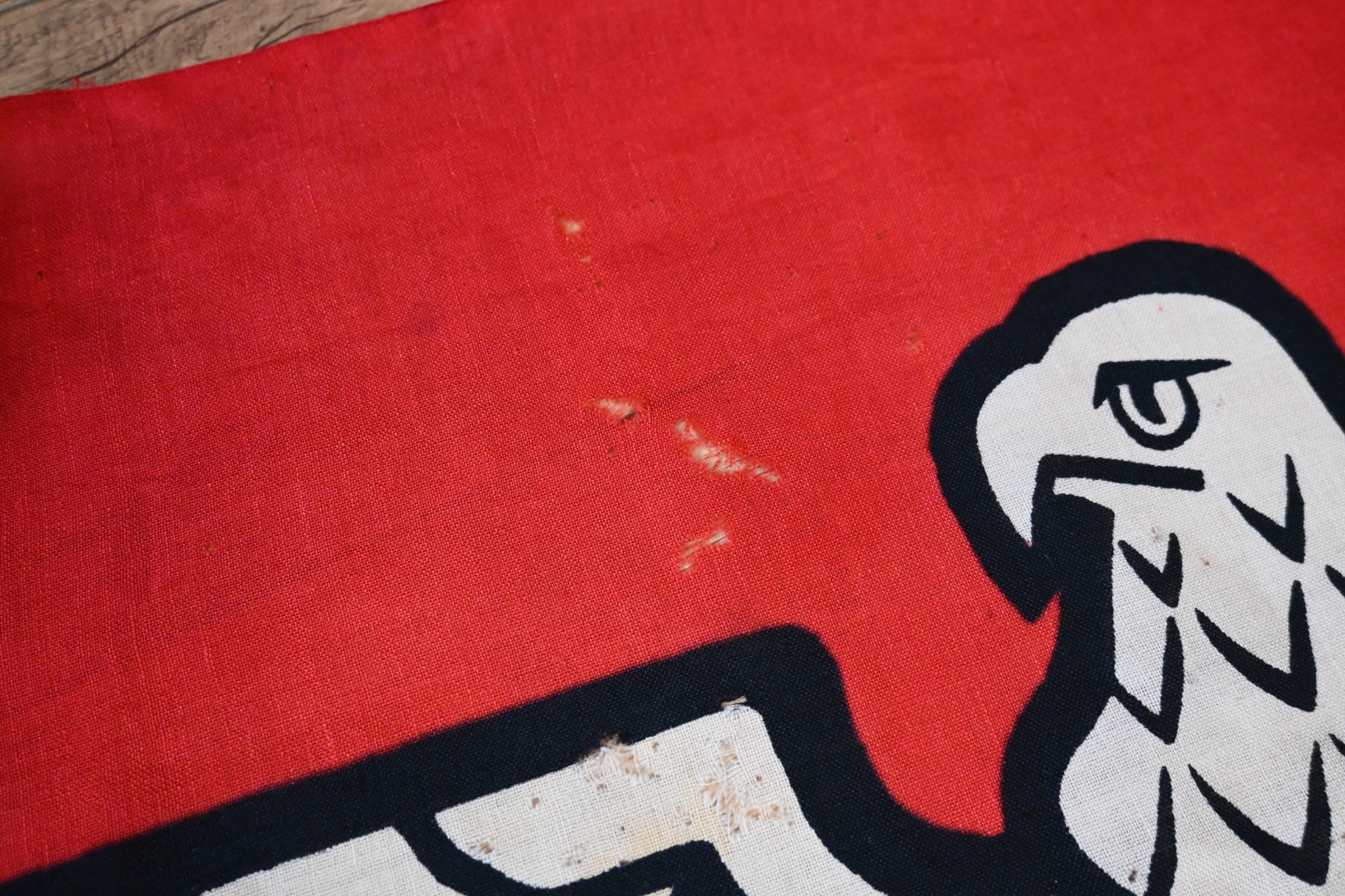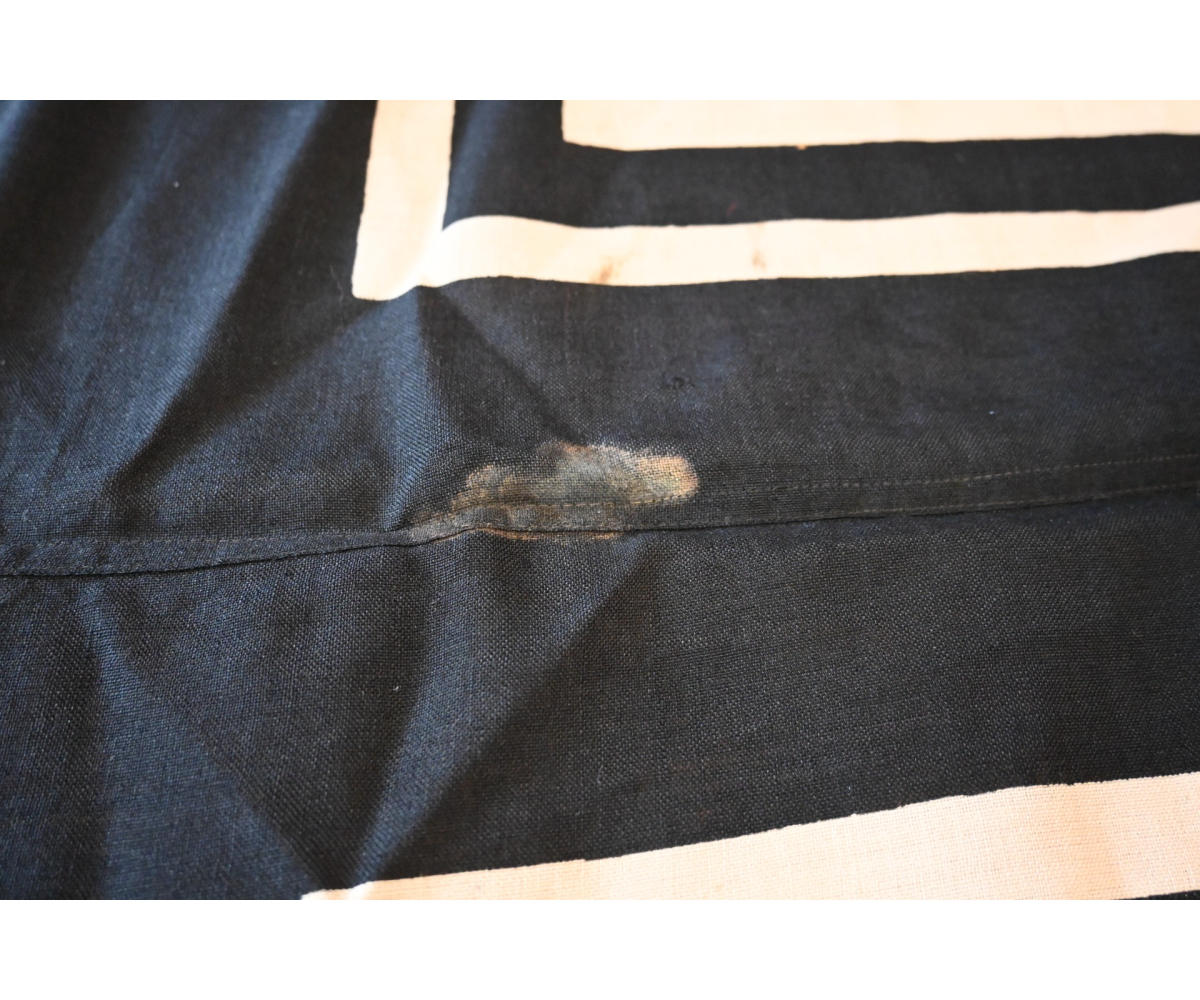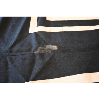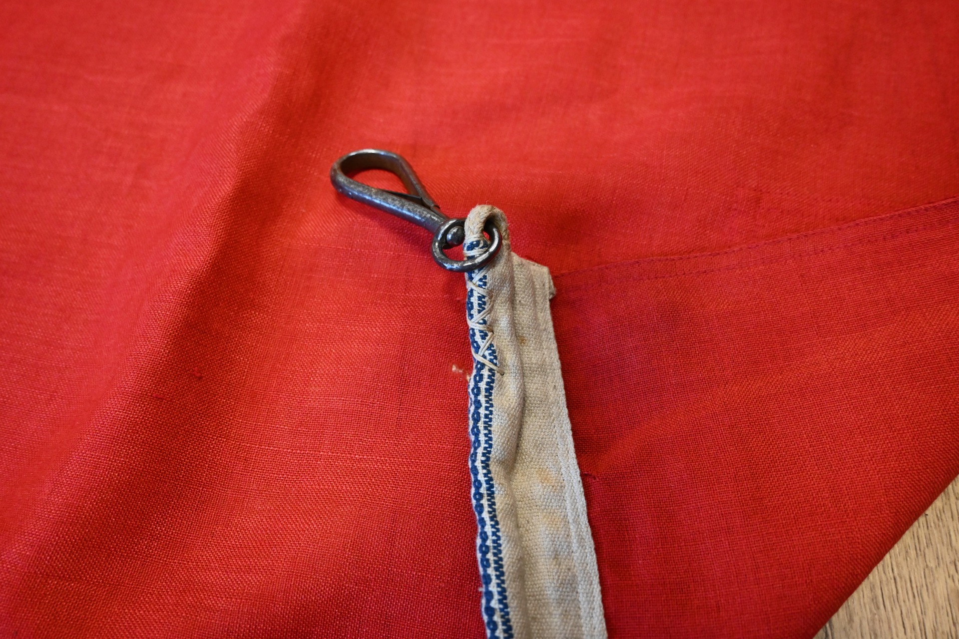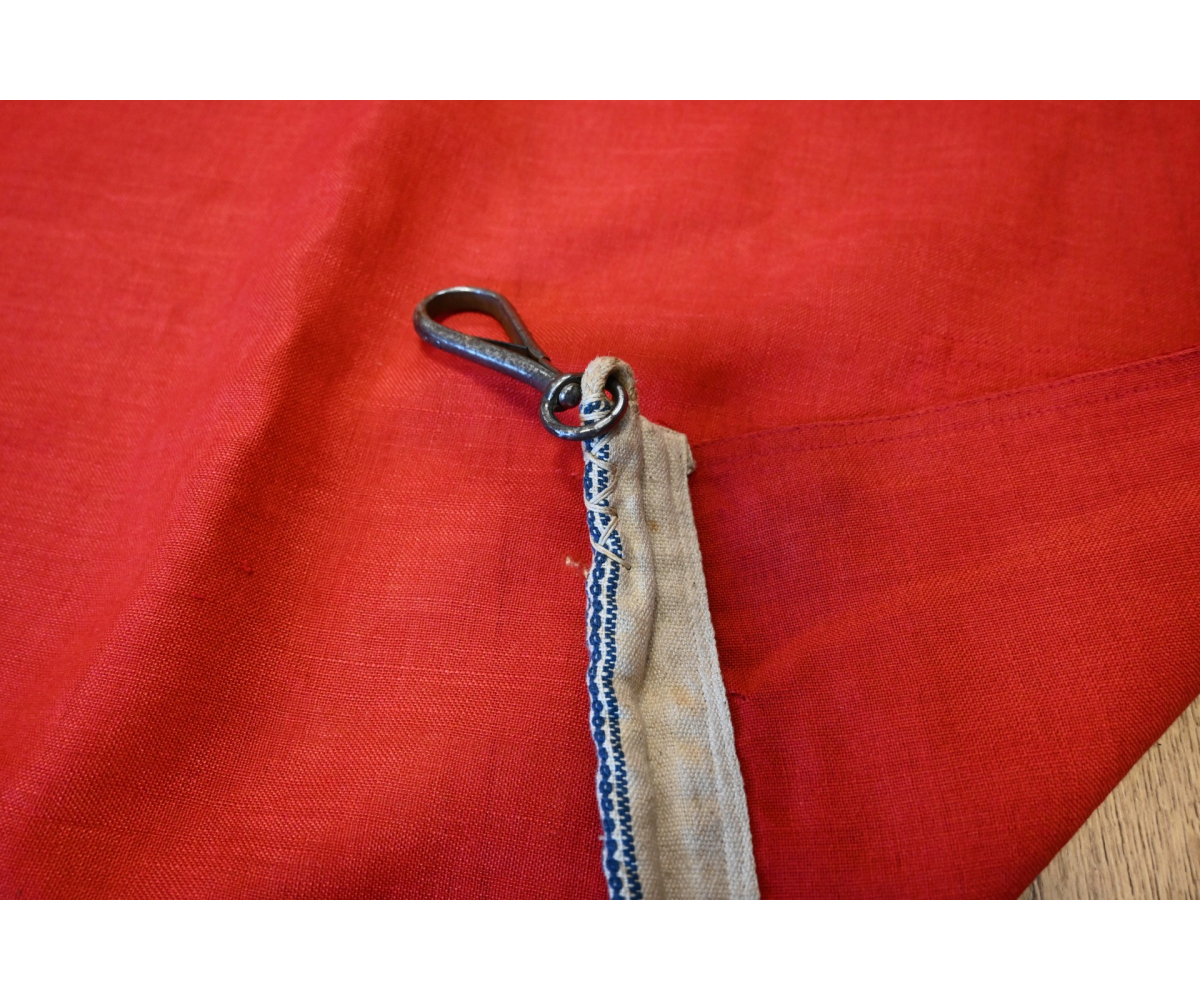 The overall condition is good. It has very nice used patina, only a couple of tiny holes. Its complete with carbine hooks and nicely labeled by the maker: 'Königsberger Segelkickwaren-und flaggenfabrik, J.E.W. Hellgardt A.-G.' from 'Köningsberg i./pr.'