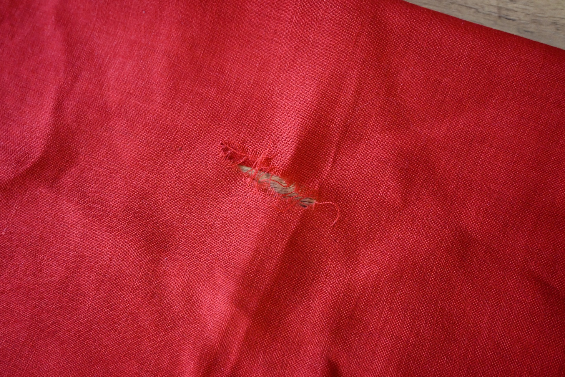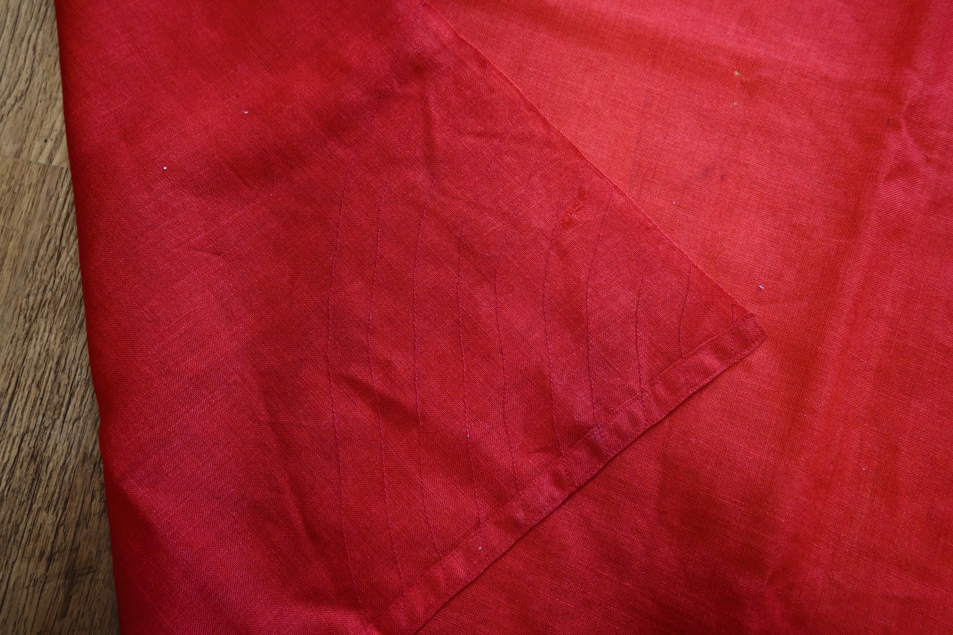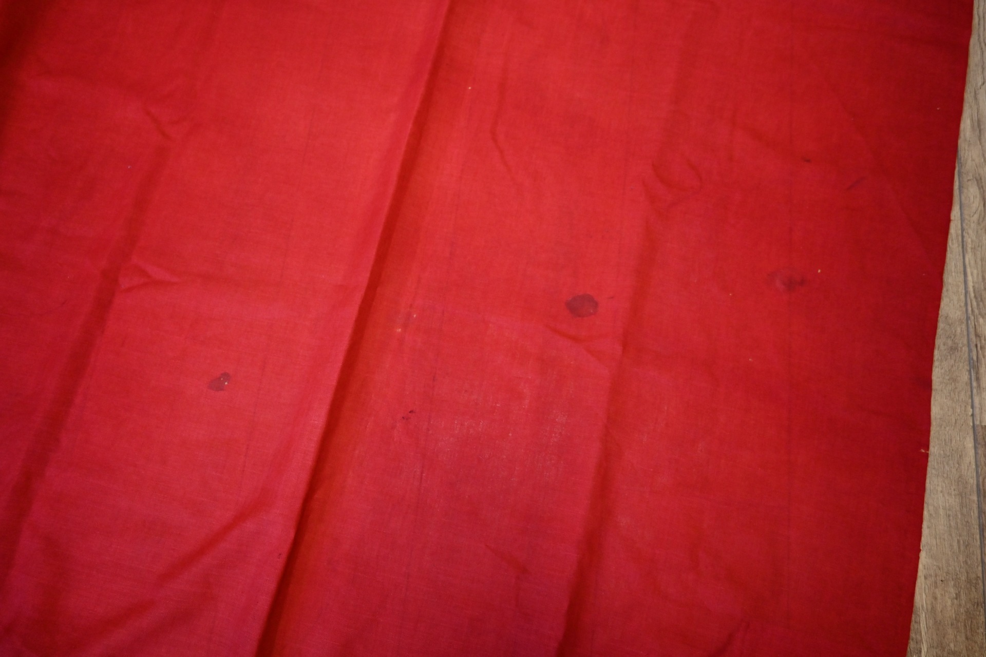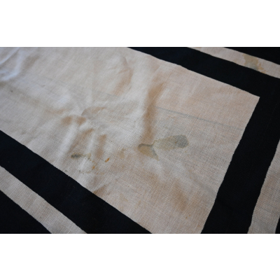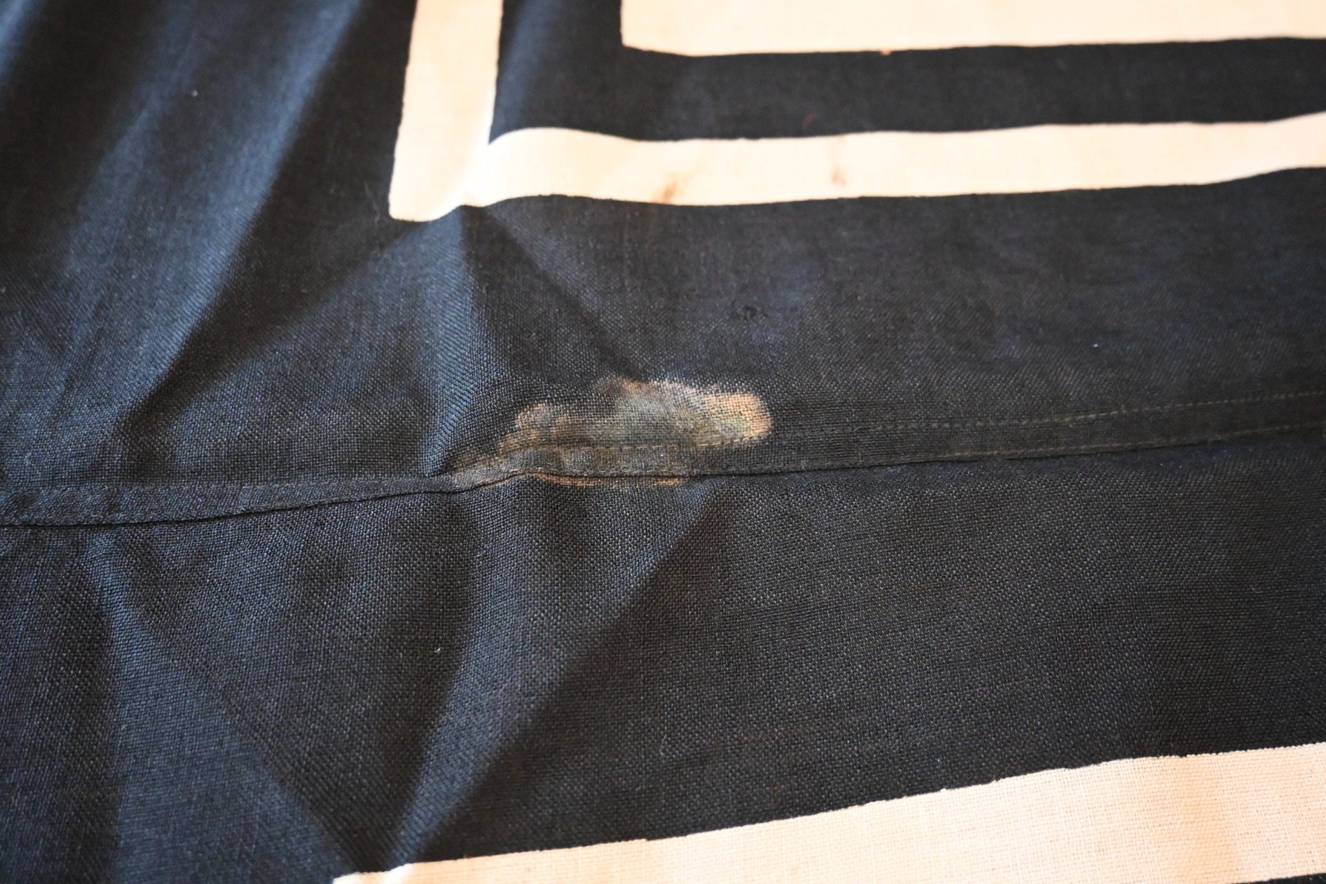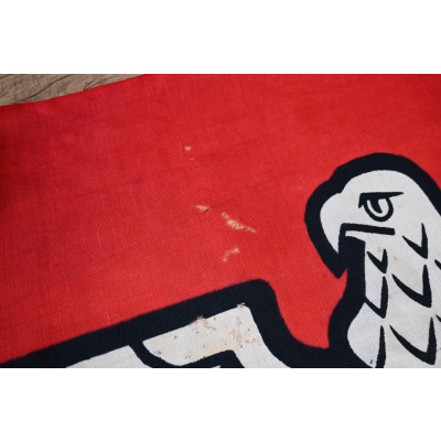 The overall condition is good. It has very nice used patina, only a couple of tiny holes. Its complete with carbine hooks and nicely labeled by the maker: 'Königsberger Segelkickwaren-und flaggenfabrik, J.E.W. Hellgardt A.-G.' from 'Köningsberg i./pr.'