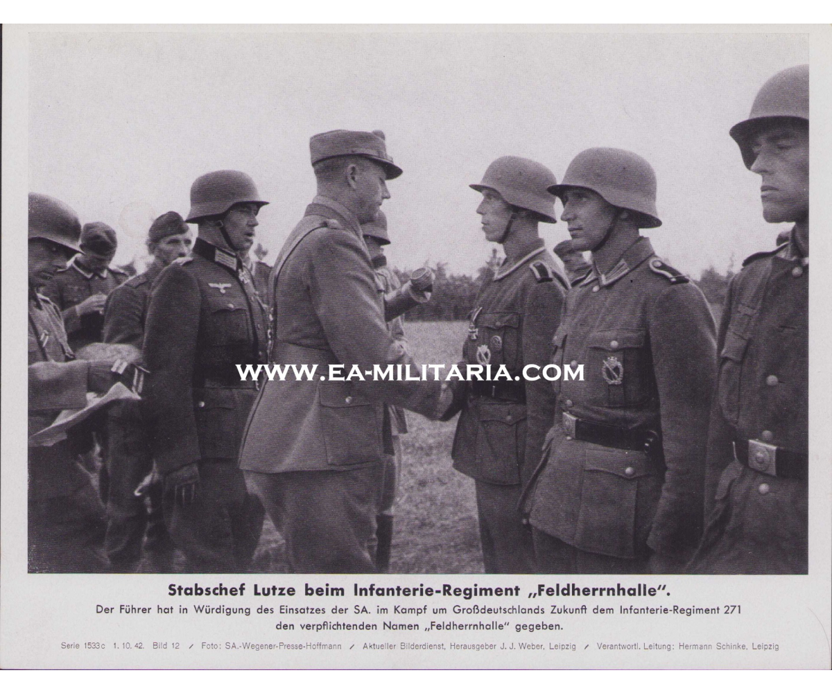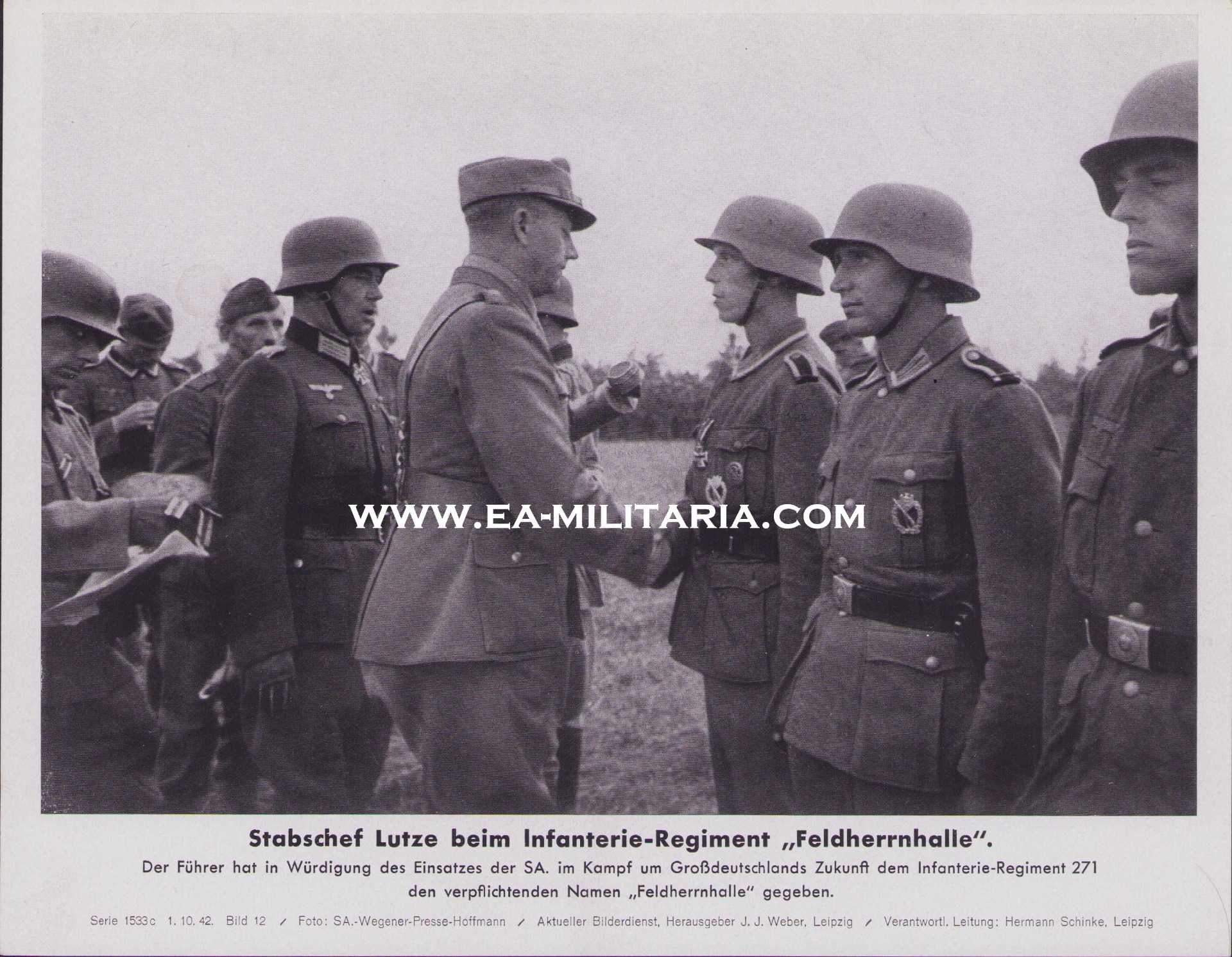 The photo shows overall normal signs of storage wear. Photo is taken in the field during the ceremy where Infanterie Regiment 271 was renamed into Infanterie Regiment Feldhernnhalle by Stabschef Lutze.