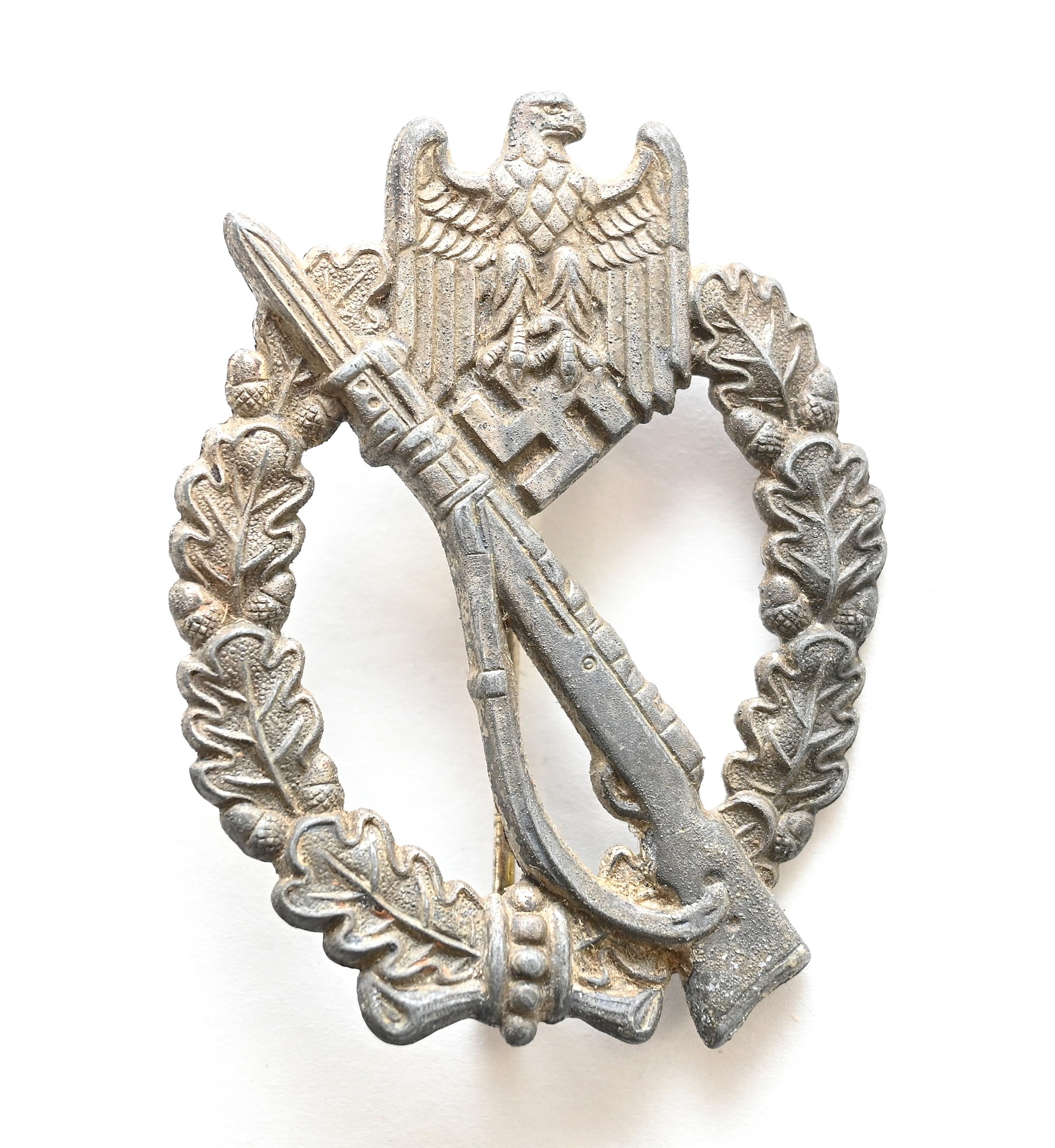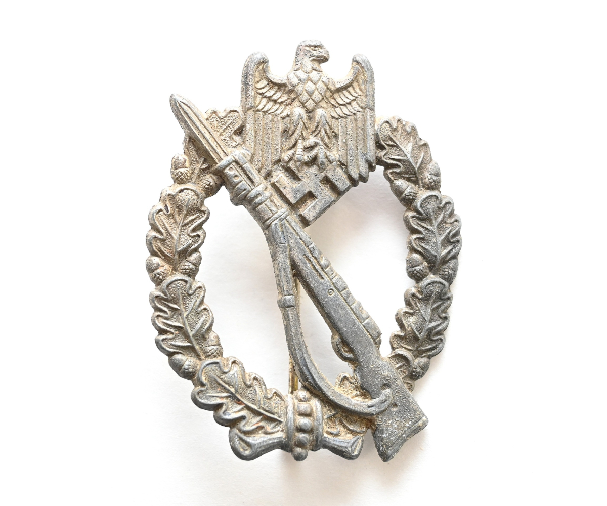 Nice Wehrmacht issued Infanterie Sturmabzeichen in silver in used, but good condition.