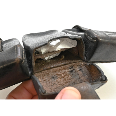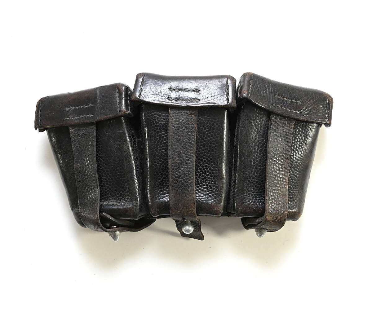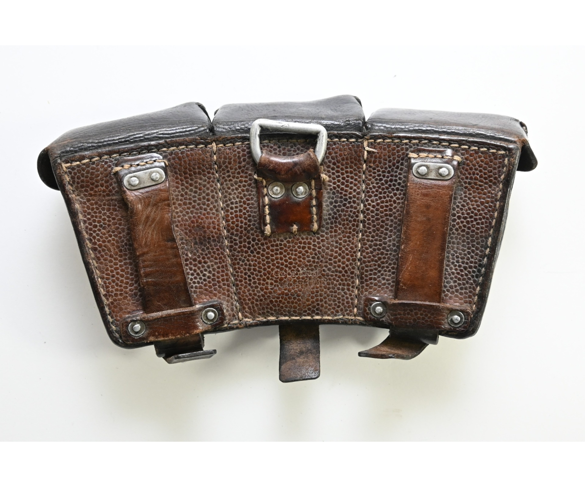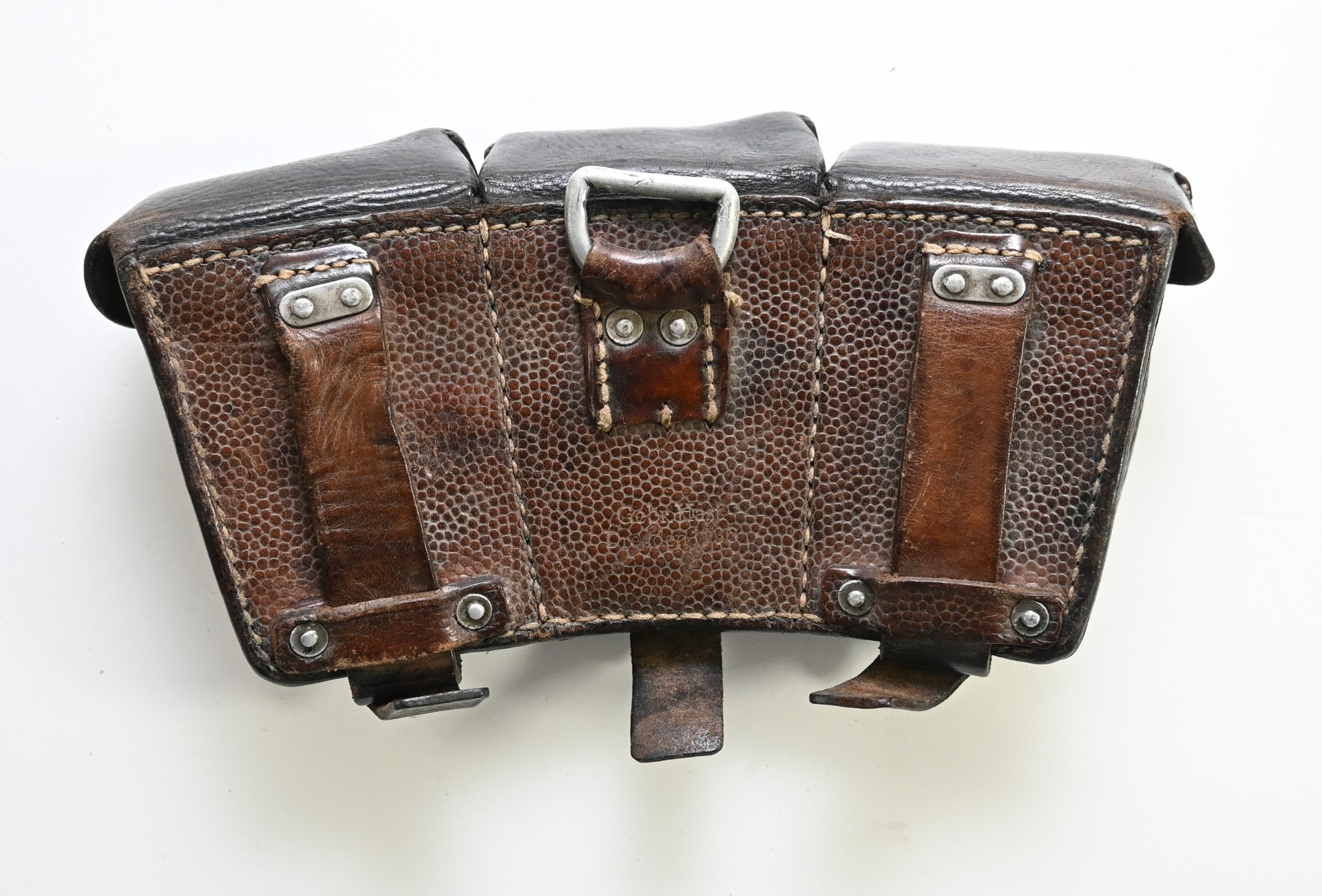 The pouch shows overall normal signs of wear. The leather is supple and solid. All the partitions in each compartment are present. Marked on the back by the maker 'Gebr.Hast' from Dresden and dated 1936.