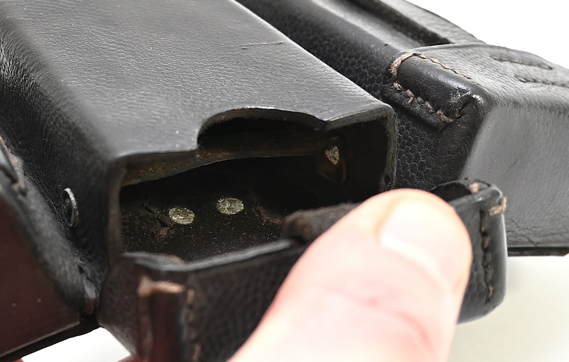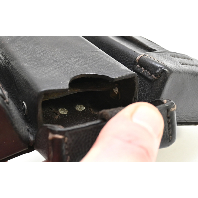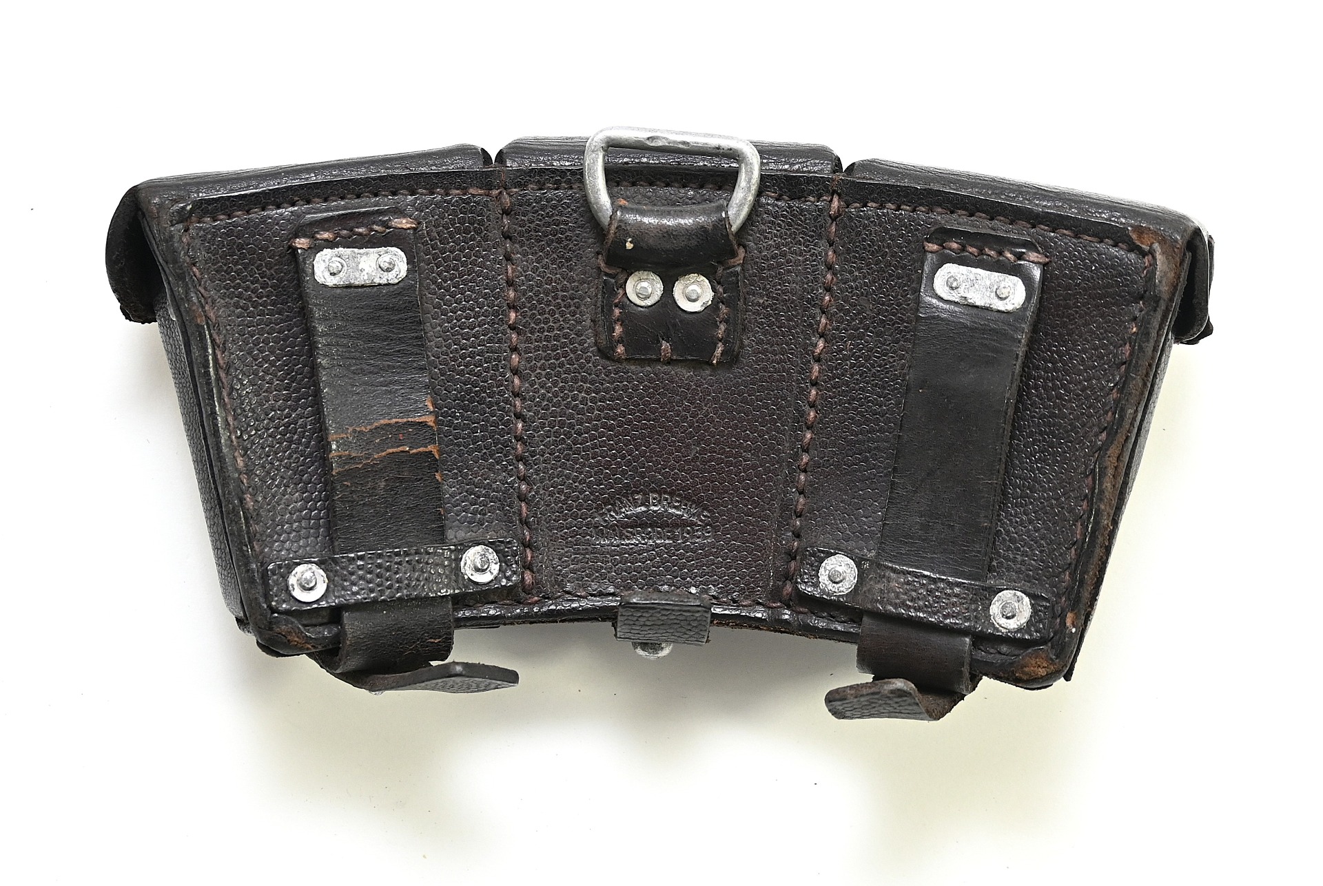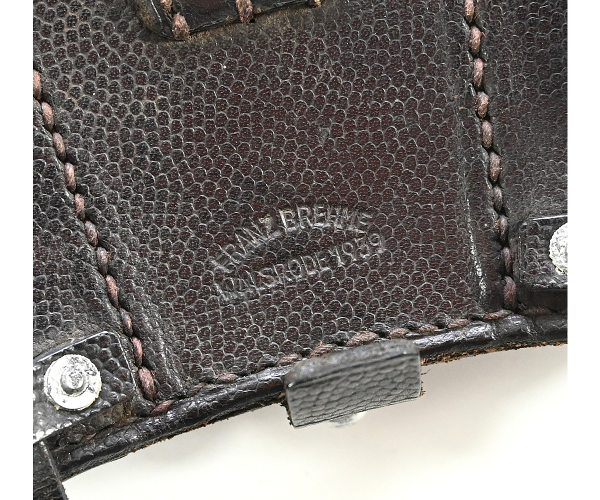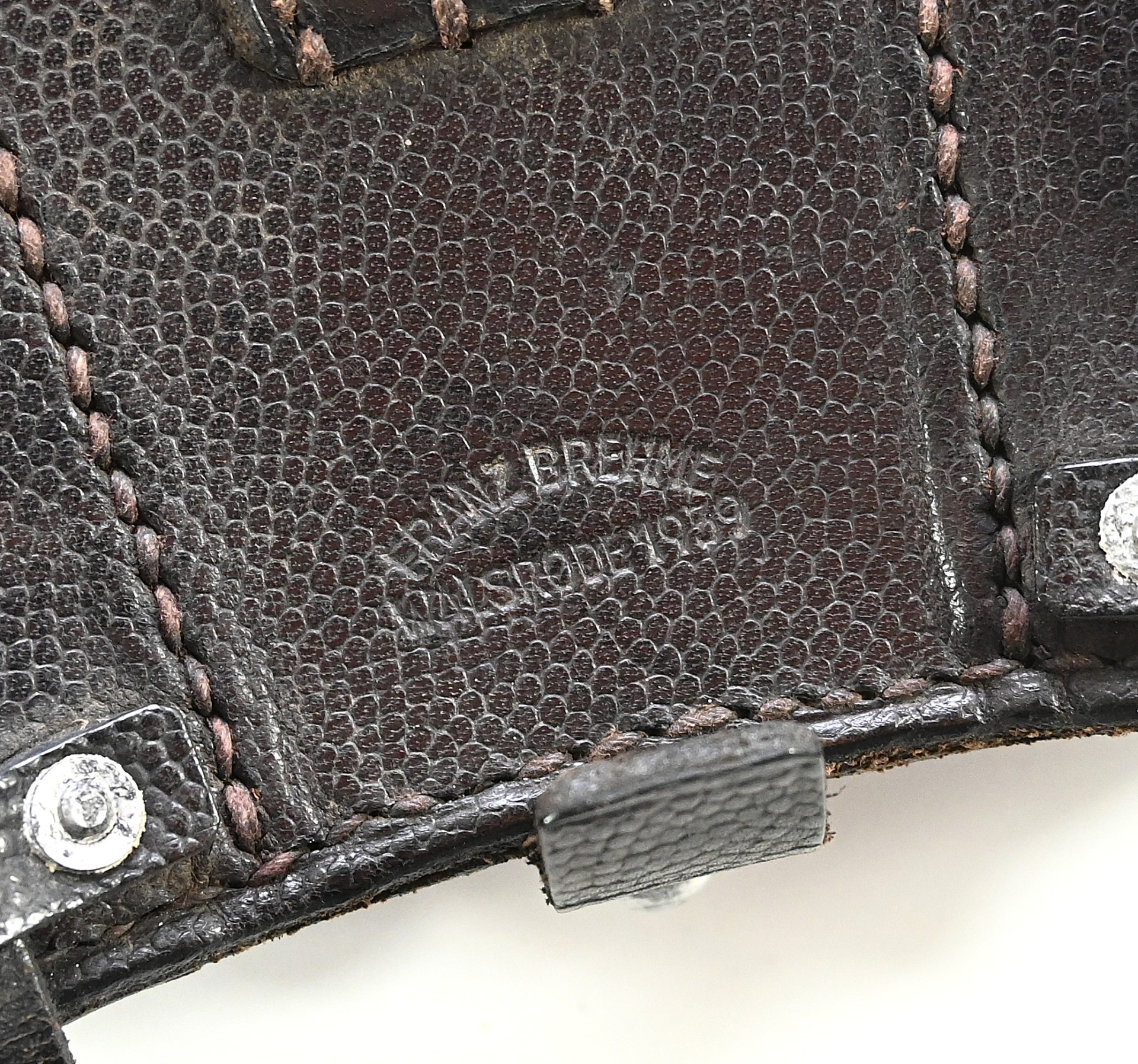 The pouch shows overall normal signs of wear. The leather is supple and solid. All the partitions in each compartment are present. Marked on the back by the maker 'Franz Brehme' from Walsrode and dated 1939.