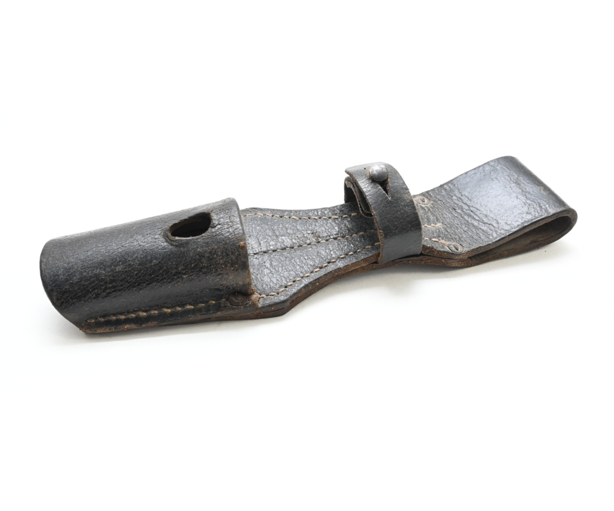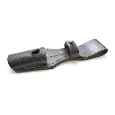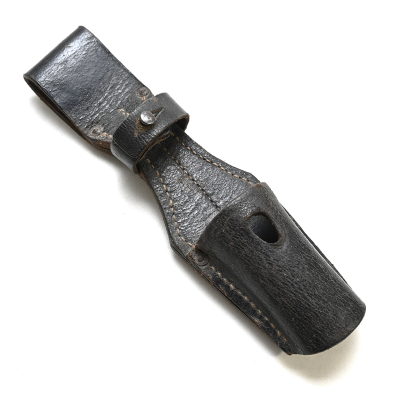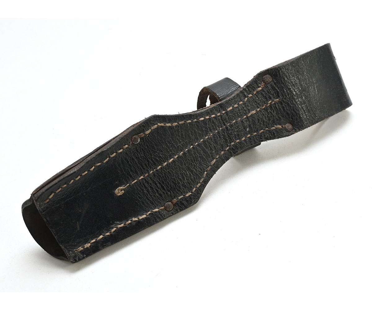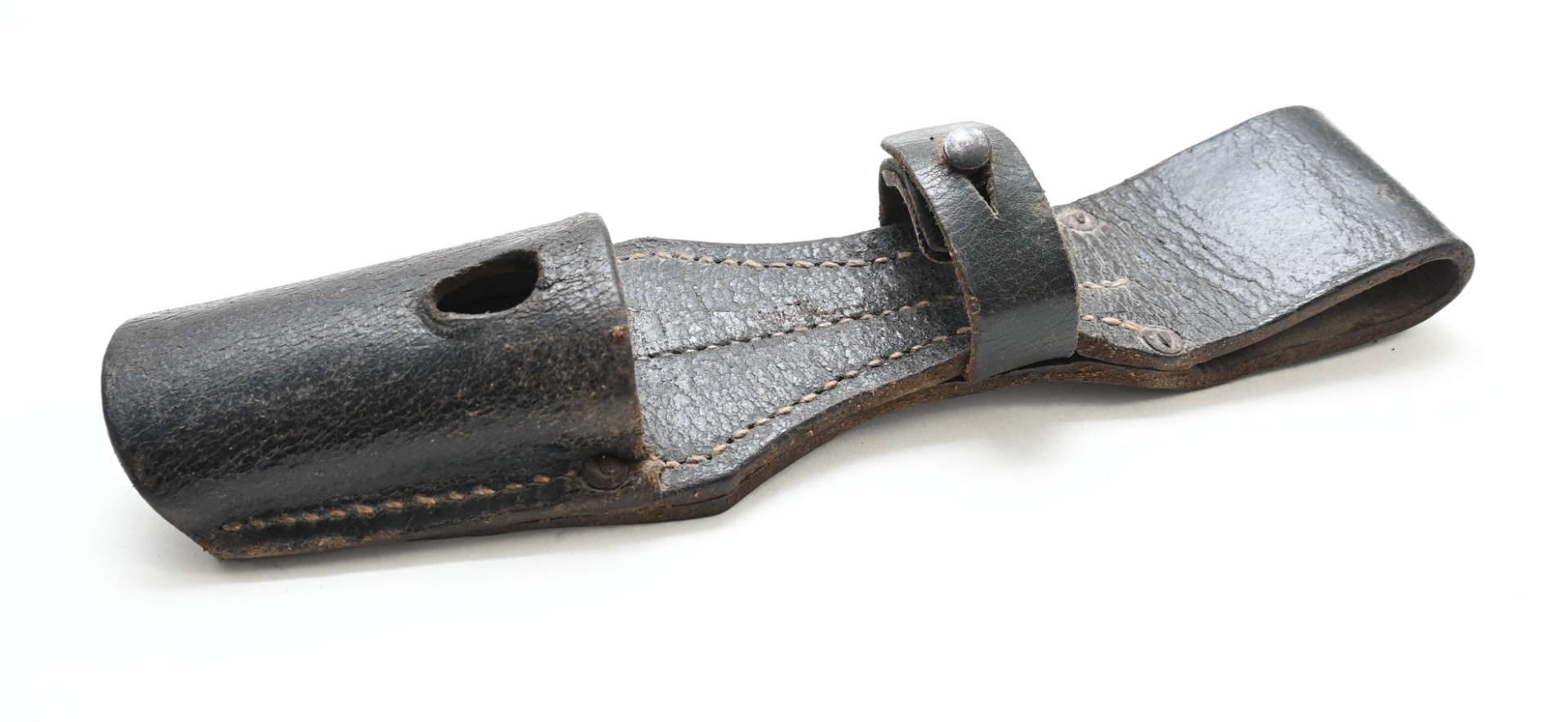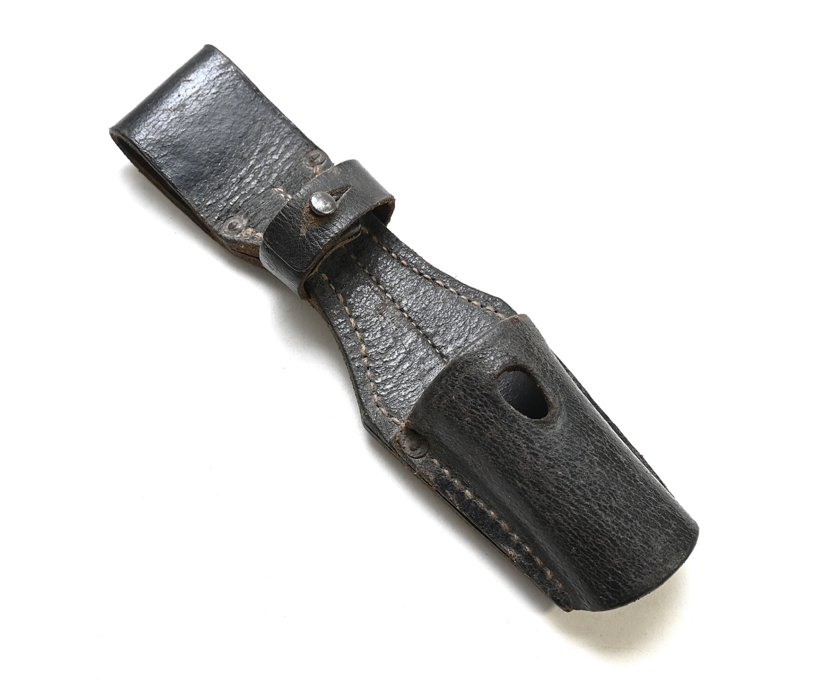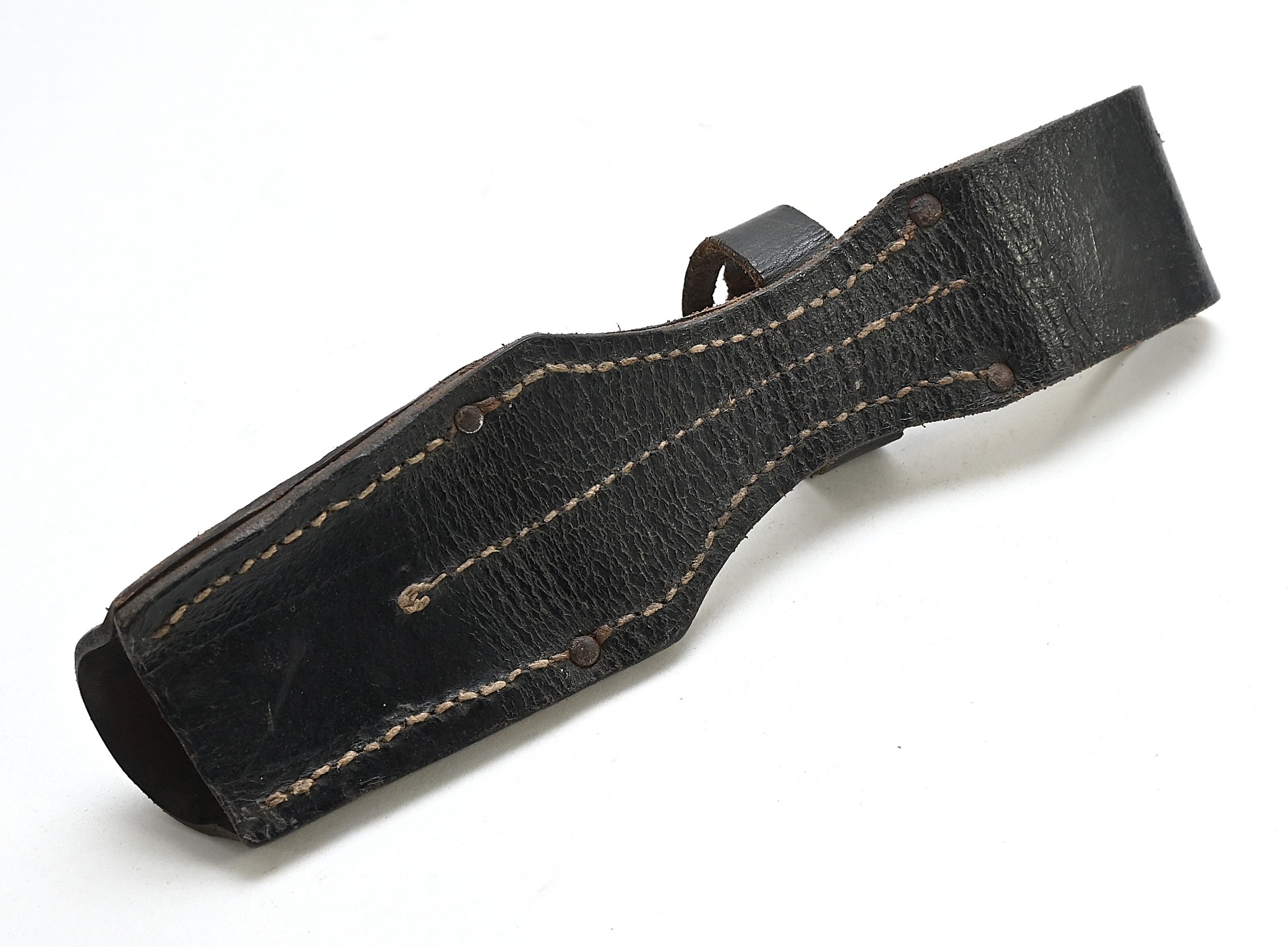 The frog shows overall normal signs of use. Its complete with retaining strap and the leather is supple and solid. It's marked with a RBNr. on the back.