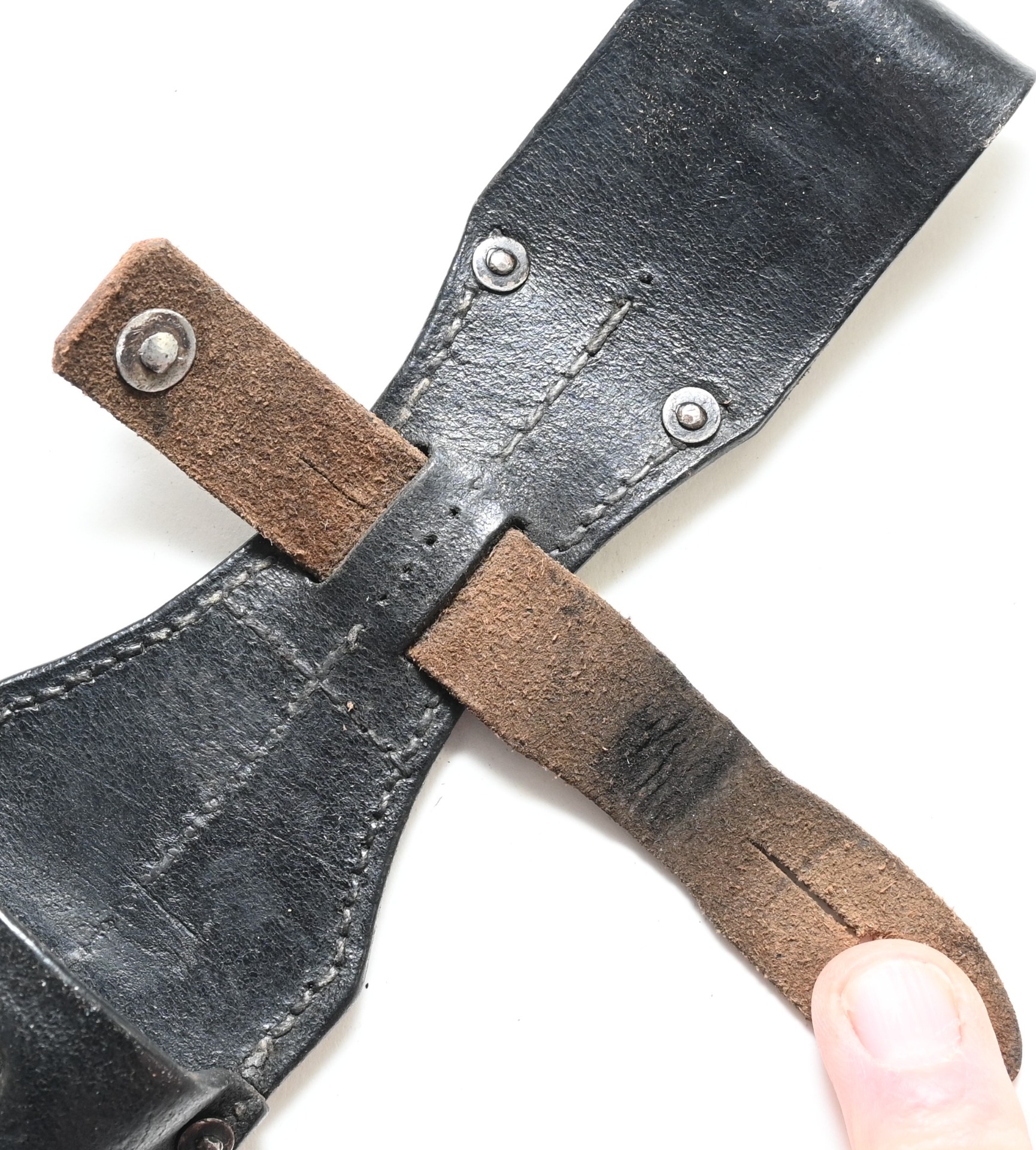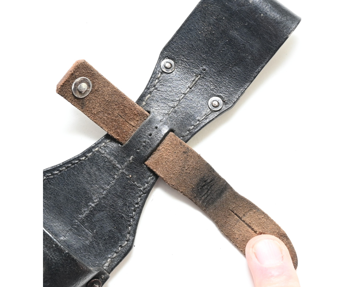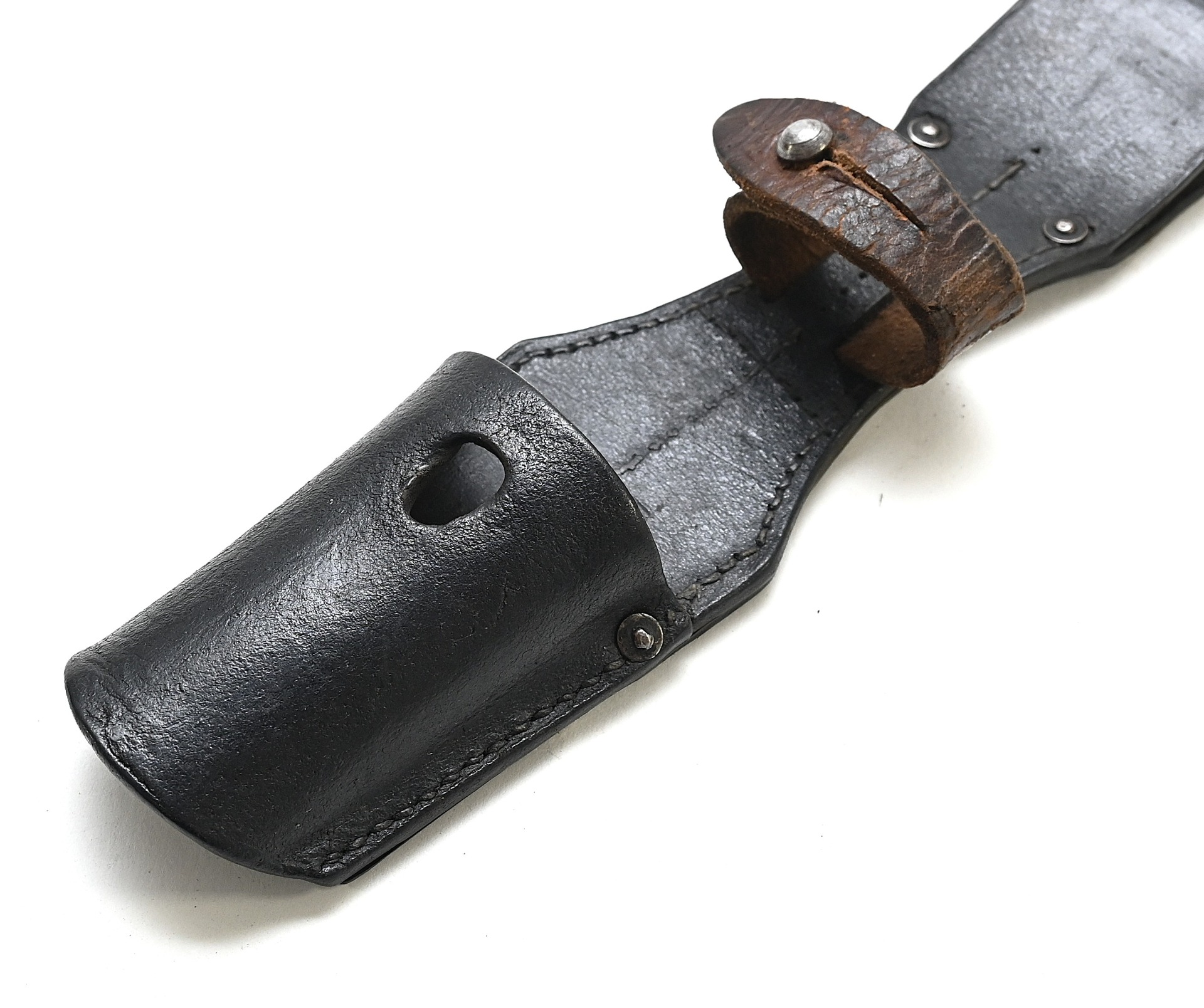 Very nice black leather k98 bayonet frog or 'Seitengewehrtasche' in used, but good condition.