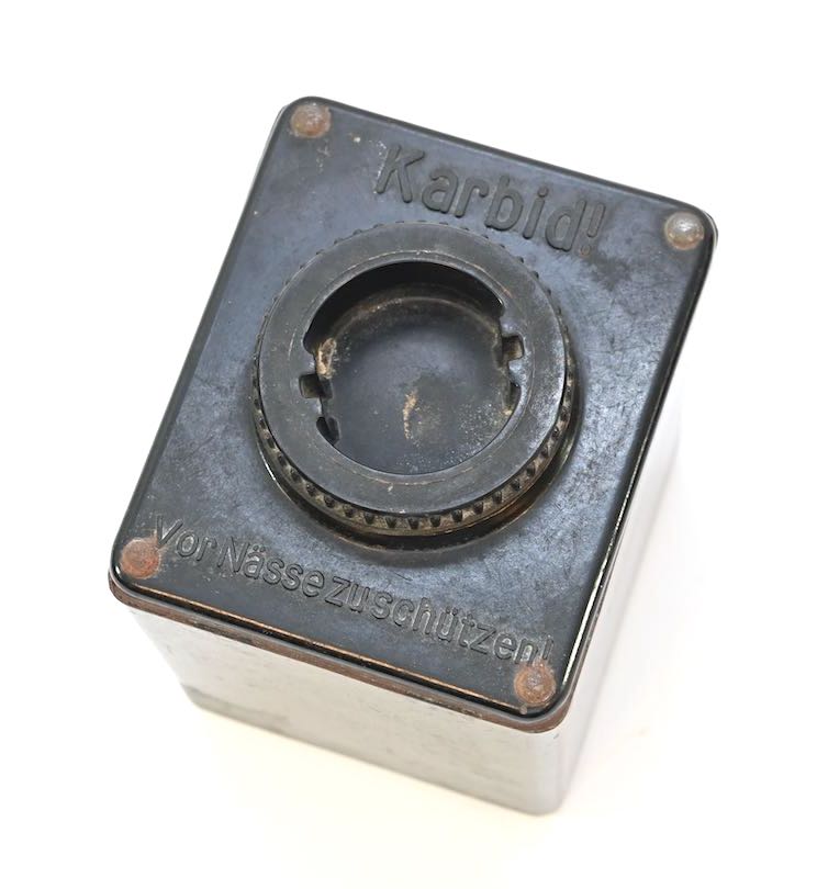 Very nice bakelite carbid container for the Wehrmacht issued lantern in excellent condition.
