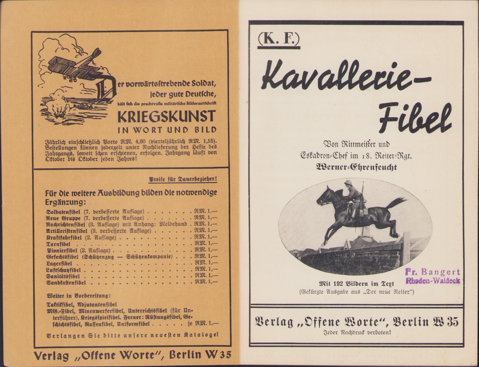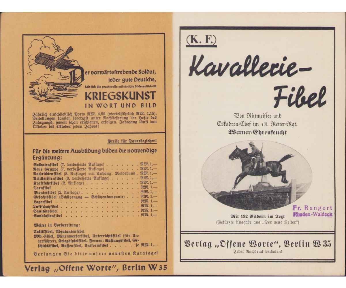 Very nice and harder to find Kavallerie instruction booklet in used, but very good condition.