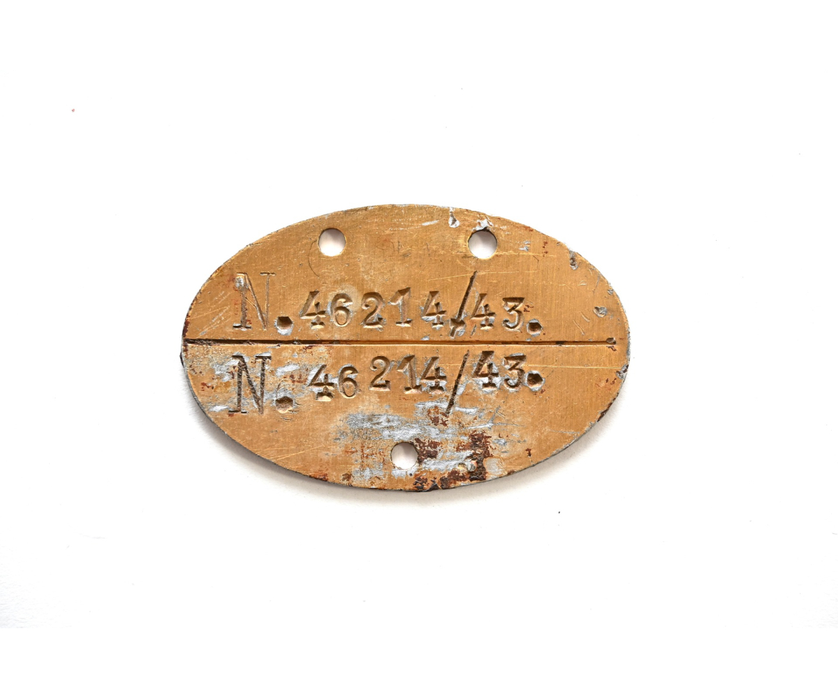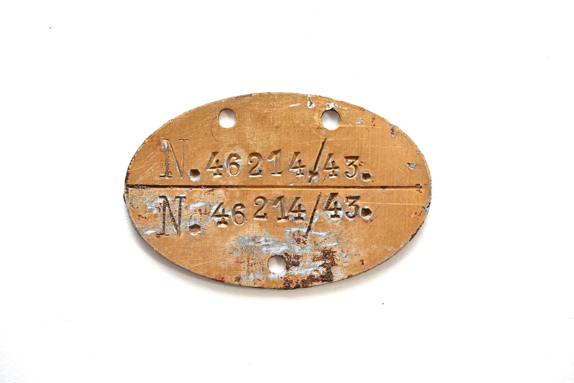 The tag or 'Erkennungsmarke' shows overall signs of wear. It belonged to a soldier/sailor who was drafted in the 1943 at Marinestation Nordsee, hence the 'N'.
