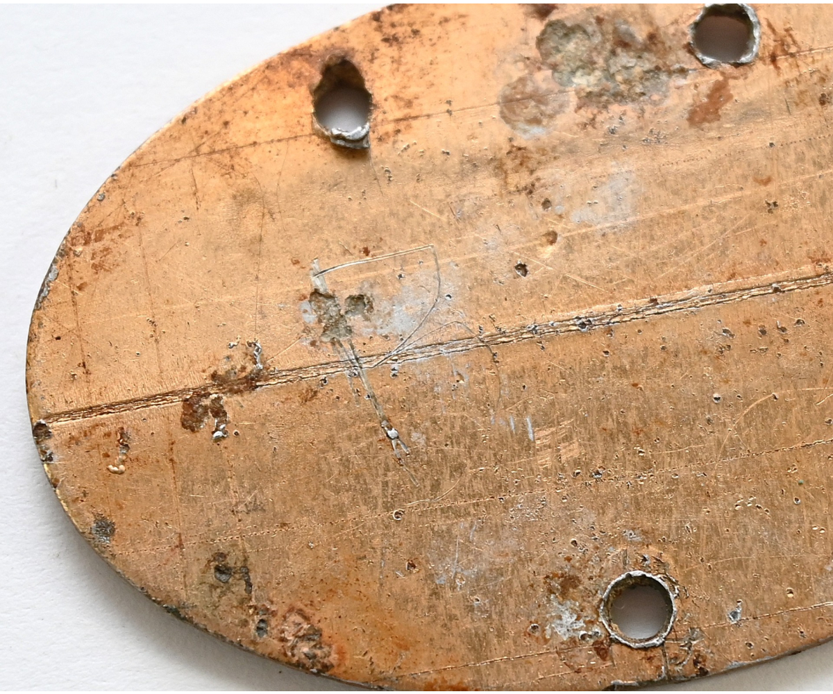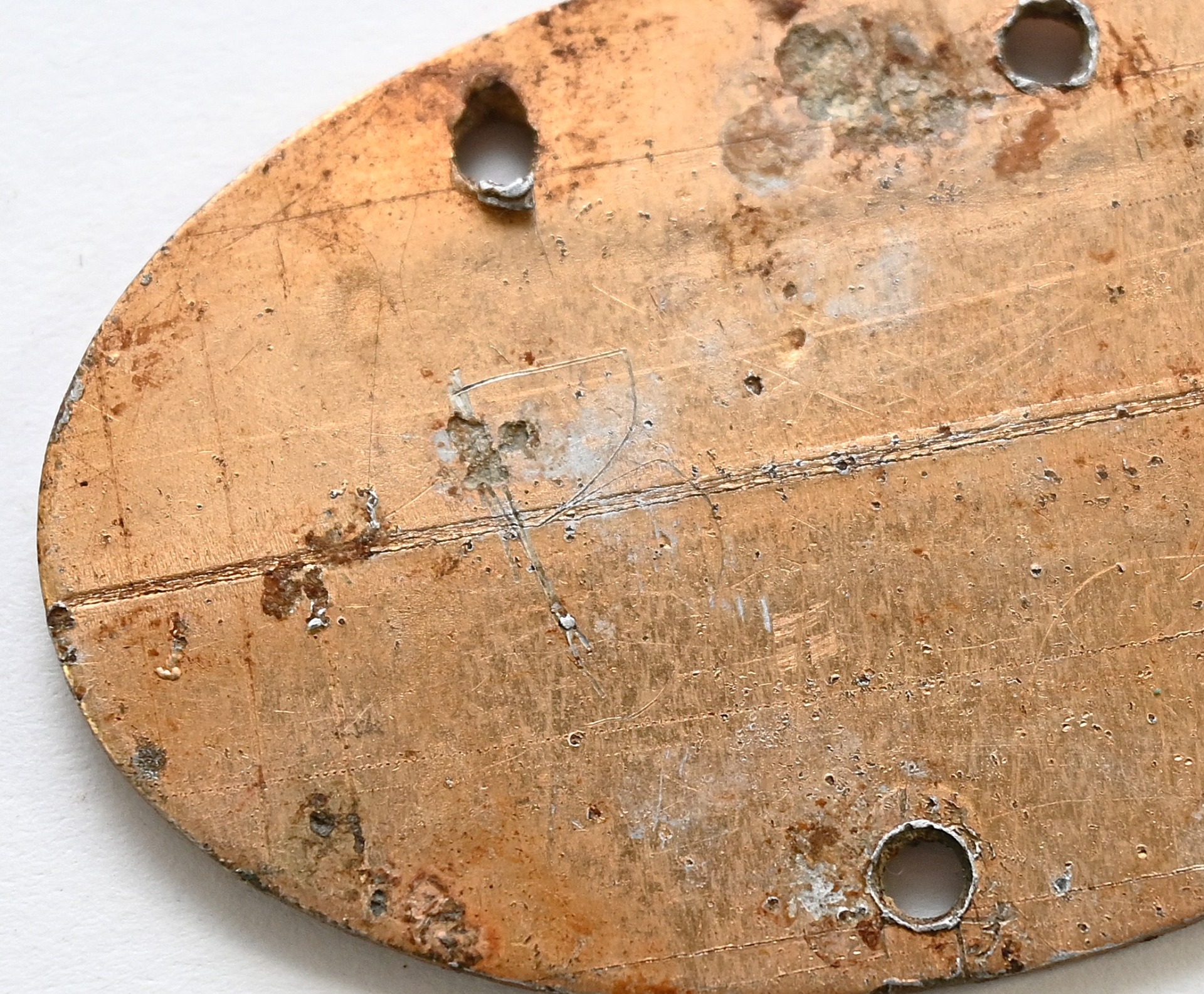 On the back the soldier carved in the 'B' which stands for his bloodtype.
