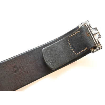 The overall condition of the belt is used but good. Shows normal signs of wear. The leather is supple. Its maker marked or 'RBNr.' marked, but to hard to read. Its also marked with a Kriegsmarine acceptance stamp and has a '102'(cm) size marking.
