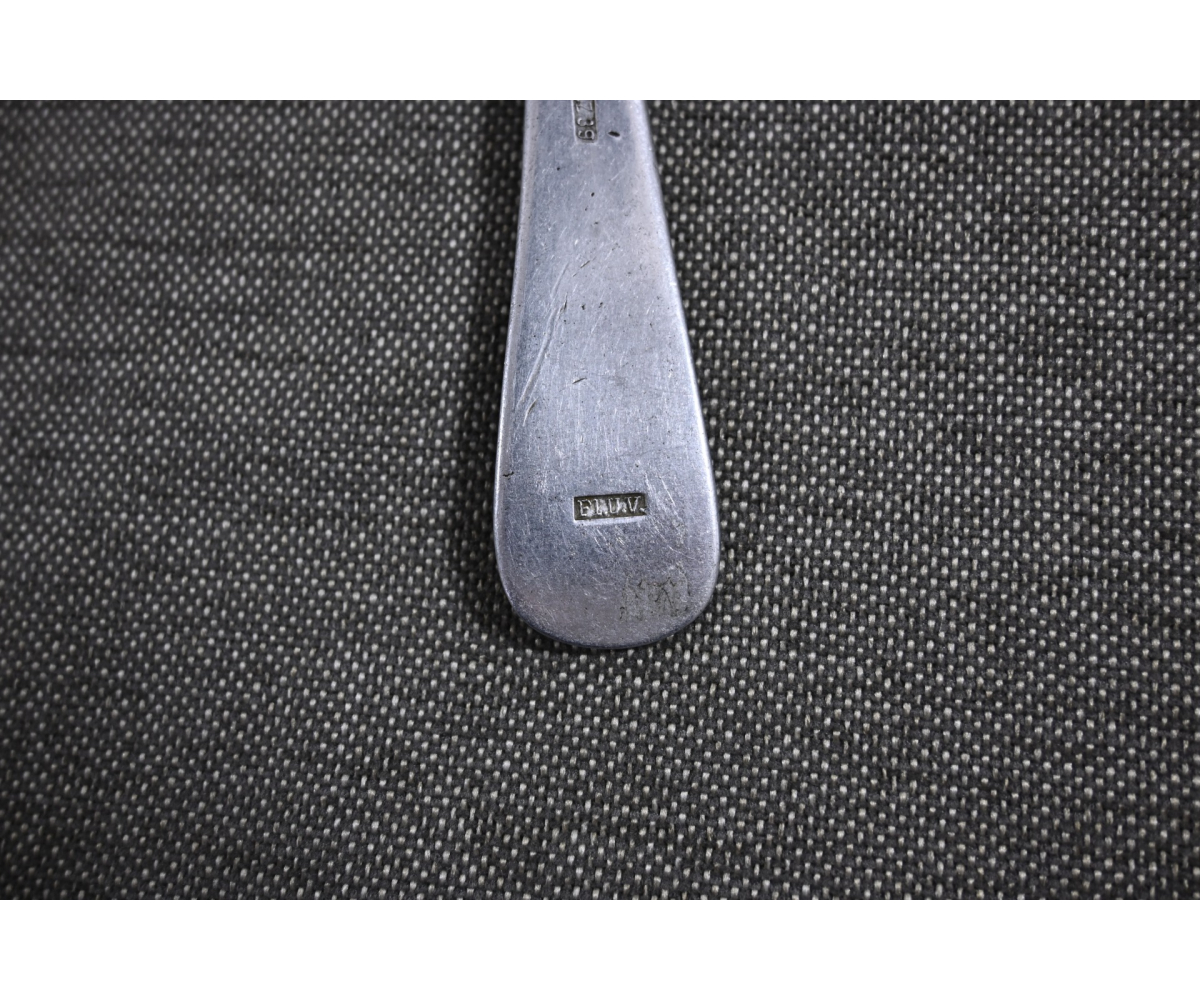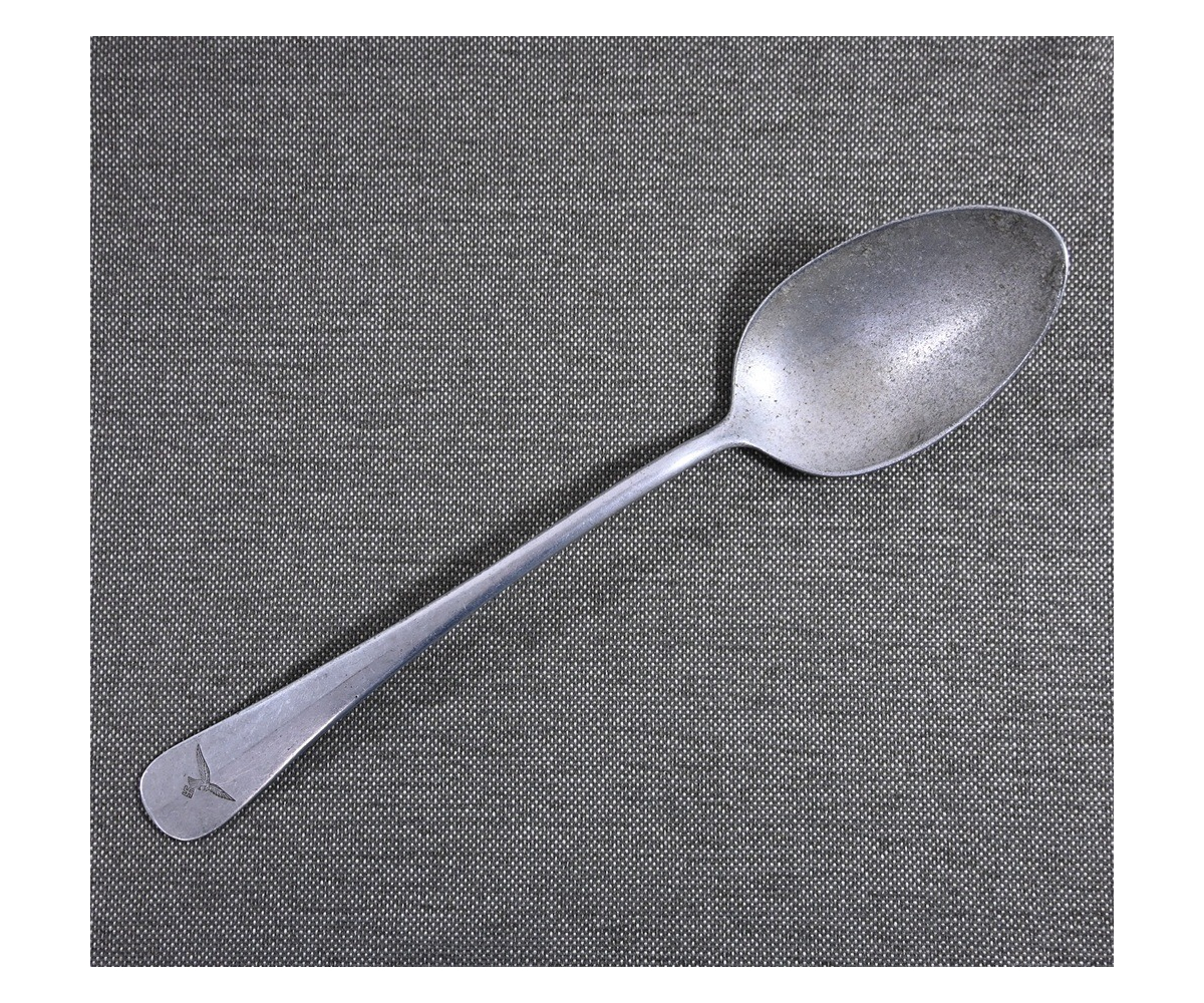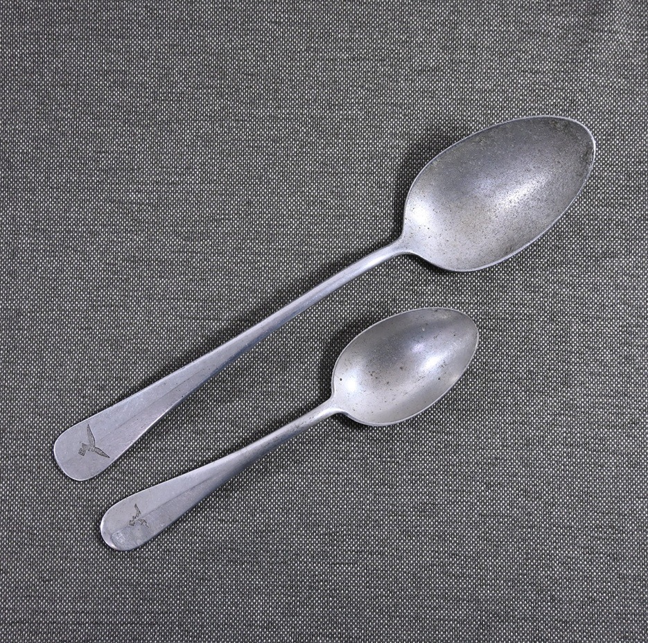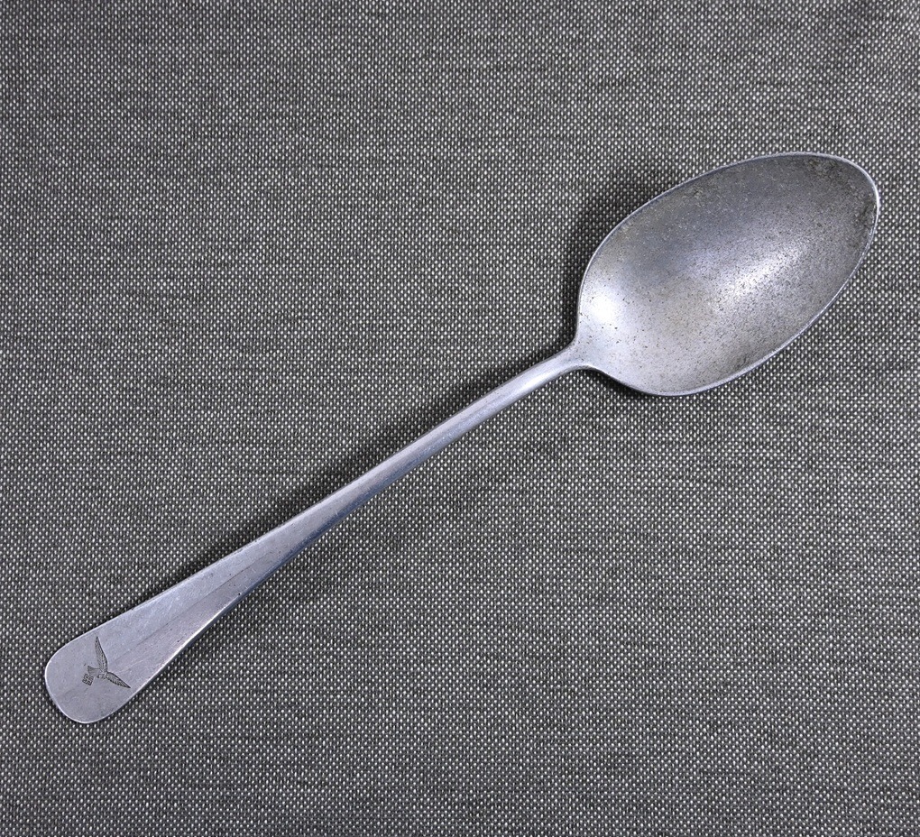 The spoon shows overall normal signs of wear. The handle is maker marked 'H.M.Z.', dated '1939' and marked 'F.L.U.V.'. The front of the handle is marked with the Luftwaffe eagle. Total length 30cms.