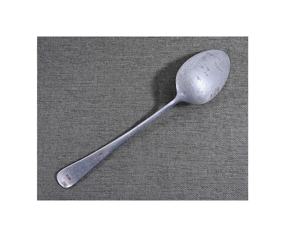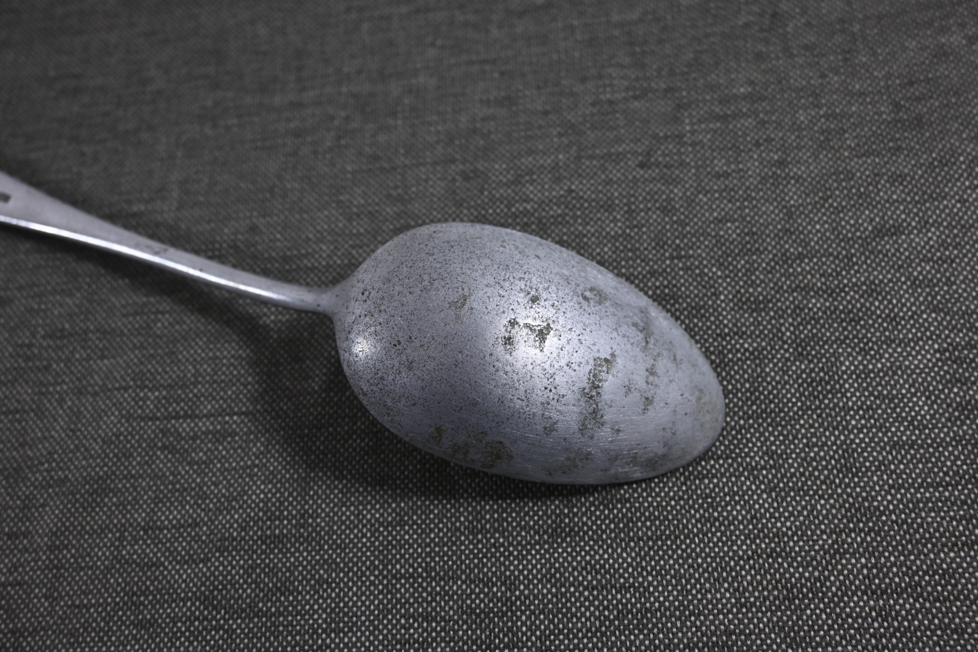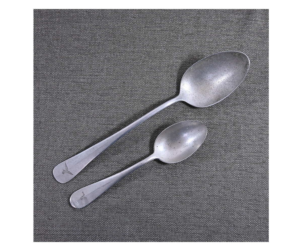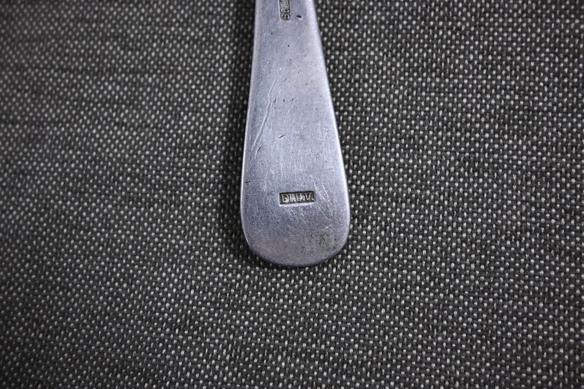 The spoon shows overall normal signs of wear. The handle is maker marked 'H.M.Z.', dated '1939' and marked 'F.L.U.V.'. The front of the handle is marked with the Luftwaffe eagle. Total length 30cms.