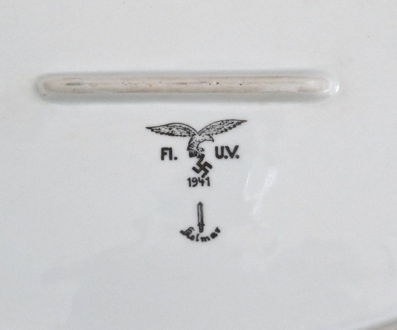 The platter shows overall normal signs of user scratches. The size is approx 42,5cms x 27,5cms. It's nicely maker marked by 'Kolmar', marked with the Luftwaffe eagle and dated '1941'.