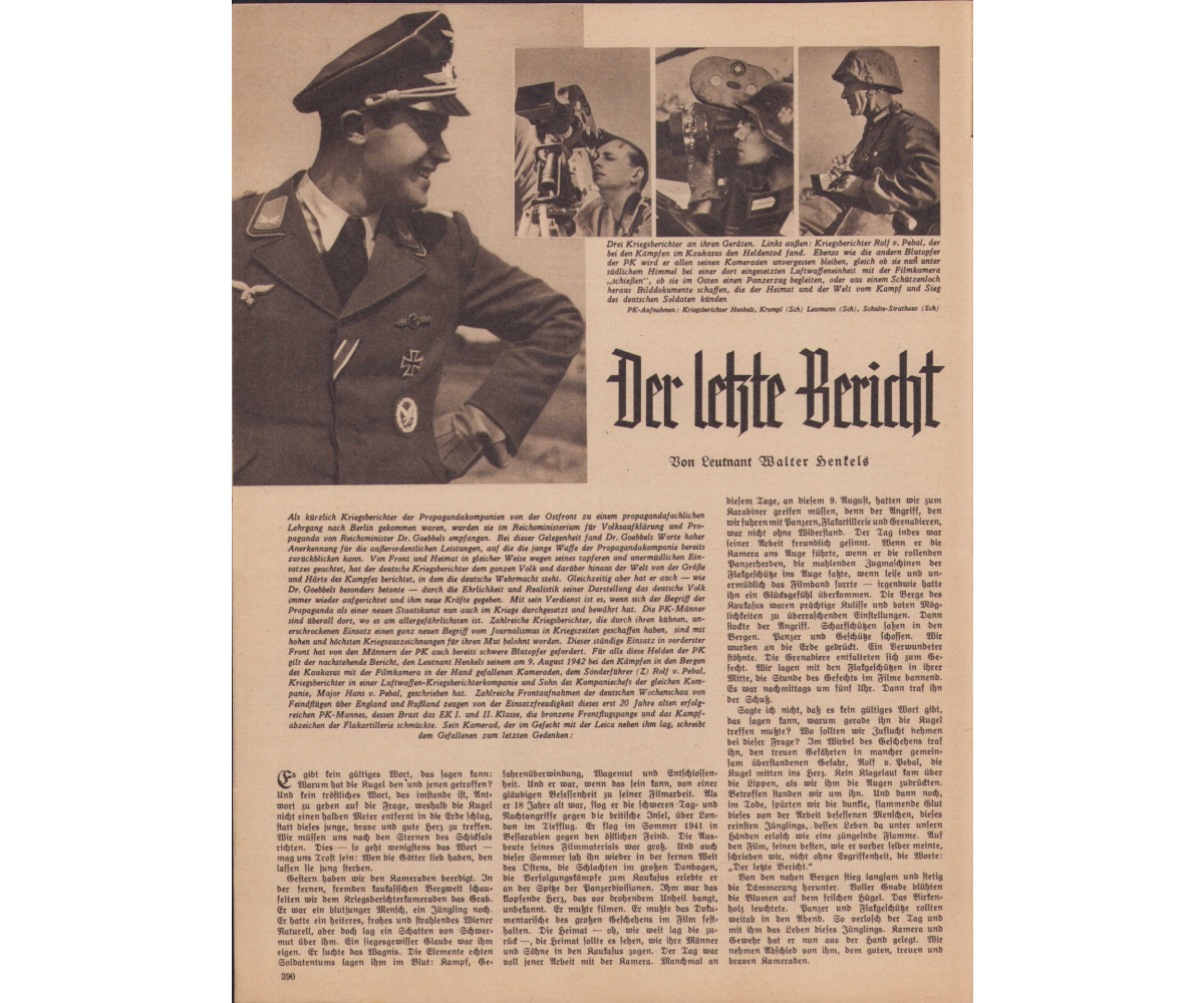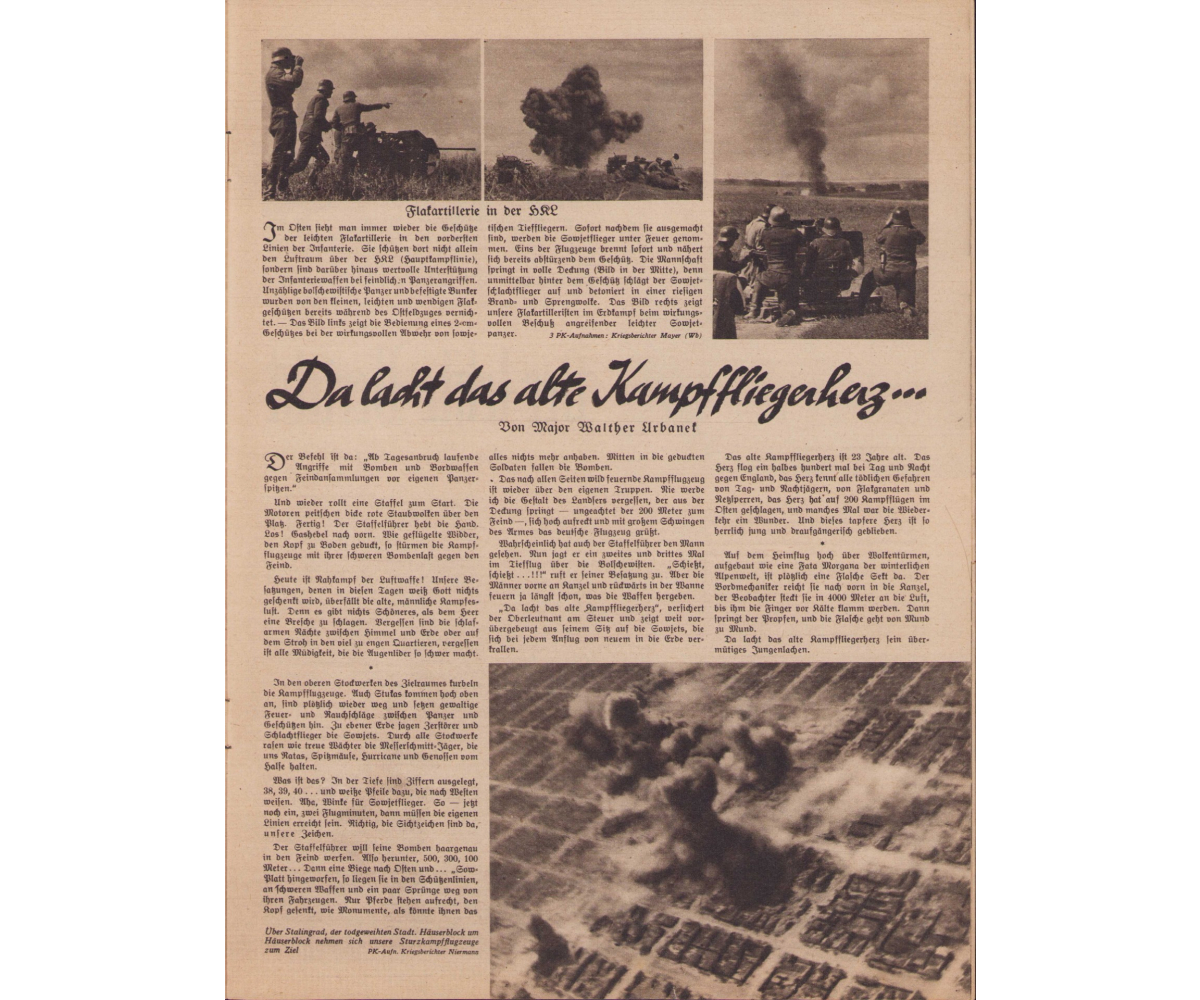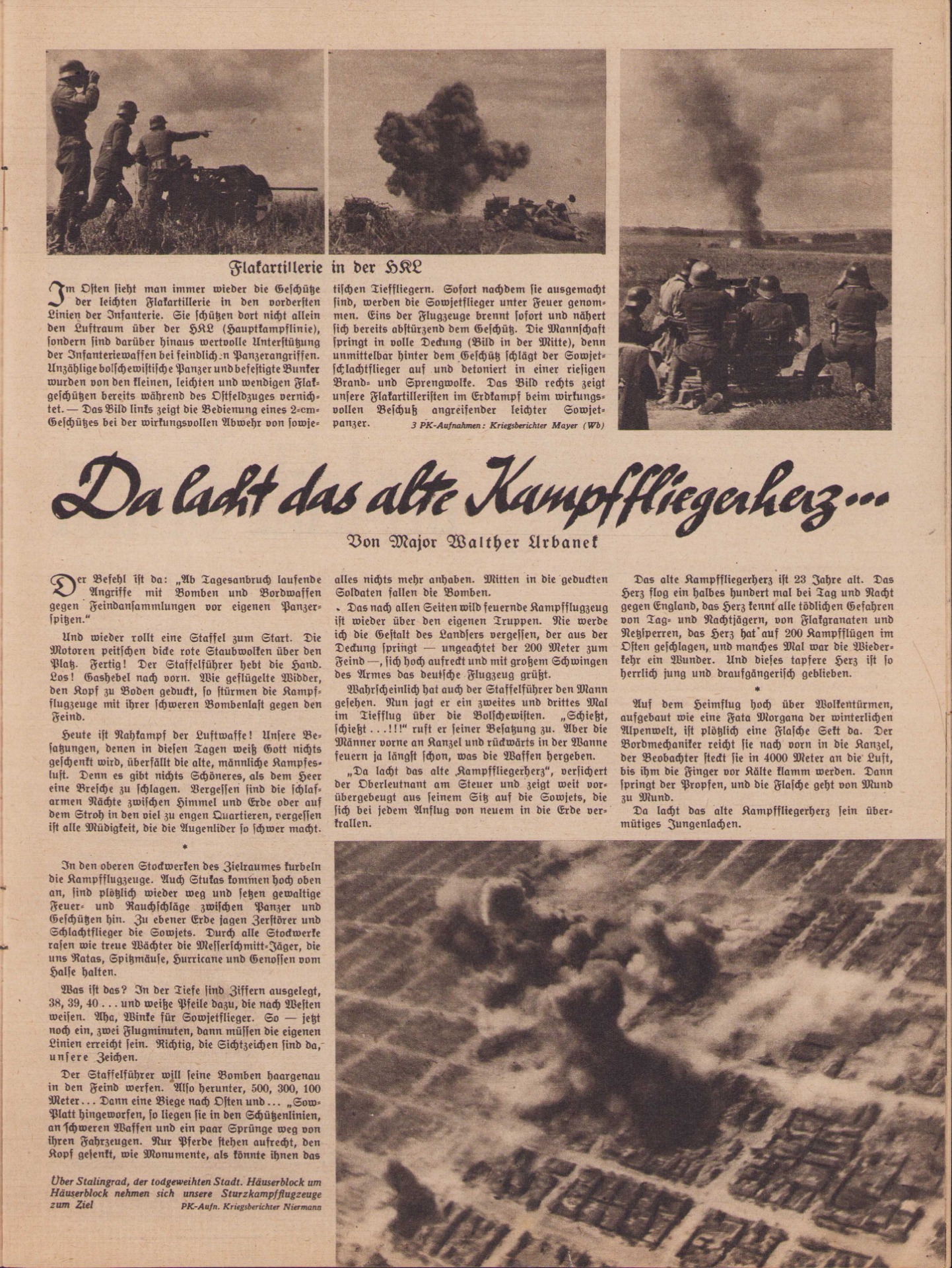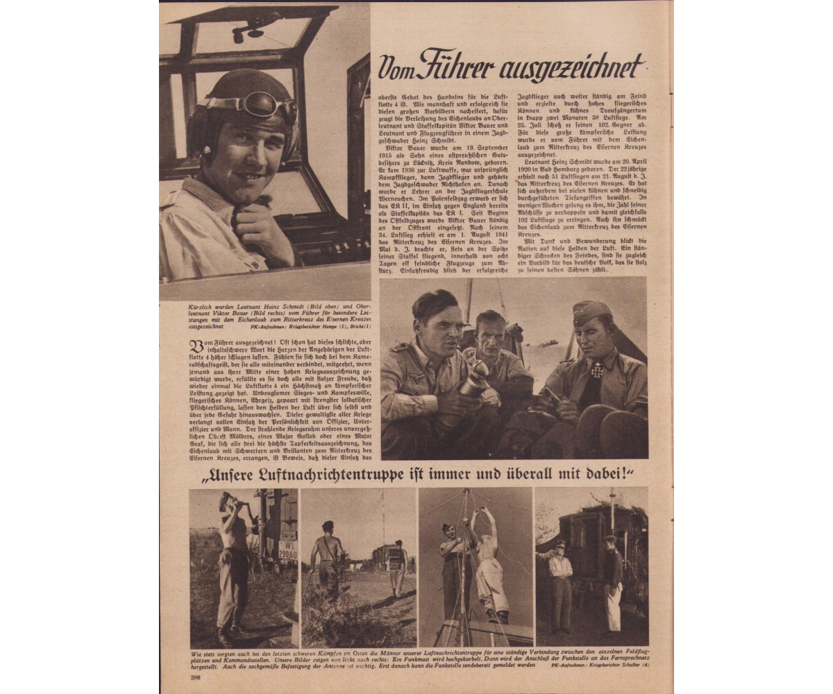 The magazine shows overall normal signs of wear. It's solid and all pages are present (not every page has been scanned by us). This is Heft 21 from 20 Oktober 1942.
