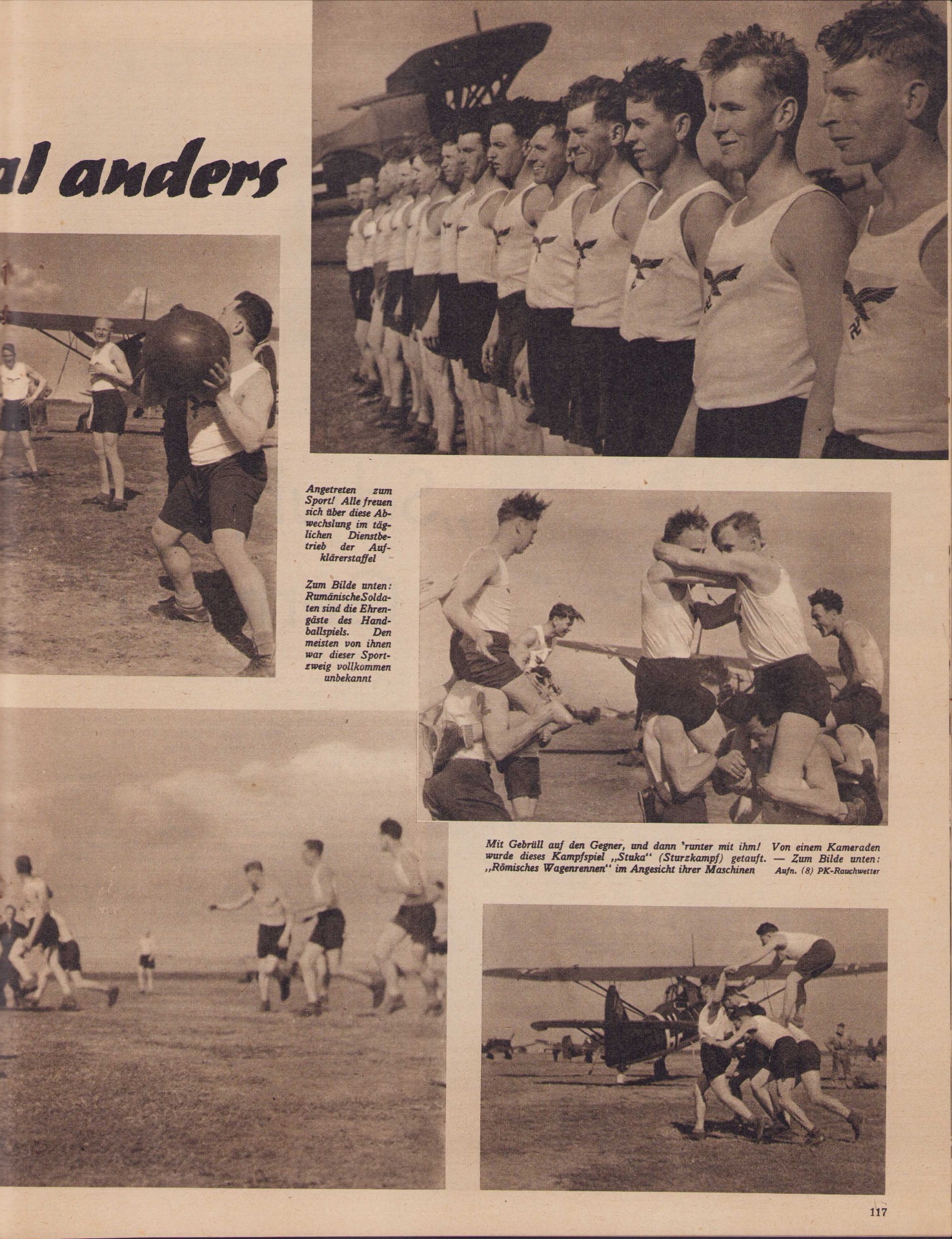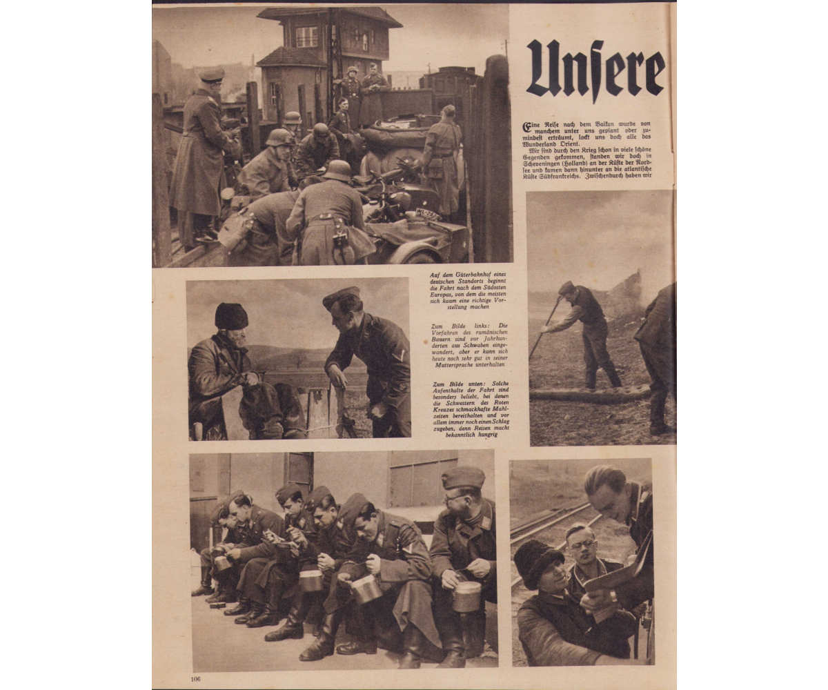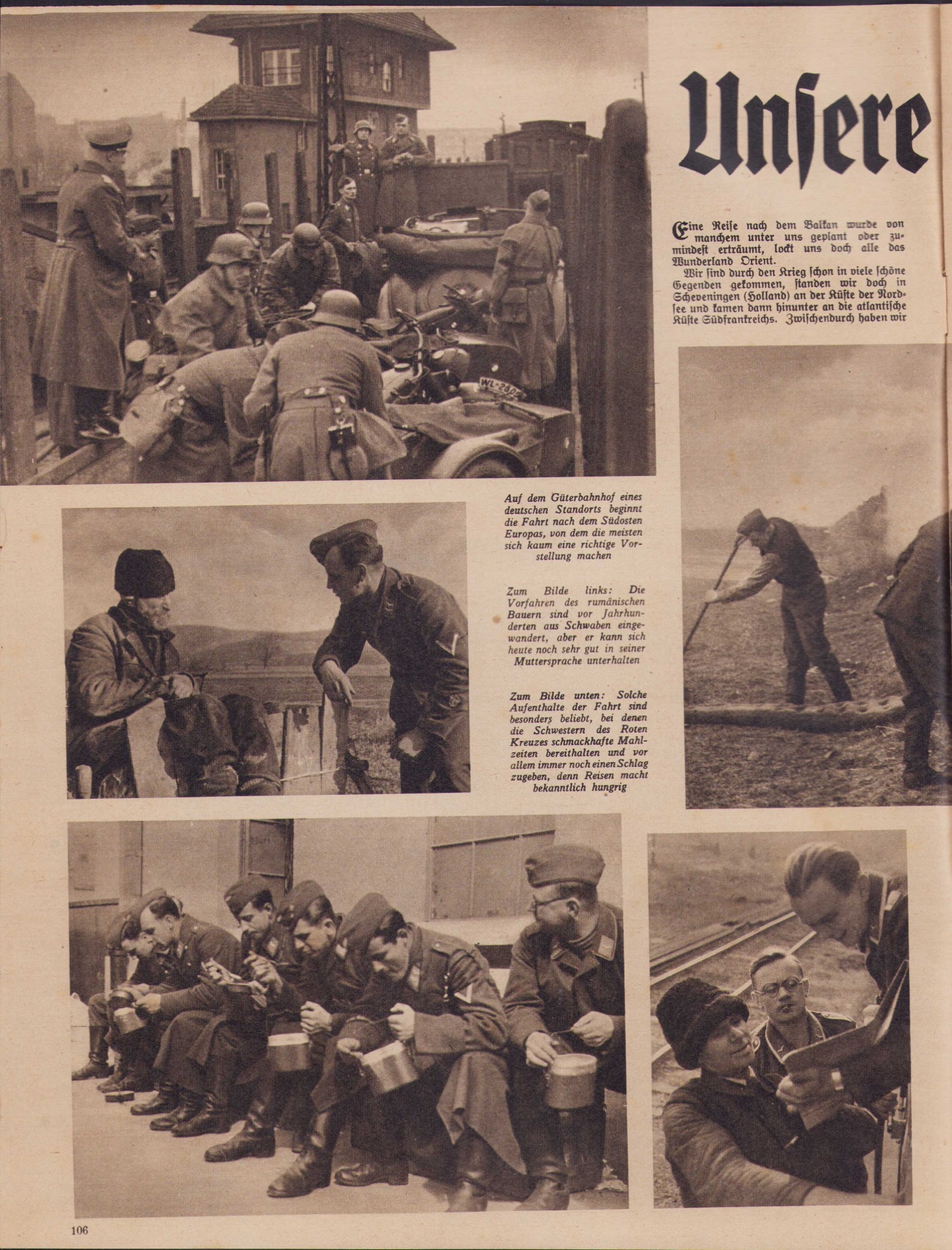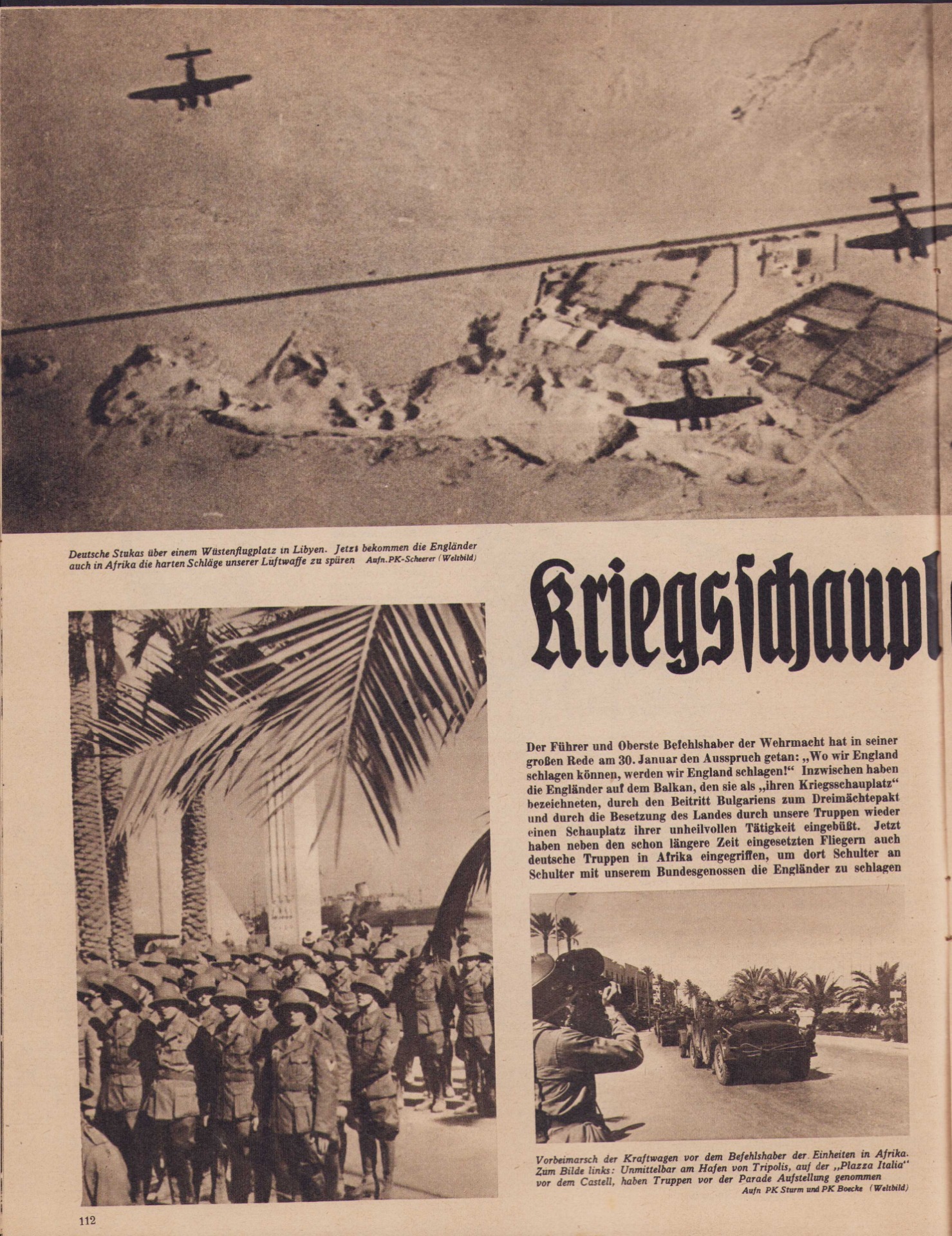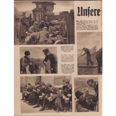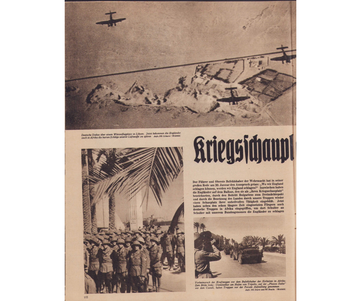 The magazine shows overall normal signs of wear. It's solid and all pages are present (not every page has been scanned by us). This is Heft 7 from 8 April 1941.